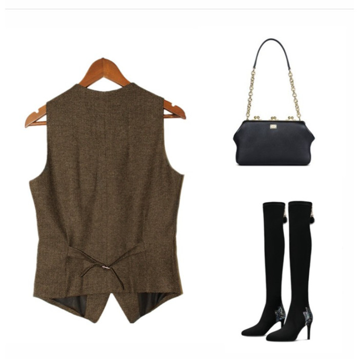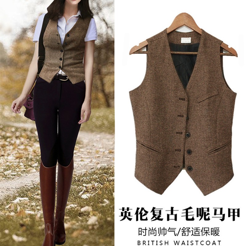 英倫風秋冬時尚馬甲女外穿百搭復古女生毛呢短款休閒大碼馬夾背心