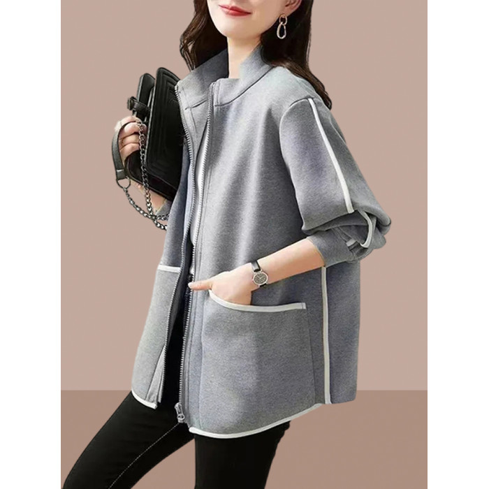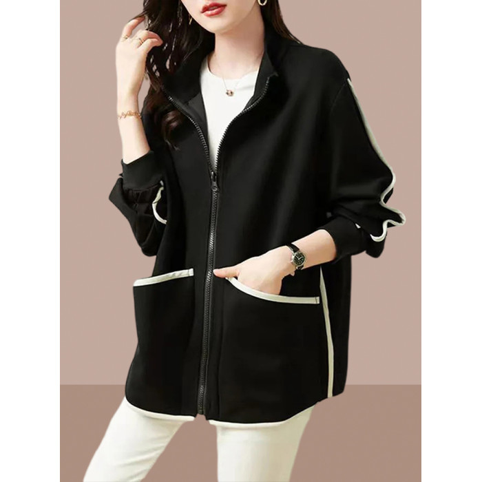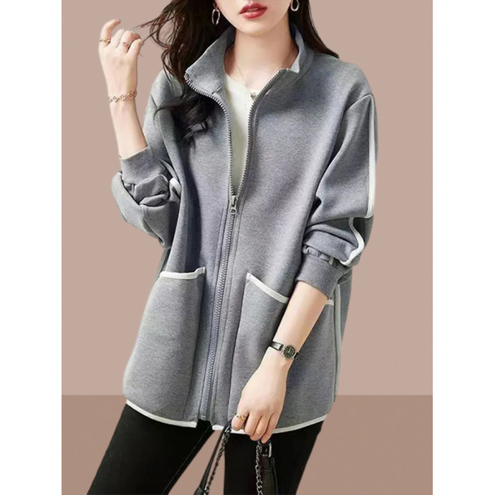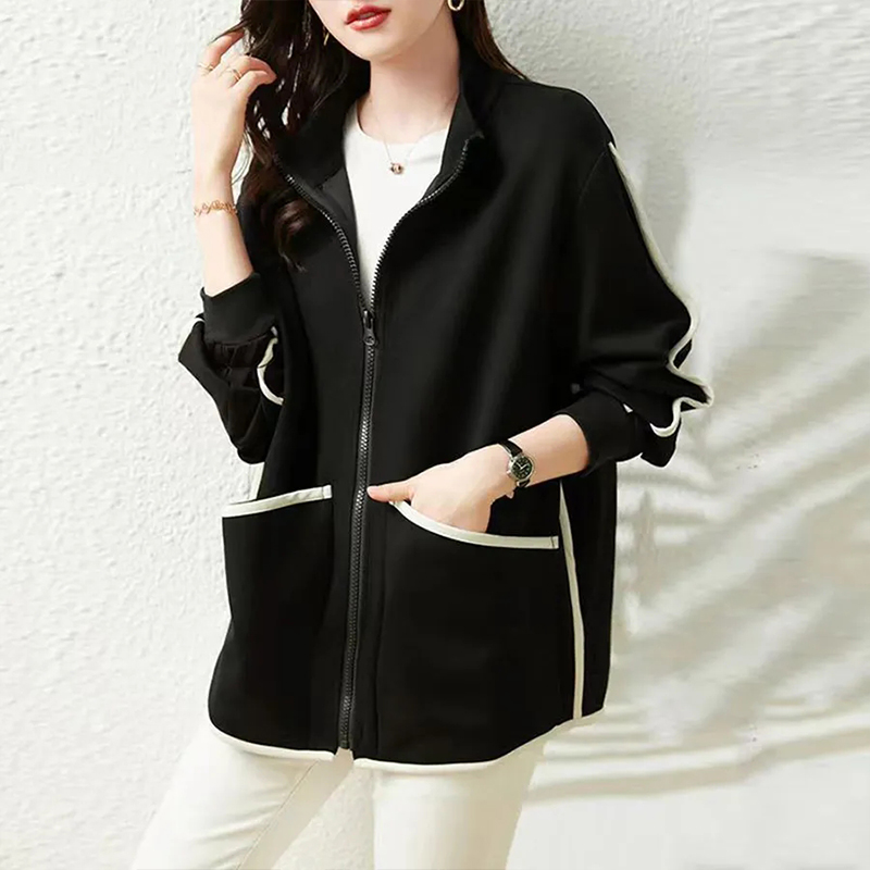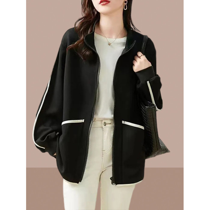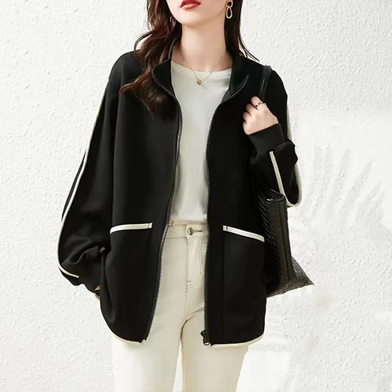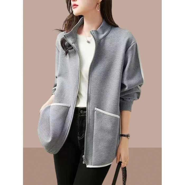 秋季寬松洋氣立領開衫衛衣外套女2025春秋新款高級感休閒爆款上衣