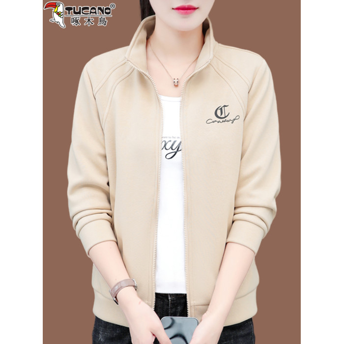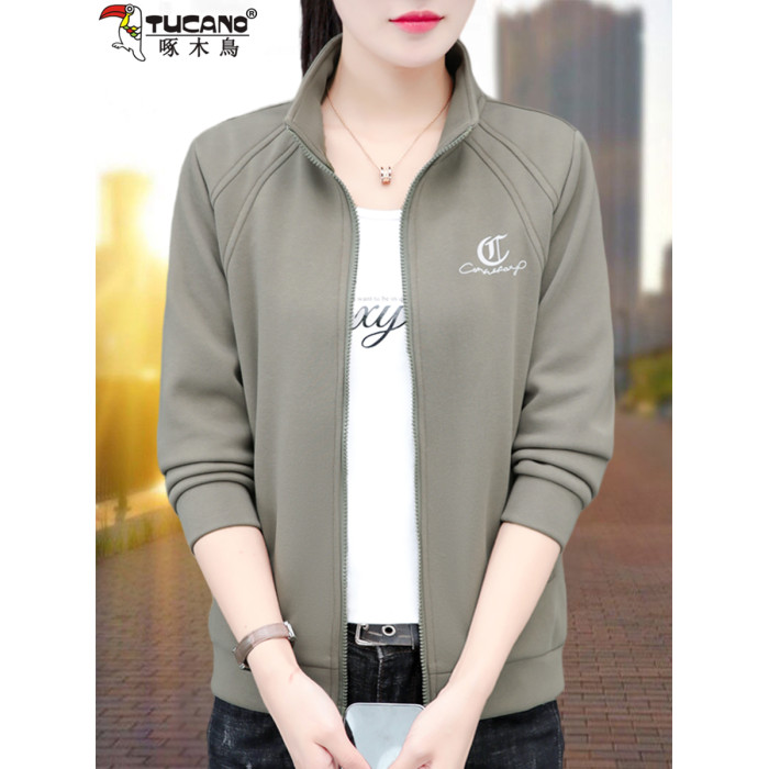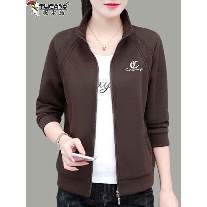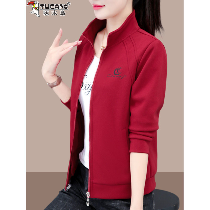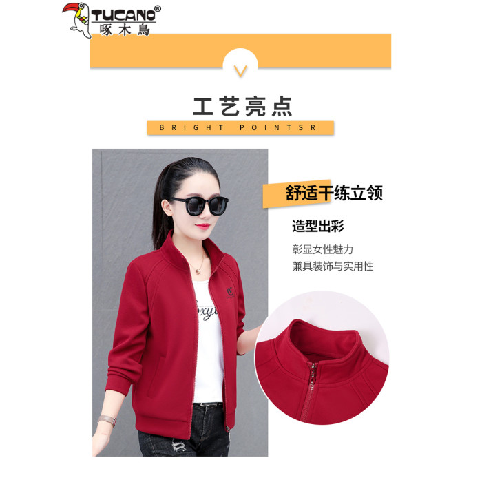 啄木鳥短款外套女2025春秋新款中年媽媽時尚休閒薄款立領夾克上衣