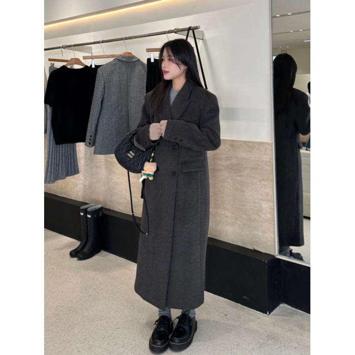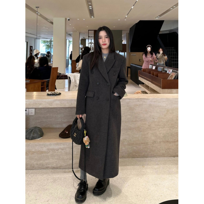 2025年新款深冬灰色呢子大衣女入冬季毛呢外套獨特超好看加厚長款