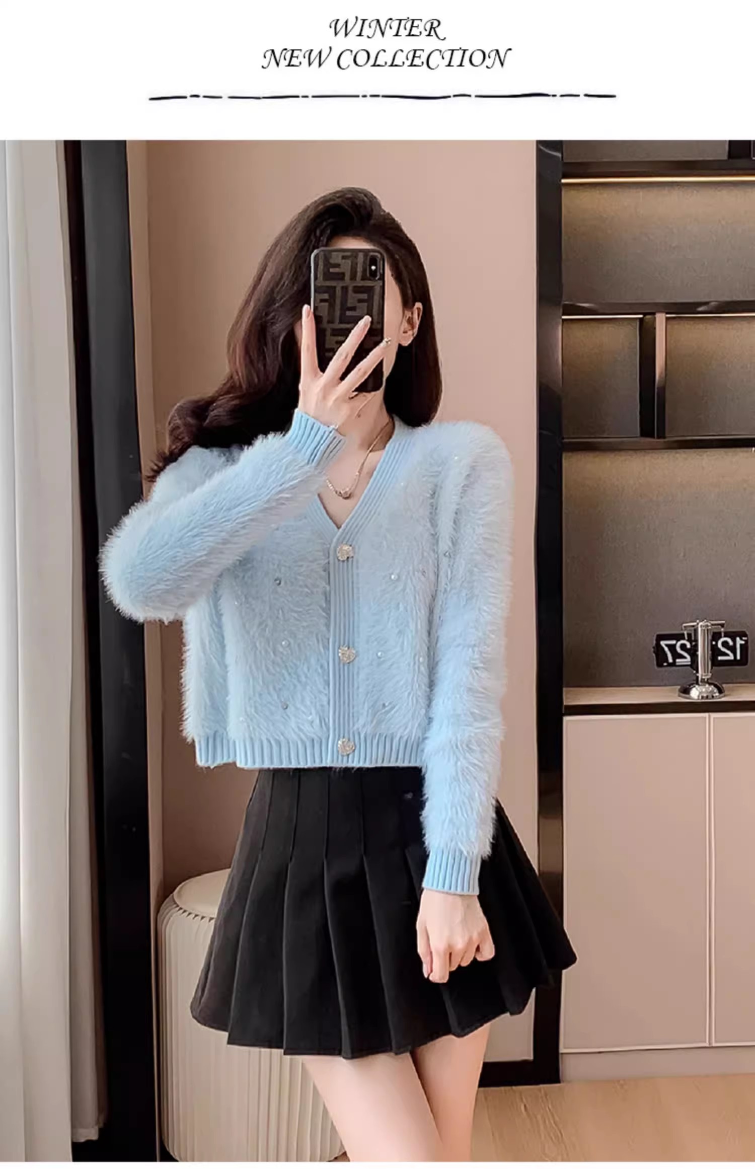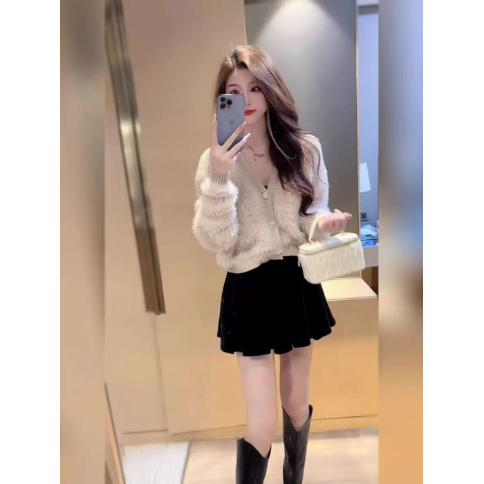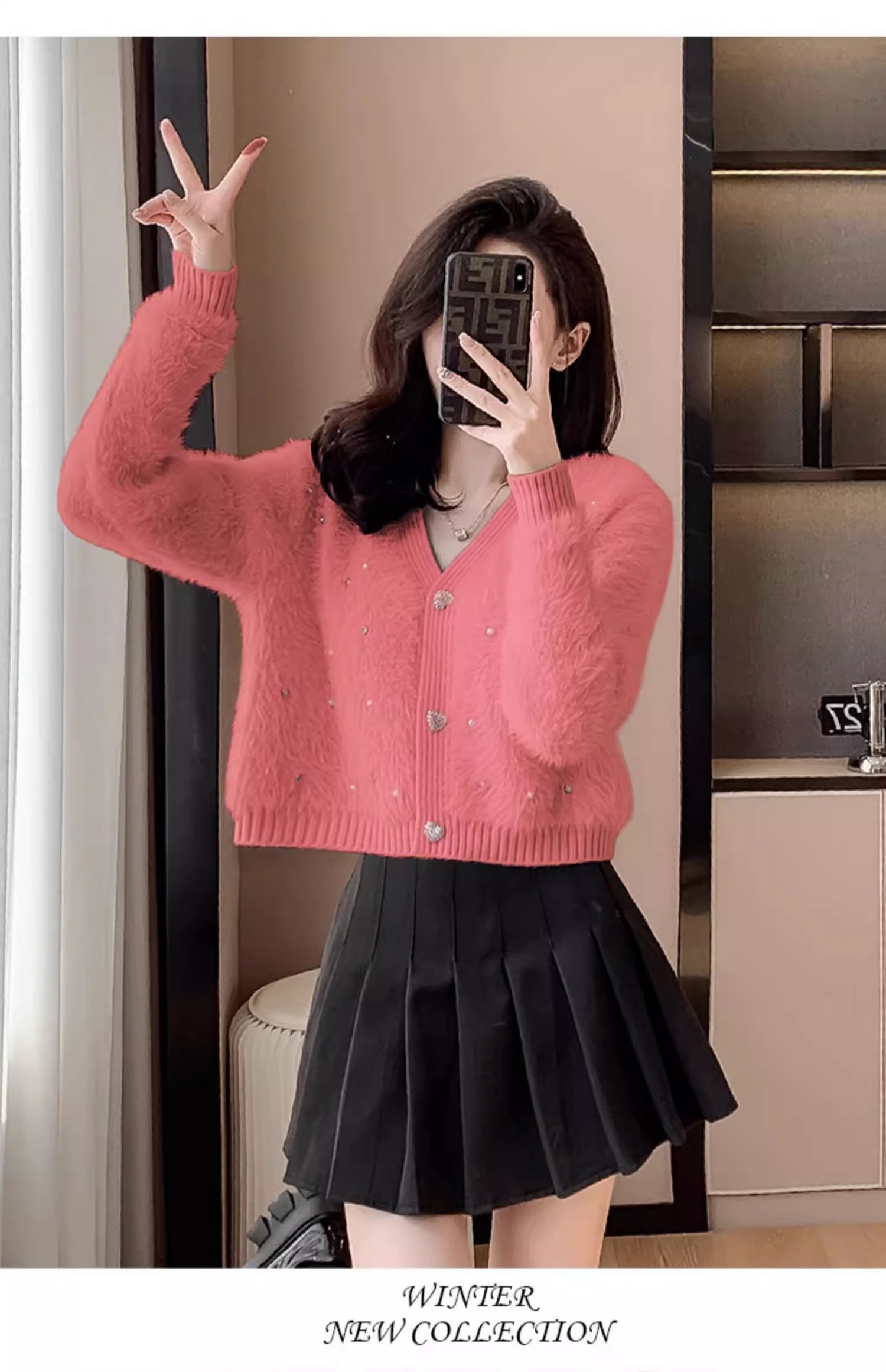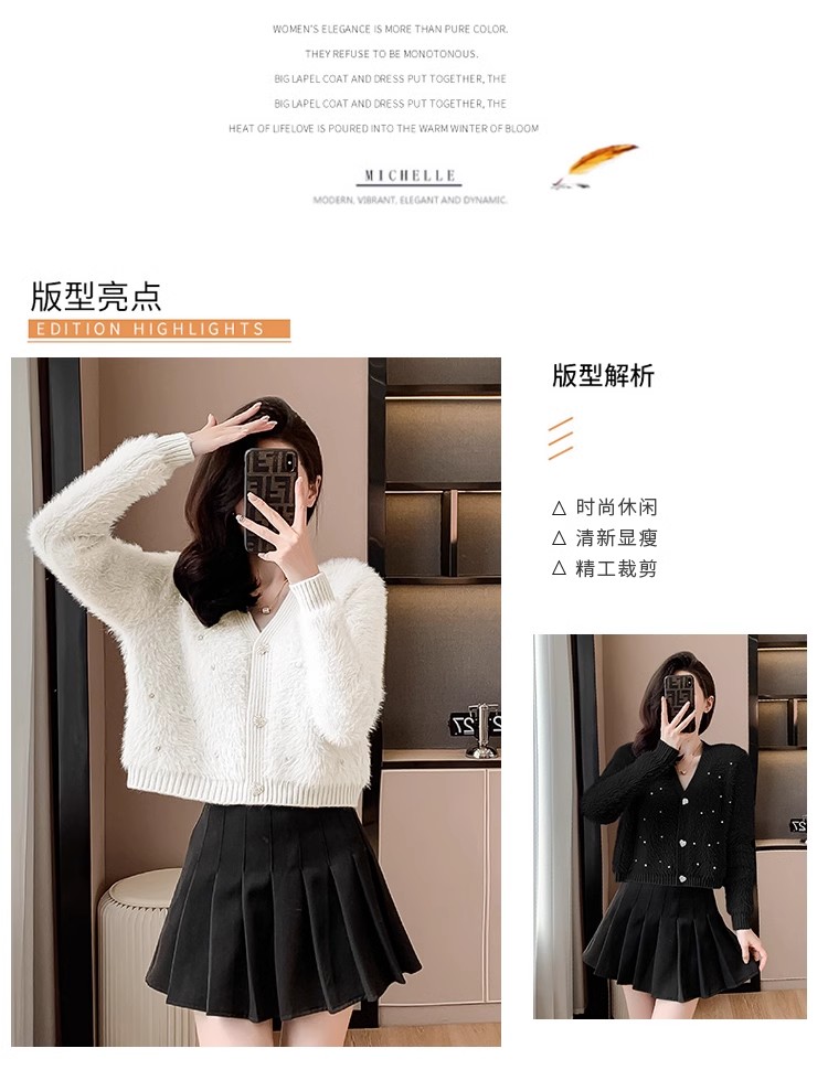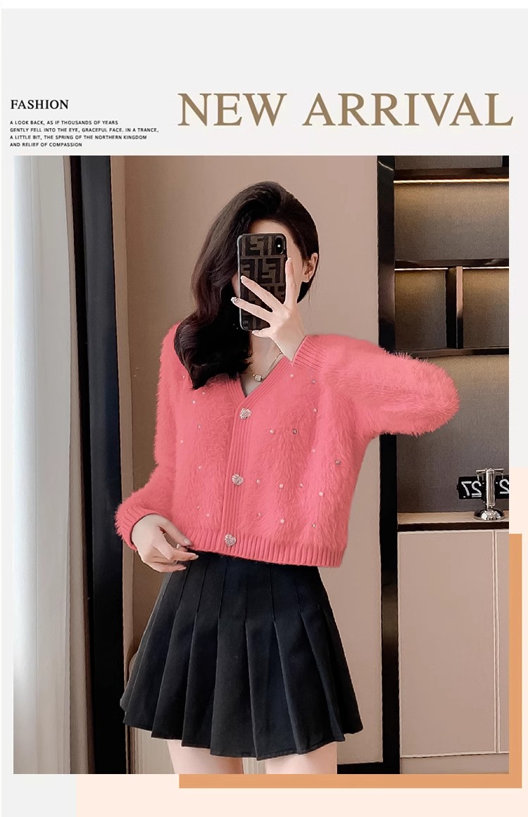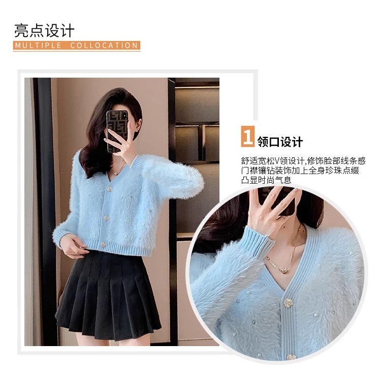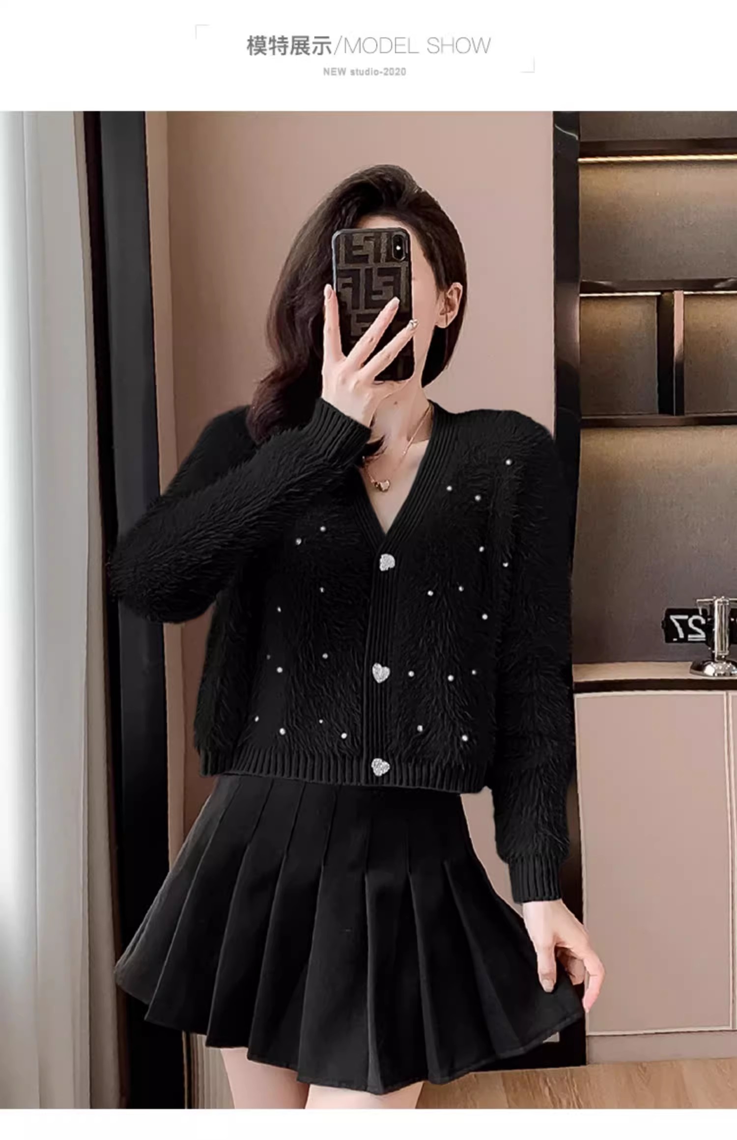 小香風短款外套女秋冬2024新款毛衣開衫顯瘦加厚洋氣時尚v領上衣