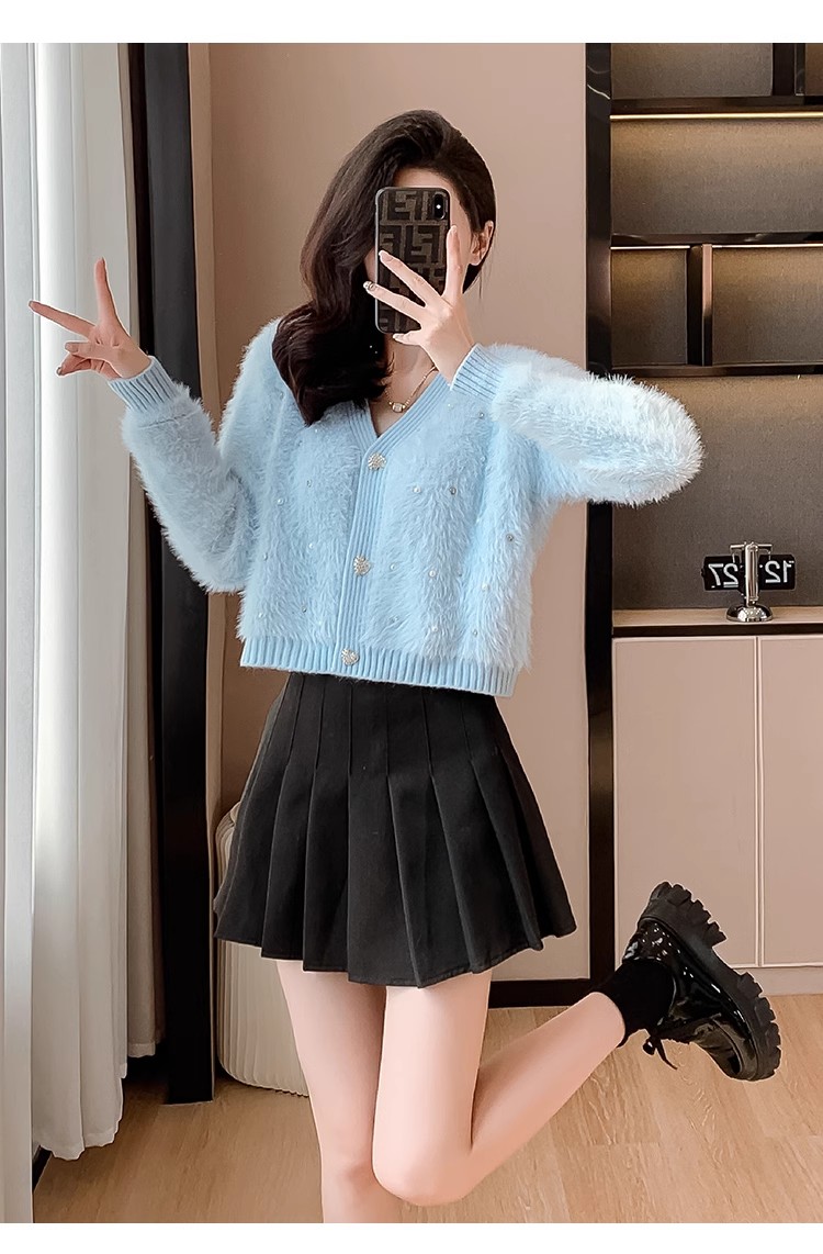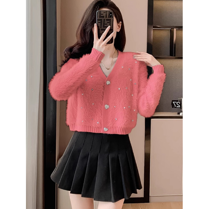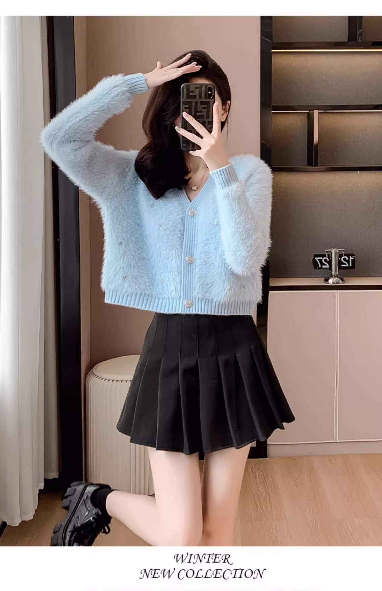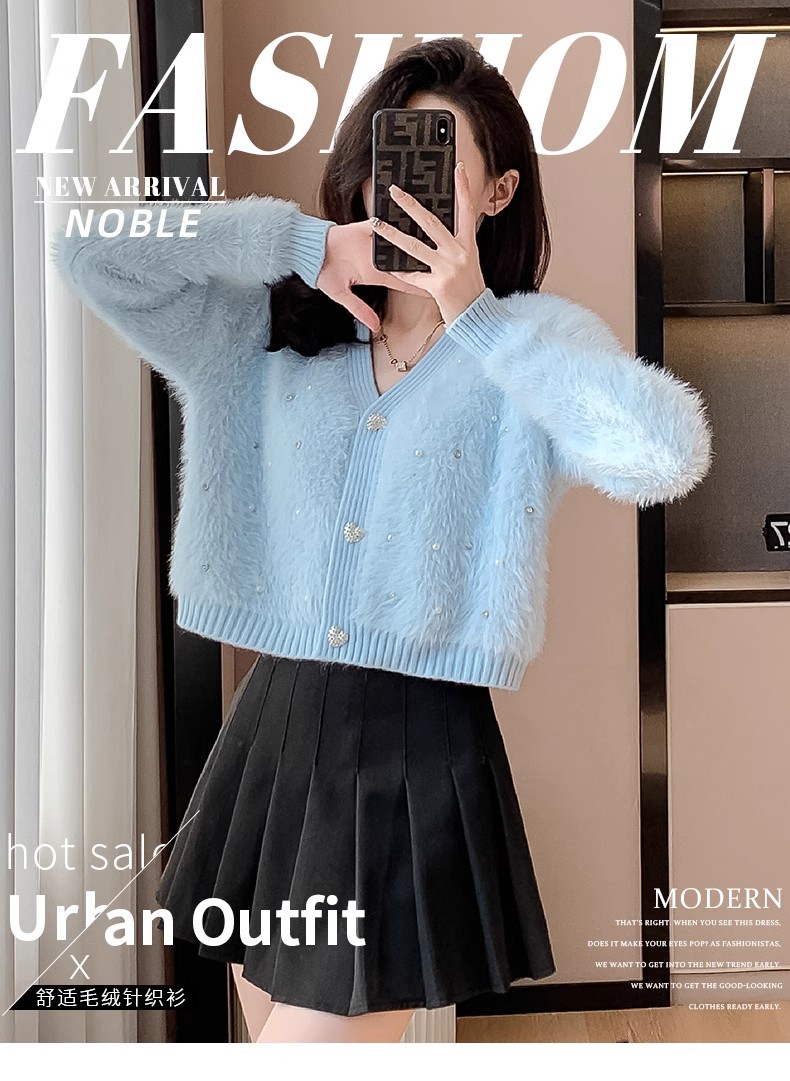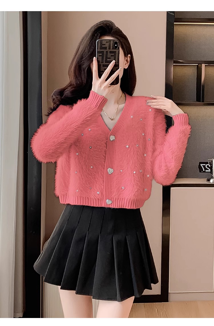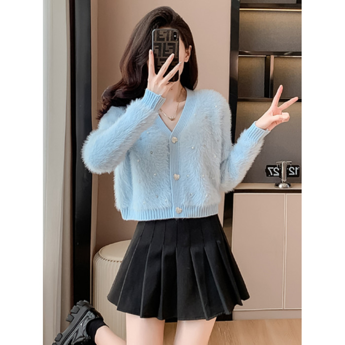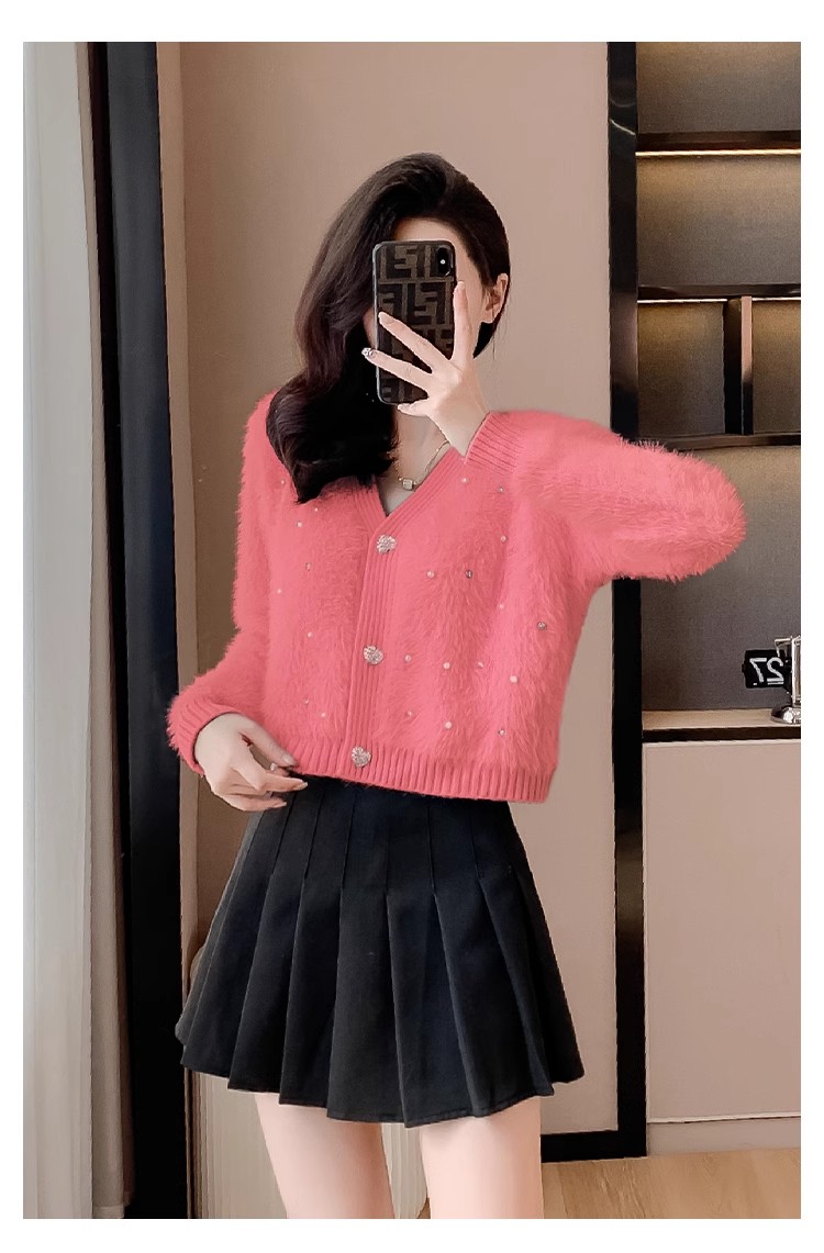小香風短款外套女秋冬2024新款毛衣開衫顯瘦加厚洋氣時尚v領上衣