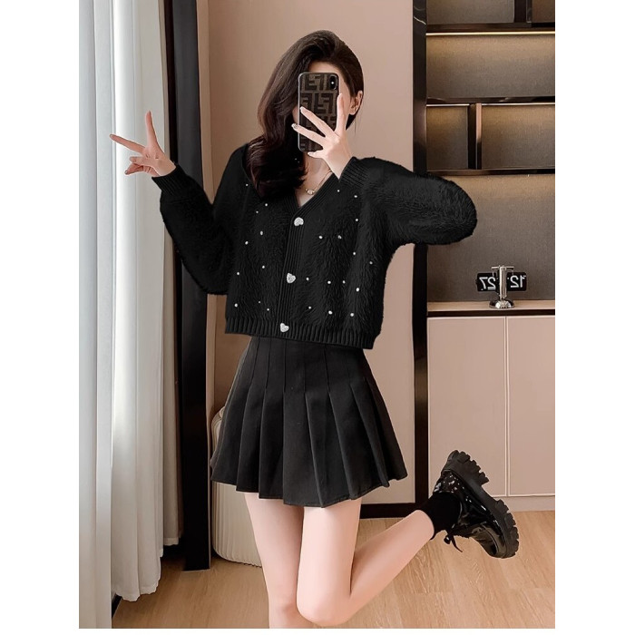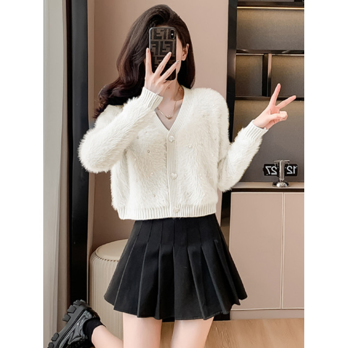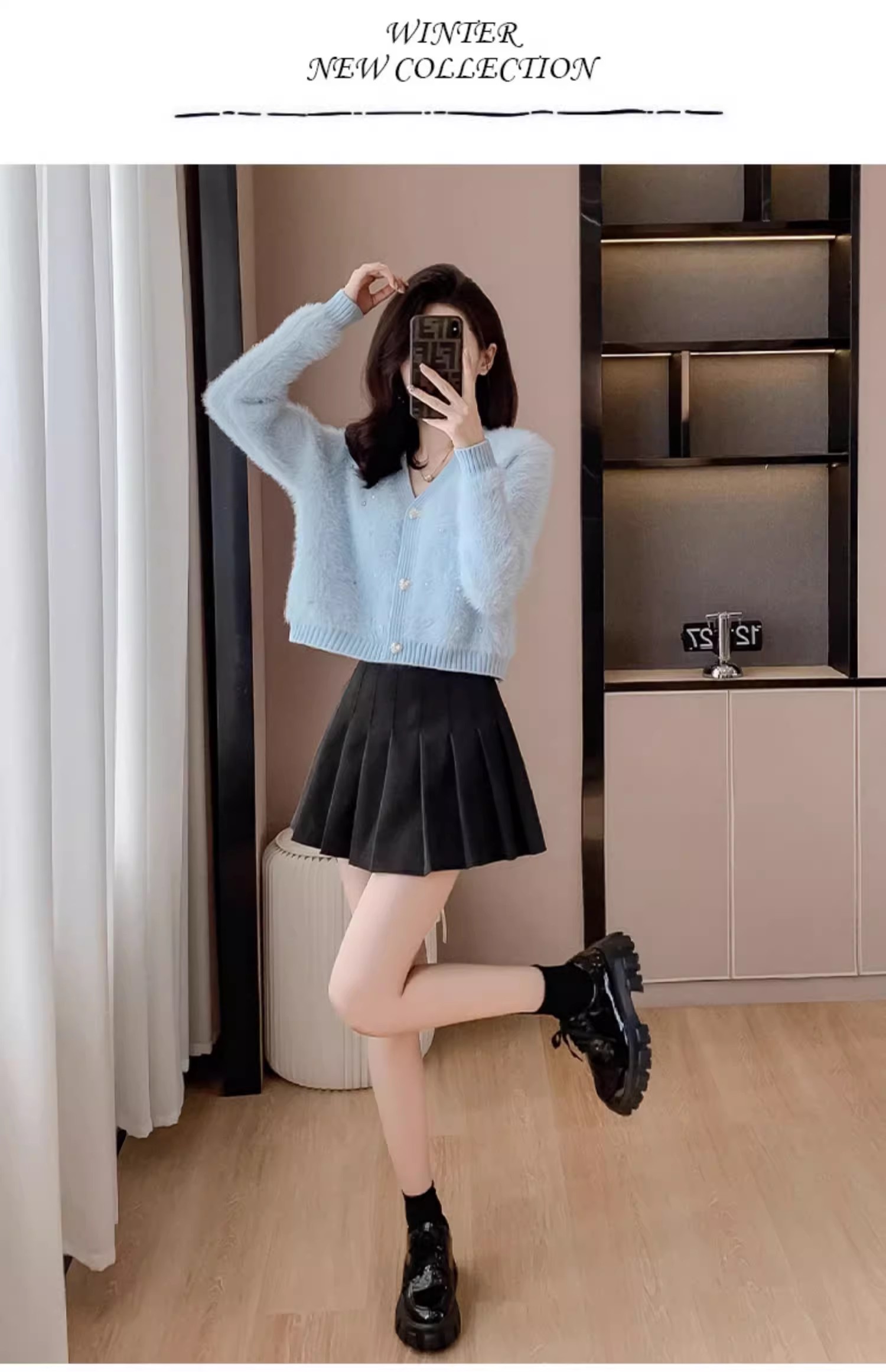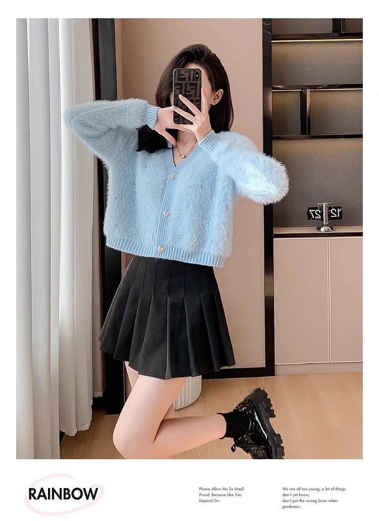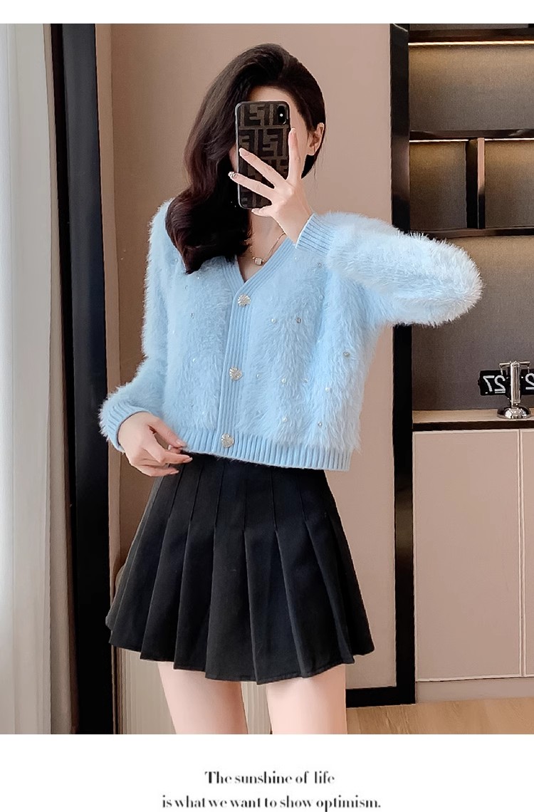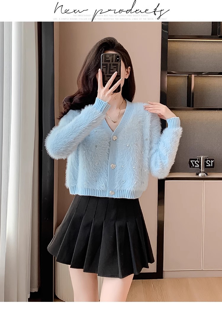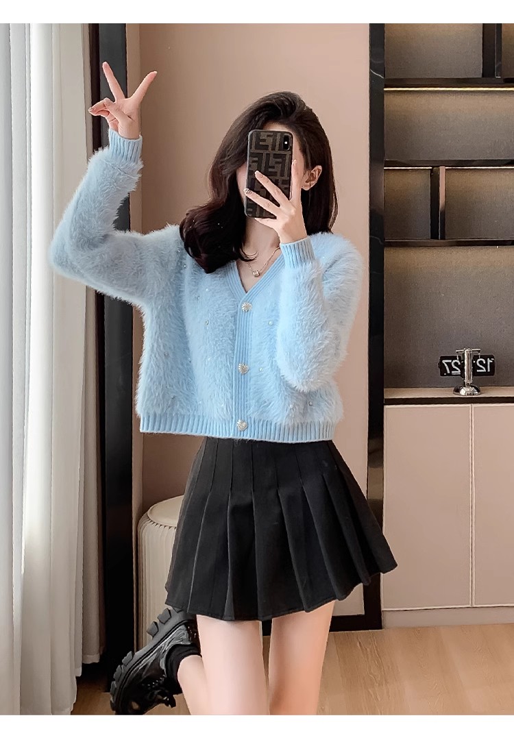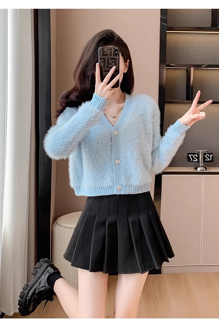 小香風短款外套女秋冬2024新款毛衣開衫顯瘦加厚洋氣時尚v領上衣