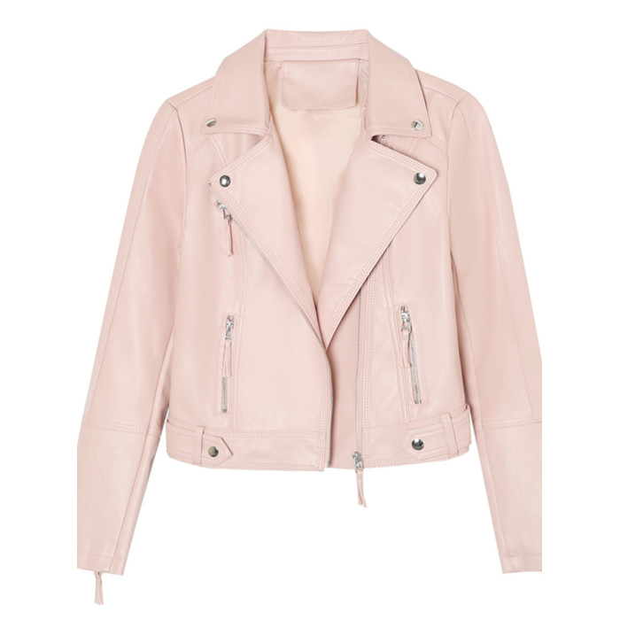 粉色外套輕熟小皮衣2025年新款女短款春秋正肩機車服爆款PU皮夾克