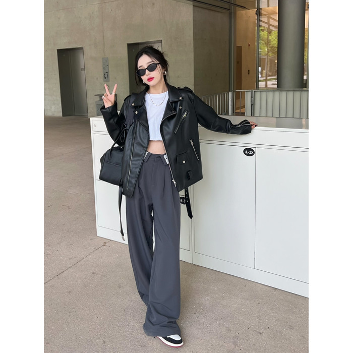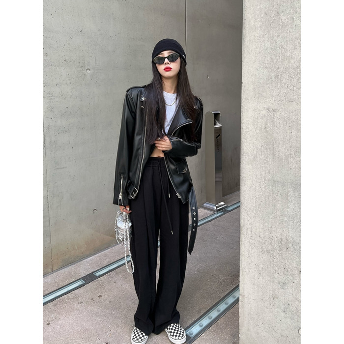 aassss 秋季ins街頭酷辣皮衣外套女士寬松夾克大碼PU皮氣質機車服