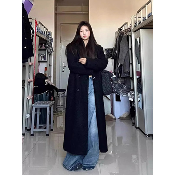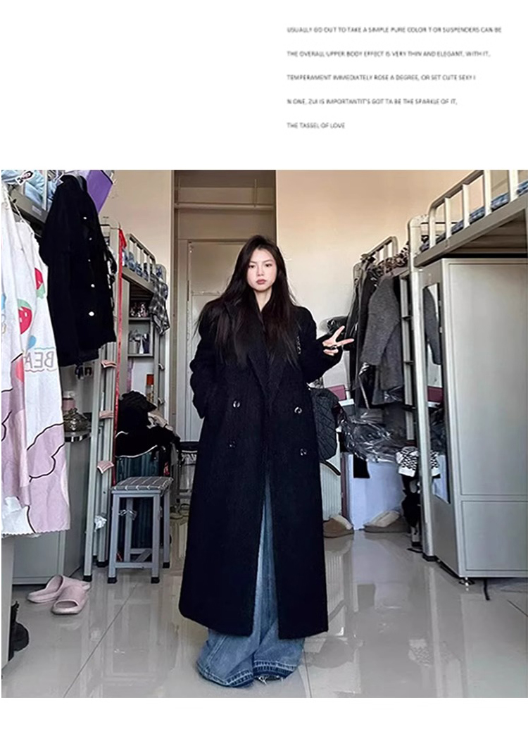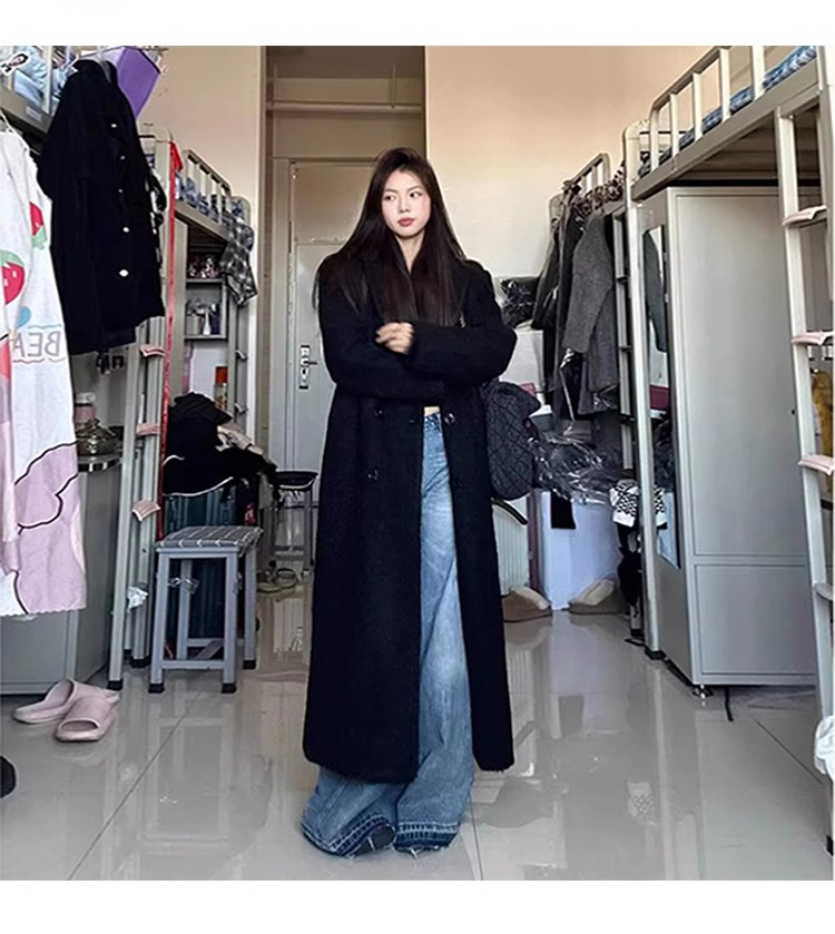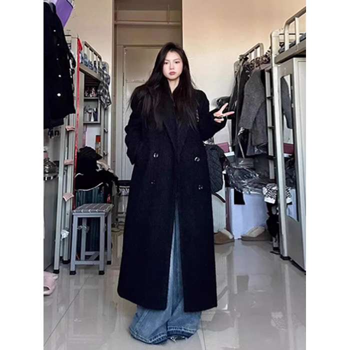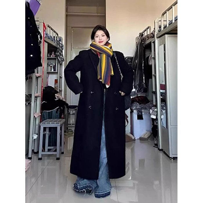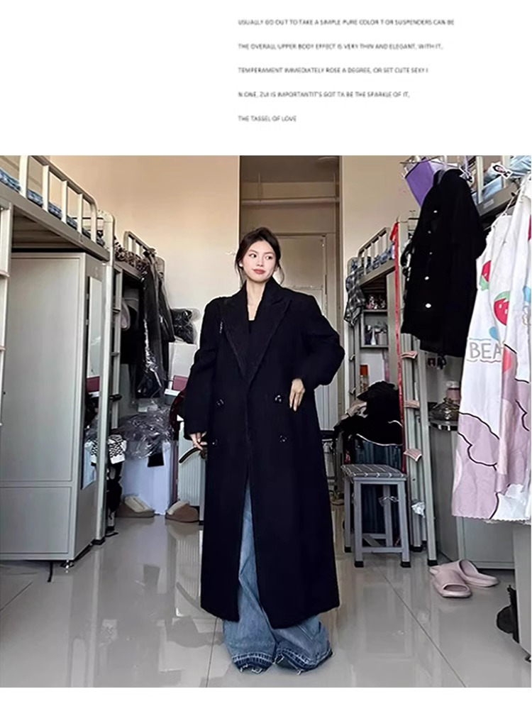 赫本風黑色呢子大衣女秋冬2025新款中長款毛呢外套韓系小個子加厚