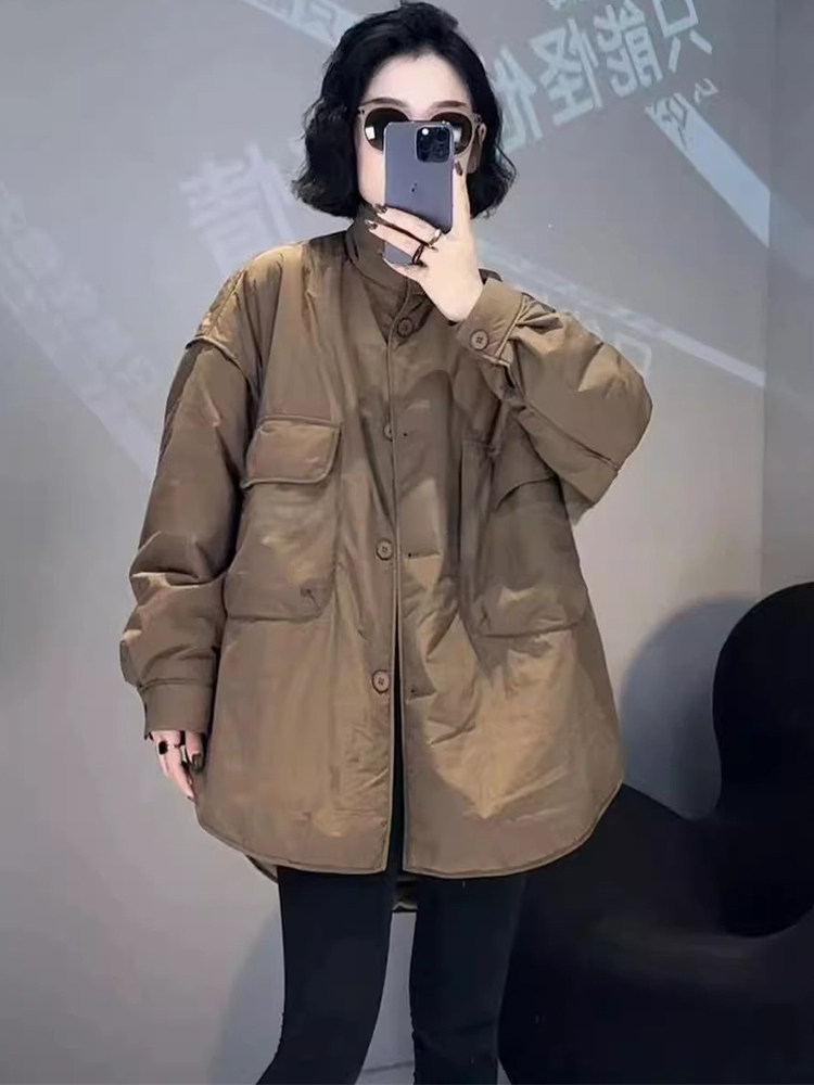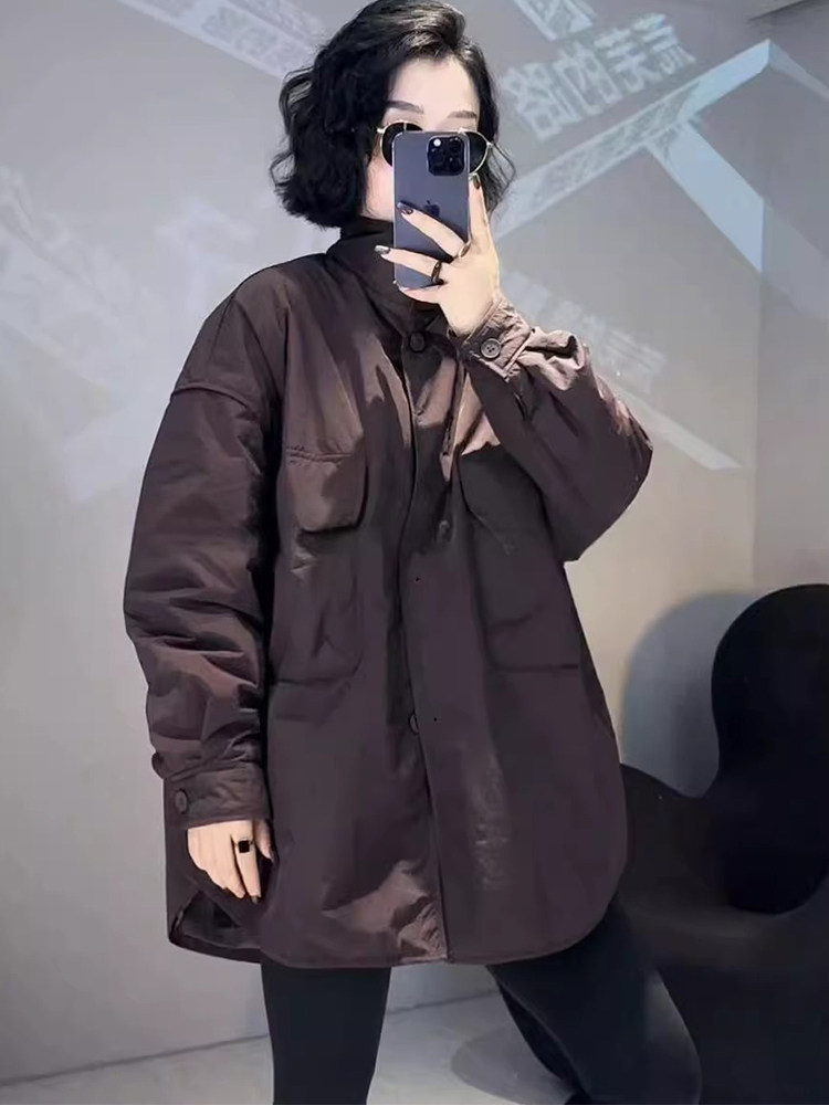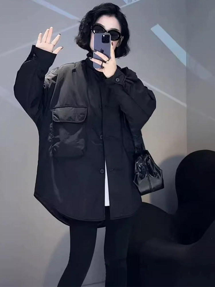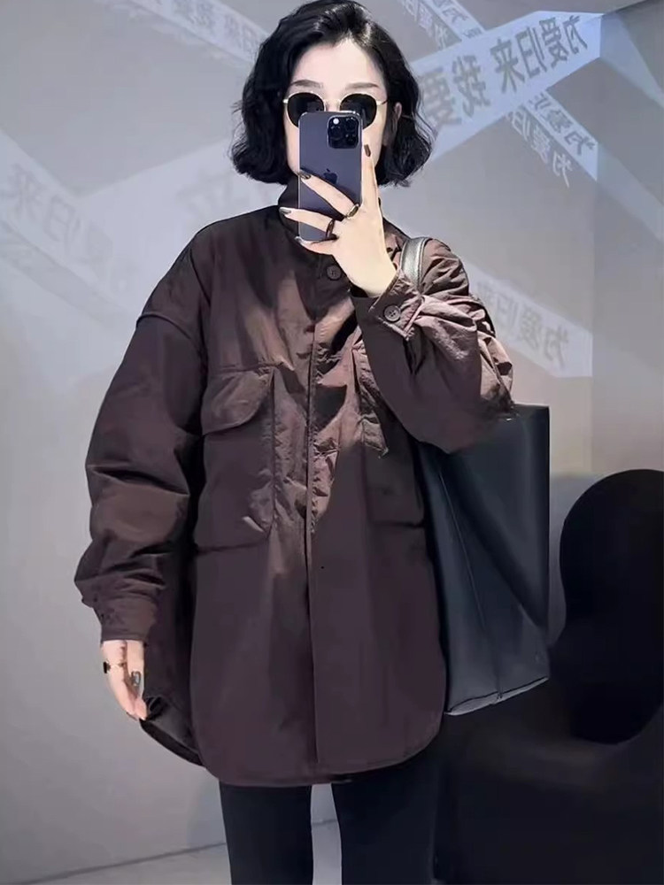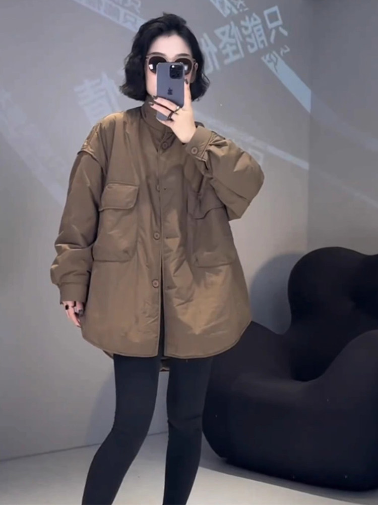 歐貨2025秋冬新款洋氣加棉加厚中長款襯衫棉服外套百搭大口袋上衣