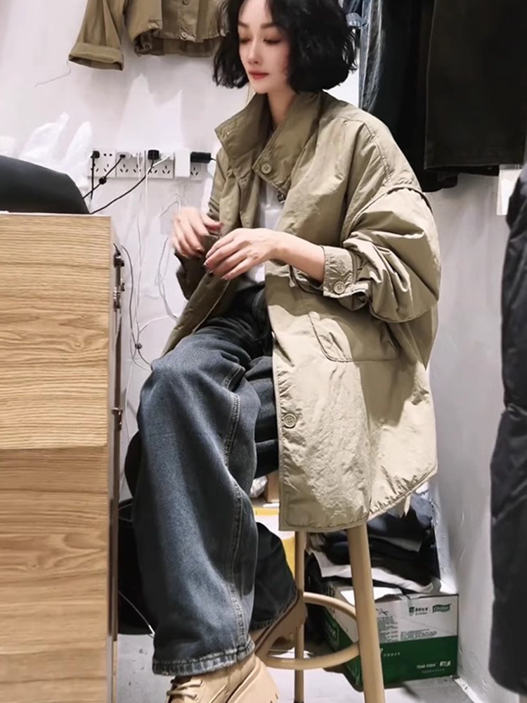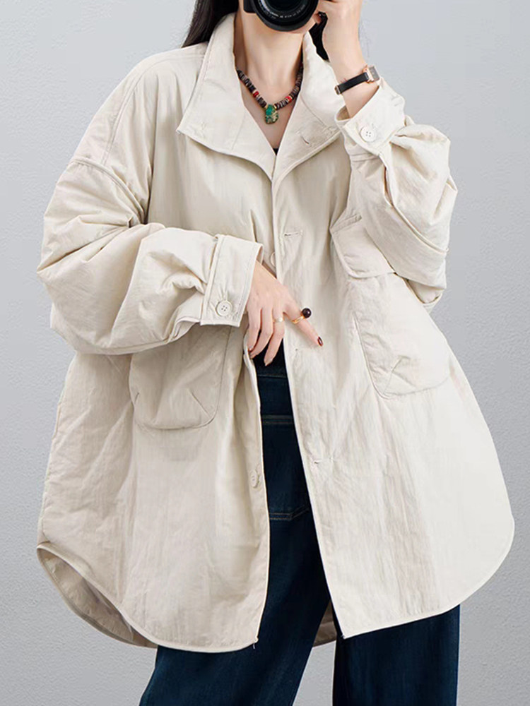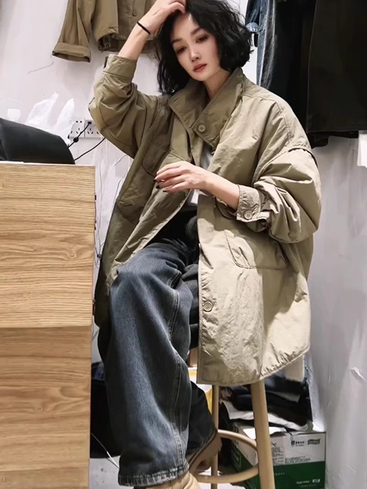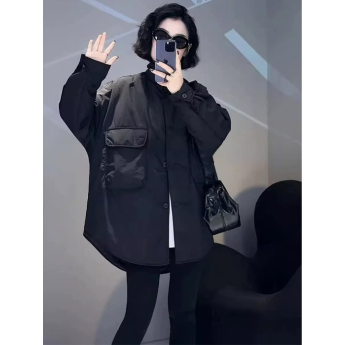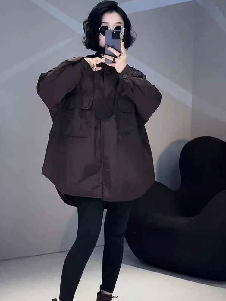 歐貨2025秋冬新款洋氣加棉加厚中長款襯衫棉服外套百搭大口袋上衣