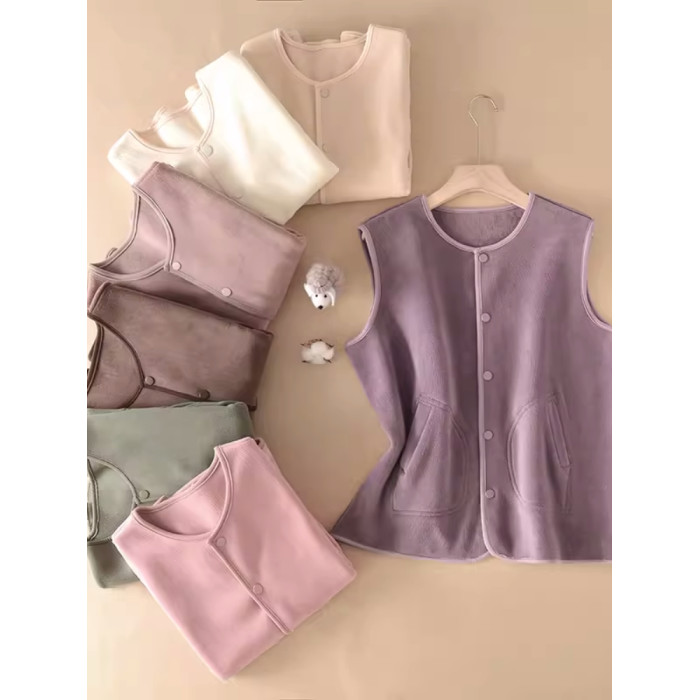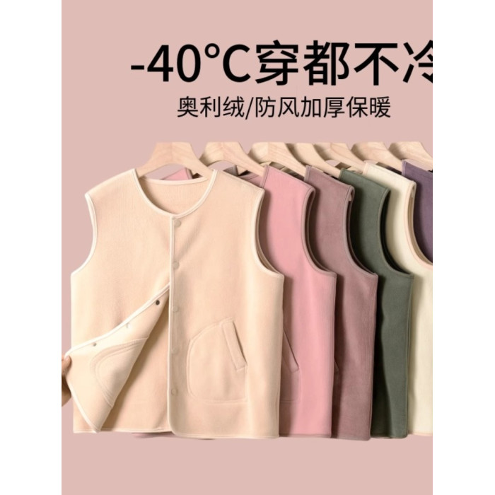 秋冬季雙面奧粒絨馬夾女單排釦大碼馬甲保暖內搭加絨加厚坎肩外套