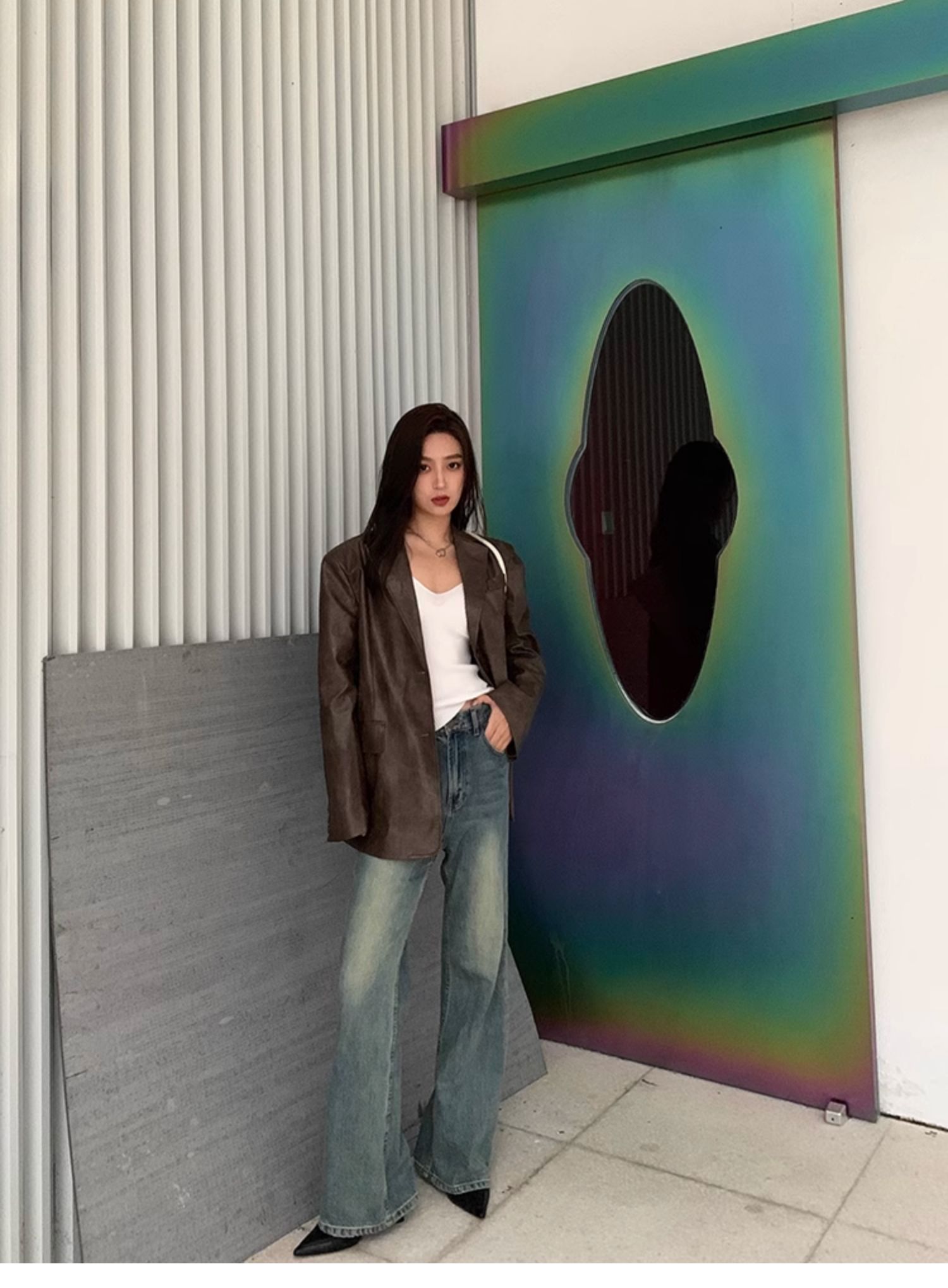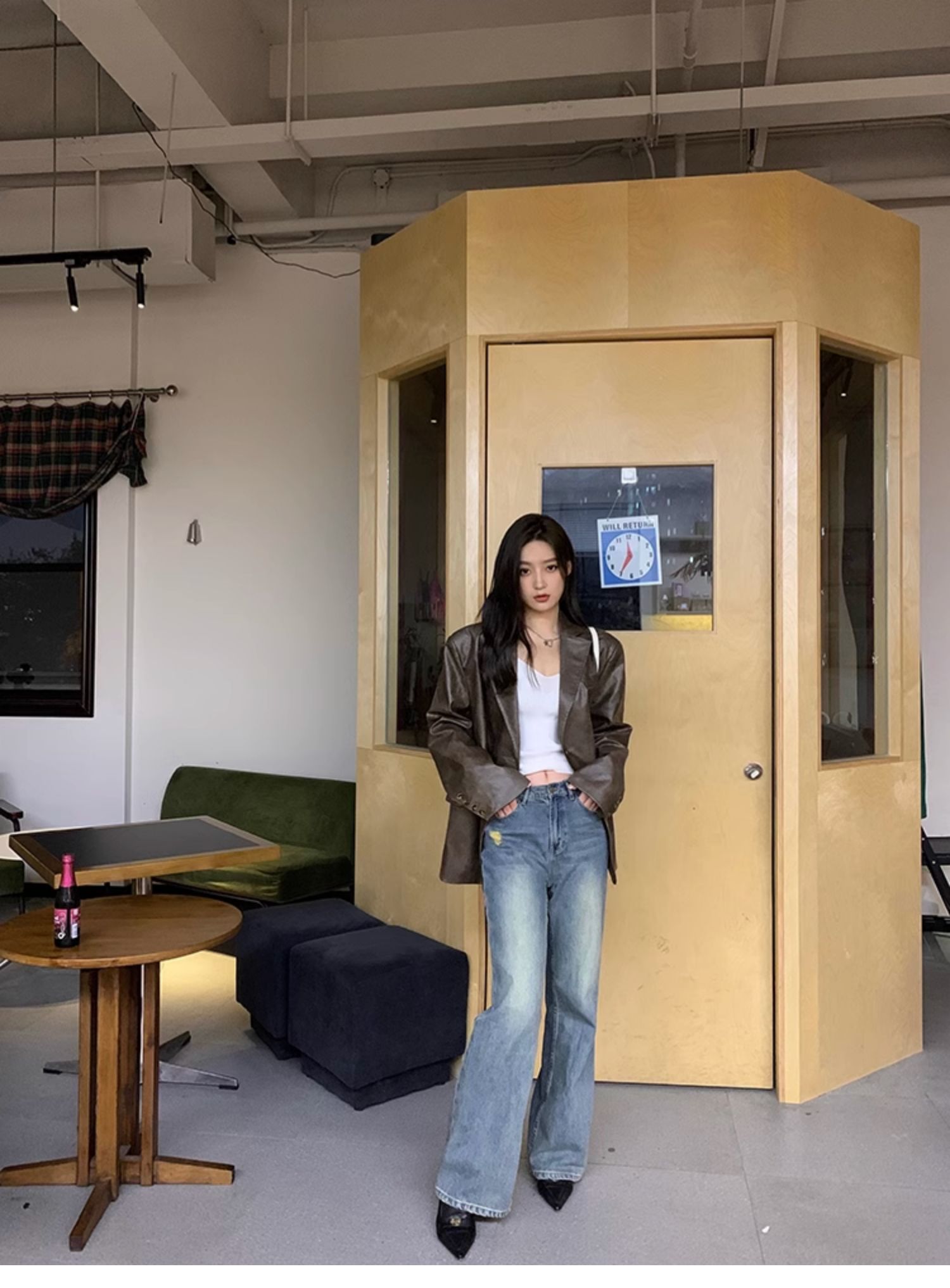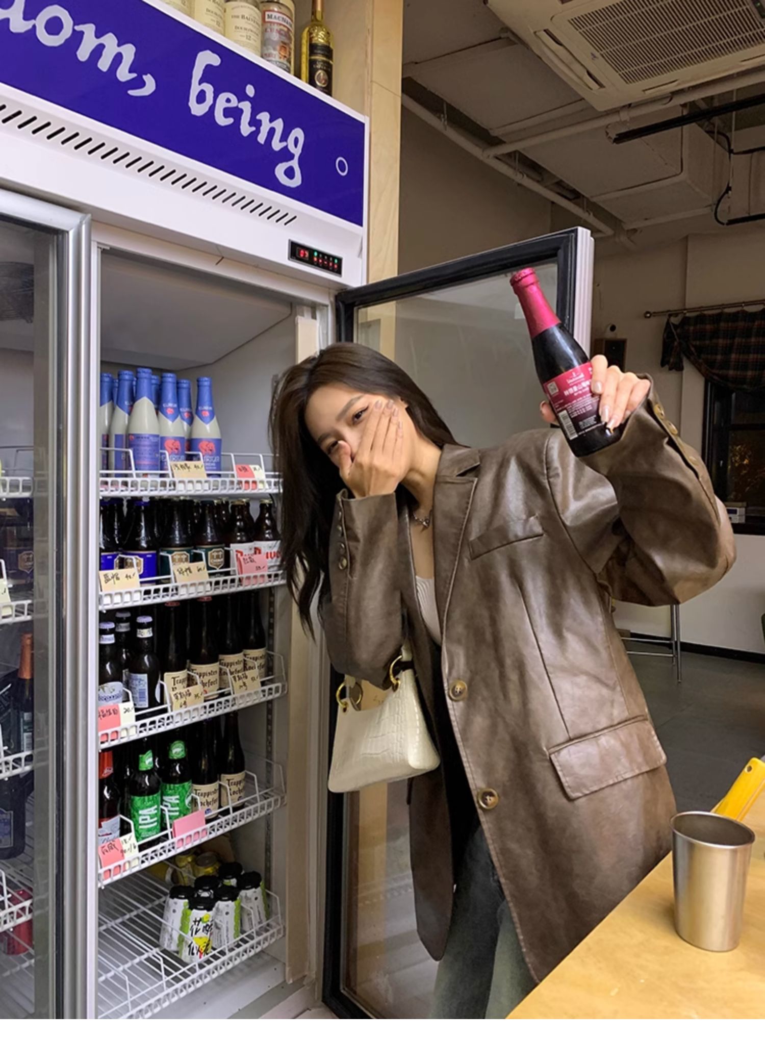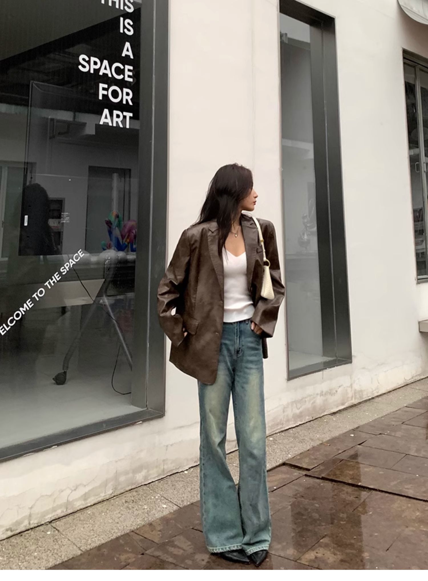 美拉德皮衣穿搭2025早春秋季新款棕色美式復古氣質西裝pu皮外套女