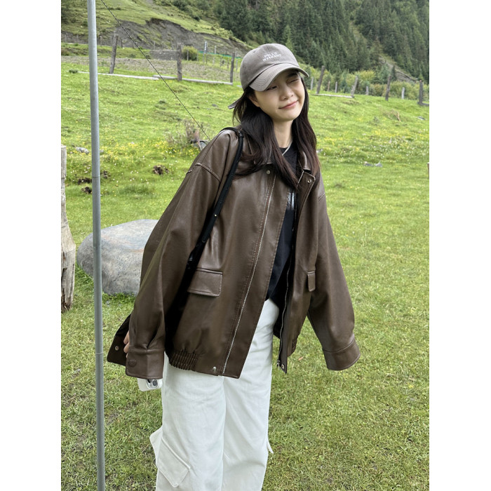 皮衣女外套2025新款秋冬季加厚復古棕色夾克機車美拉德小個子