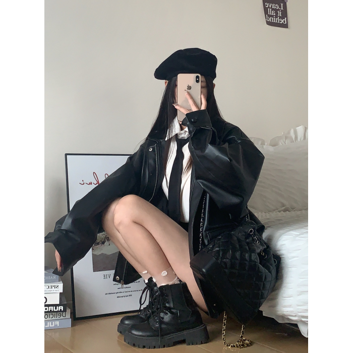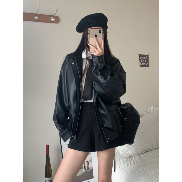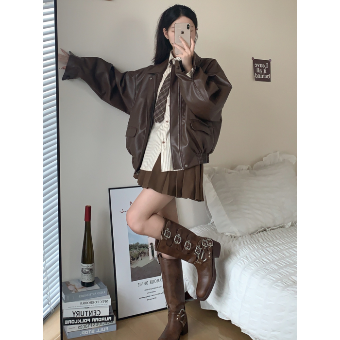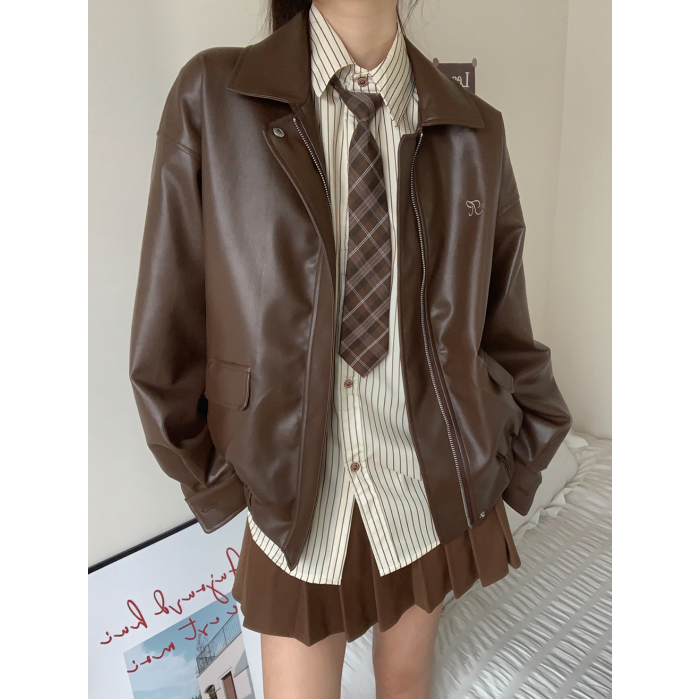 【桃喜】新款春秋美拉德短款皮衣外套男女棕色美式小個子加厚上衣