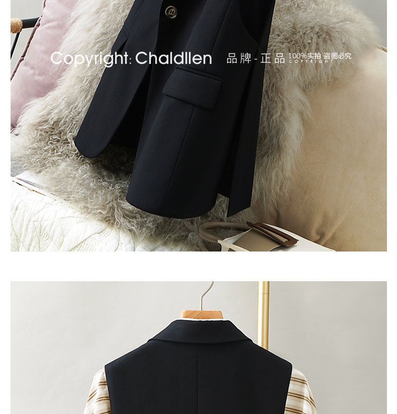查琳PohoIki 時尚流行西裝馬甲女小衆春秋潮英倫潮流時尚外搭920