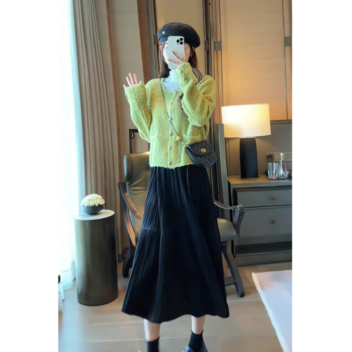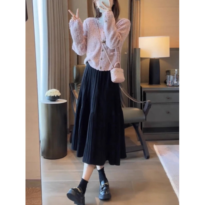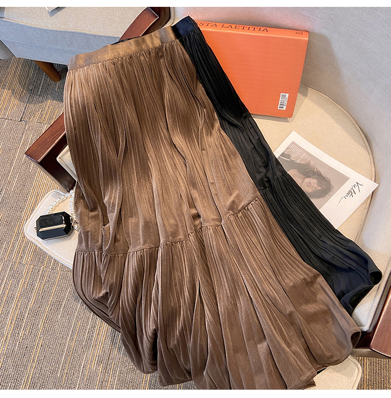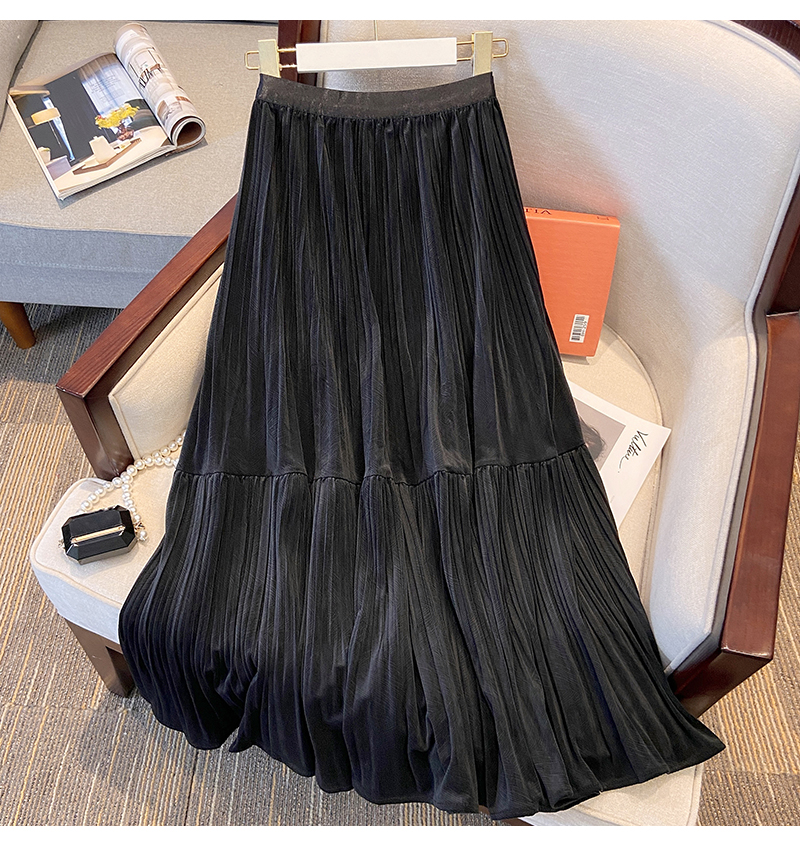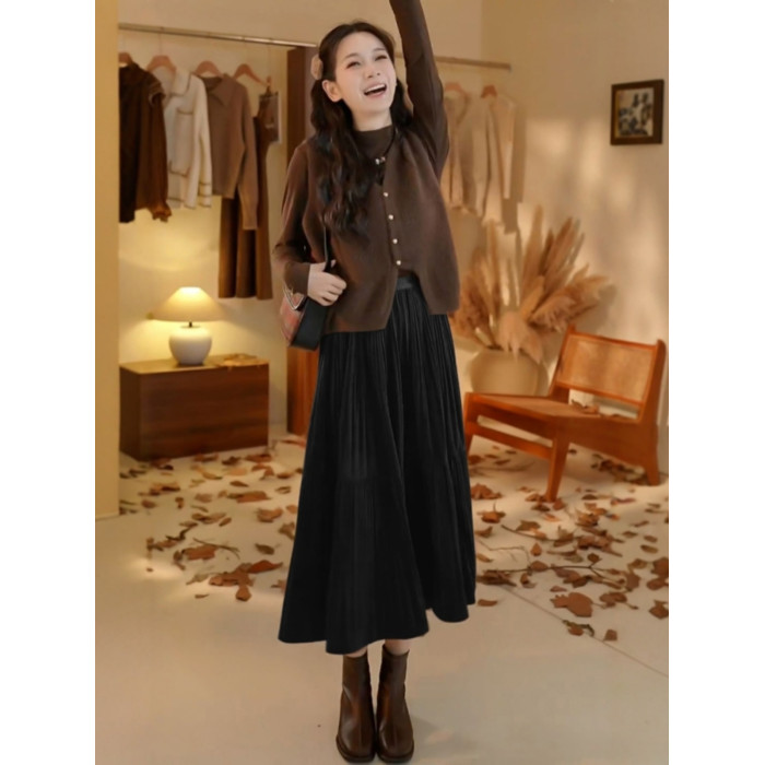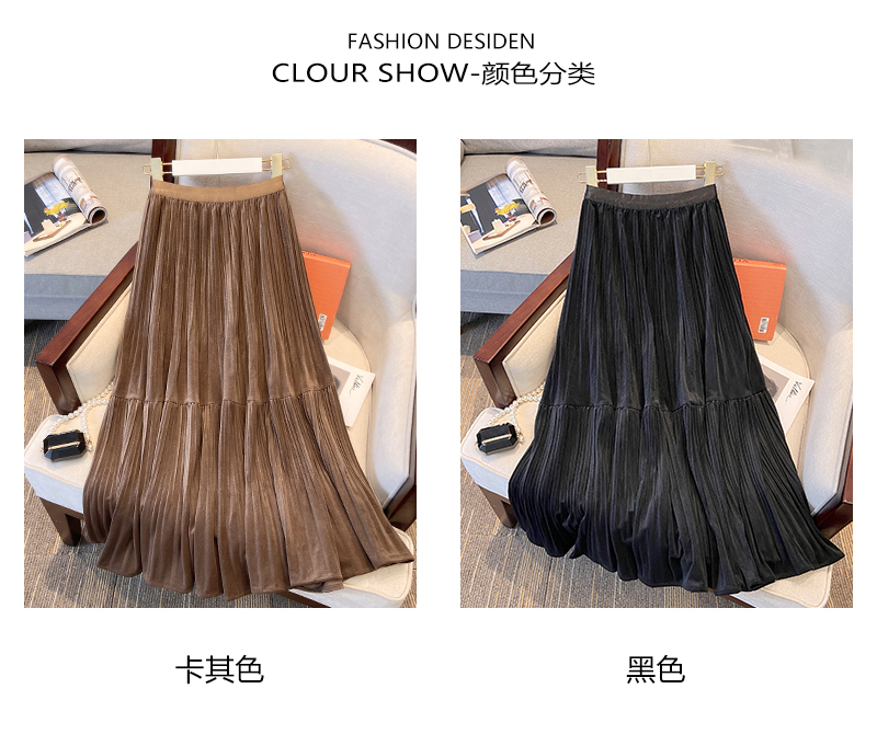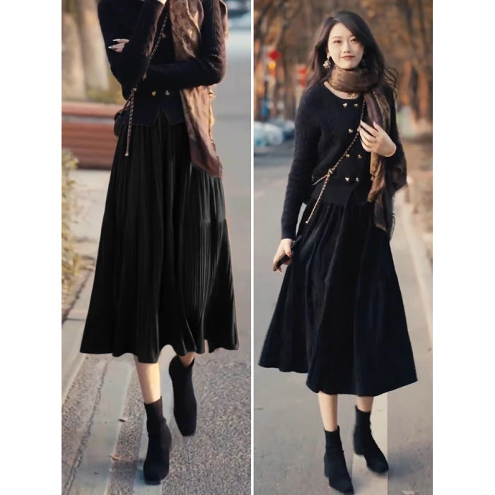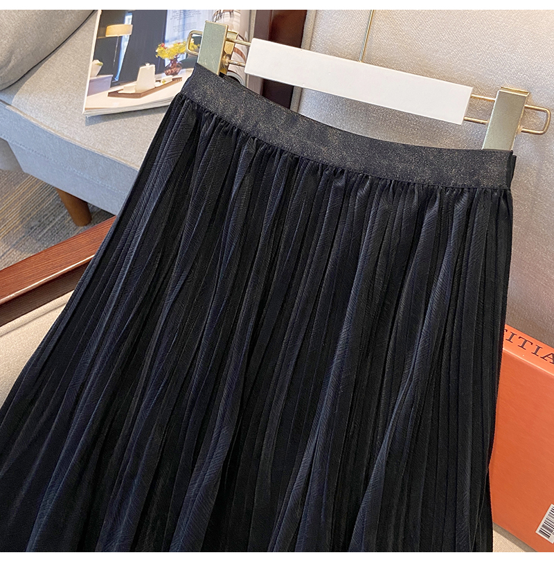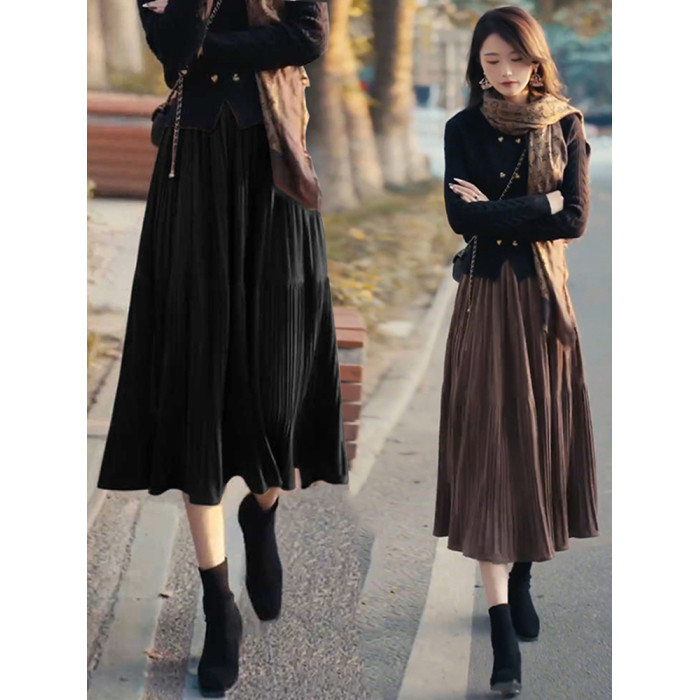 絲絨百褶半身裙女2025新款秋冬款加厚大擺裙高腰顯瘦a字裙長裙子