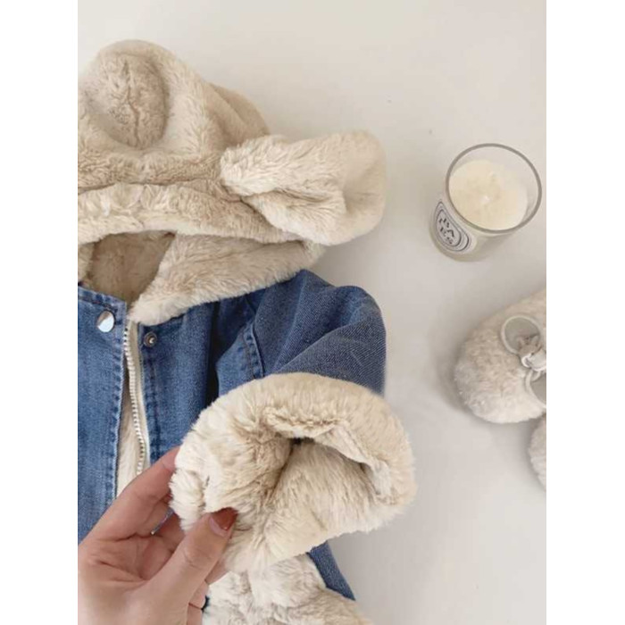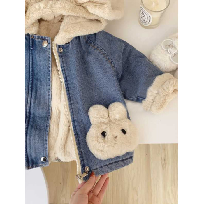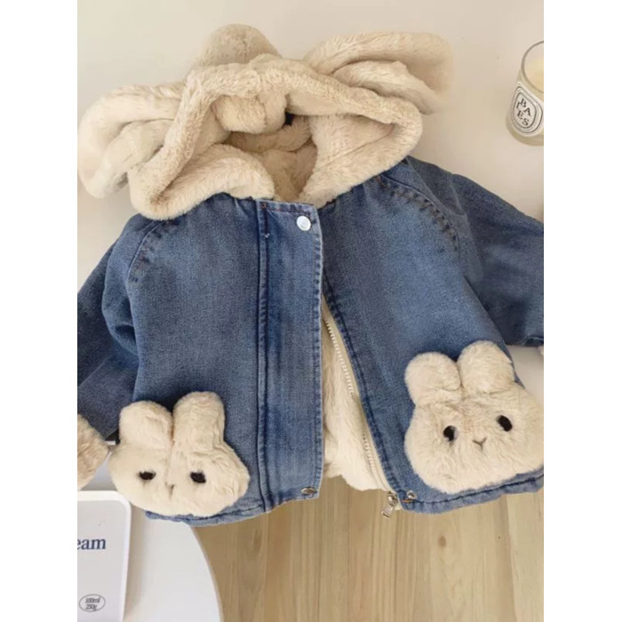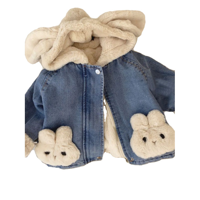 女小童加絨牛仔外套2023新款冬裝秋冬款加厚棉服寶寶冬季保暖棉衣
