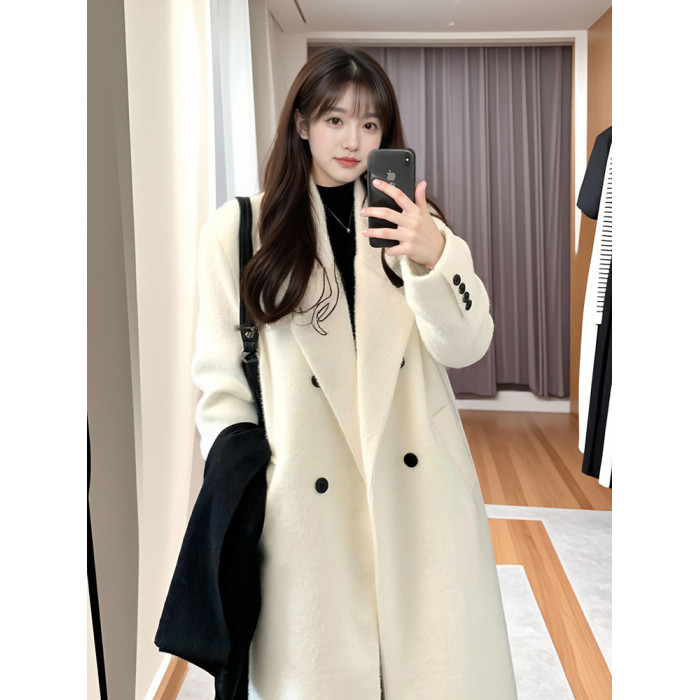 毛呢外套女小個子2025新款秋冬季高級感正肩韓系加厚羊毛呢子大衣