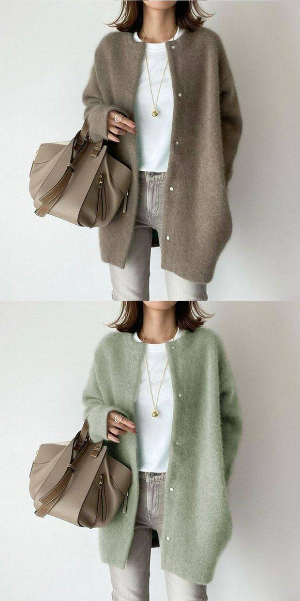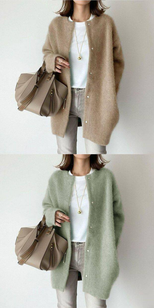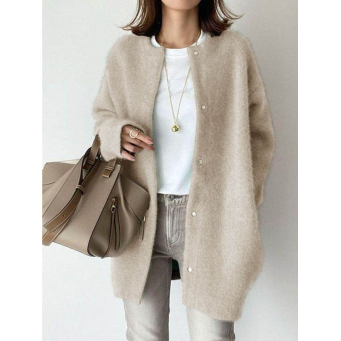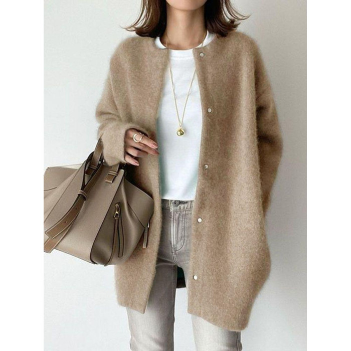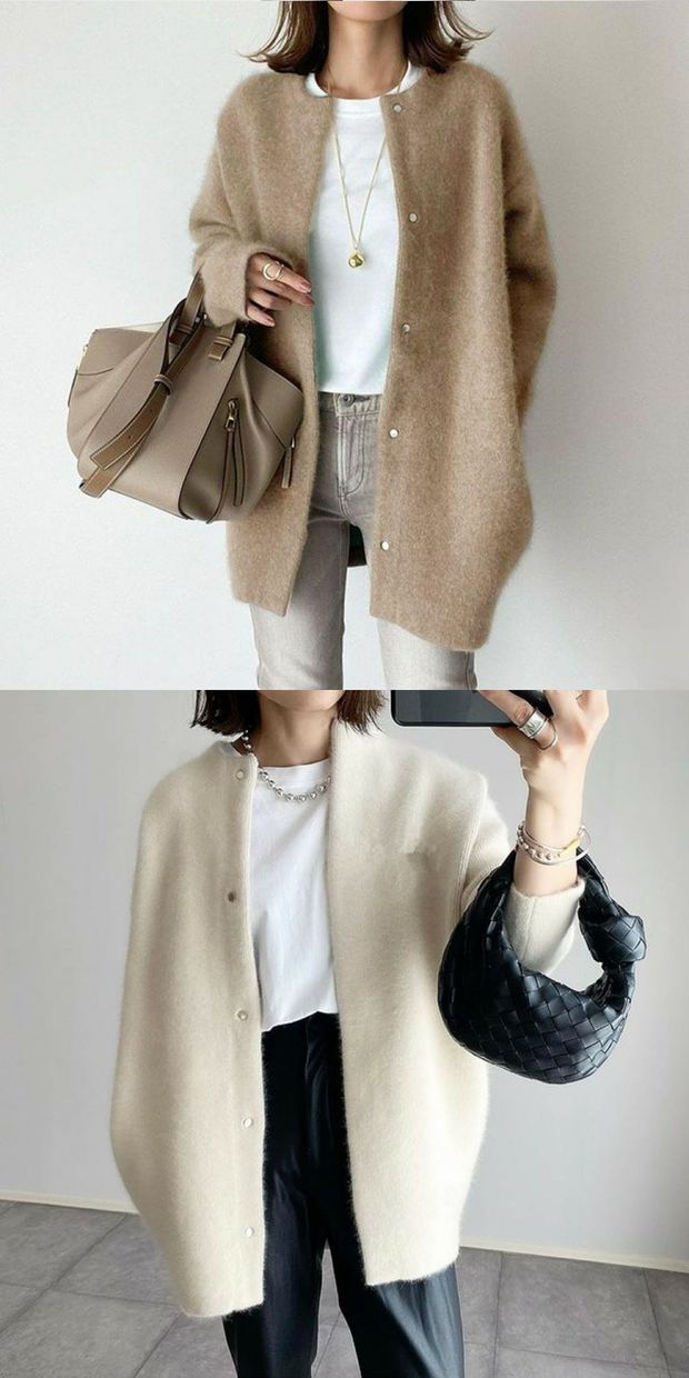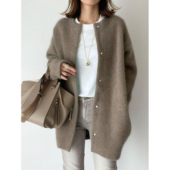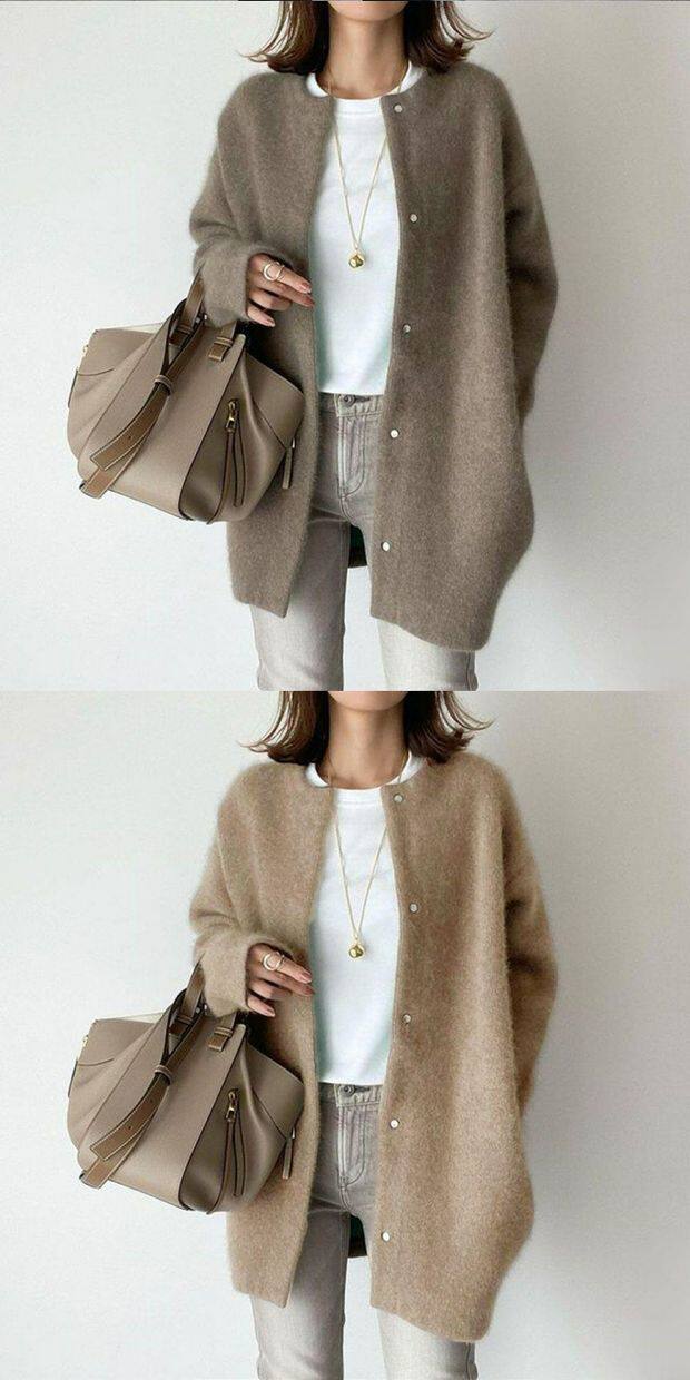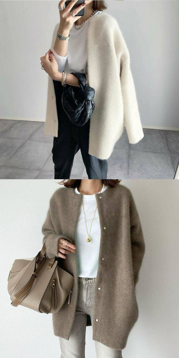 日系2024秋冬新款柔軟針織開衫女寬松顯瘦中長款貂絨毛呢外套