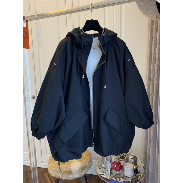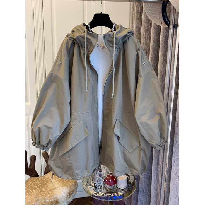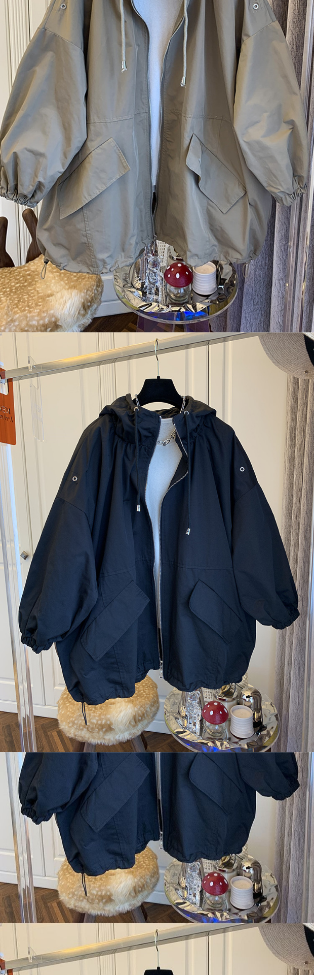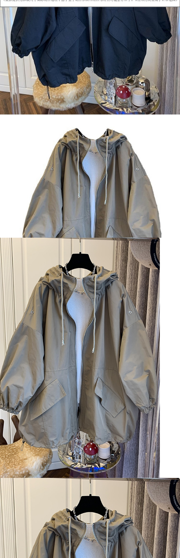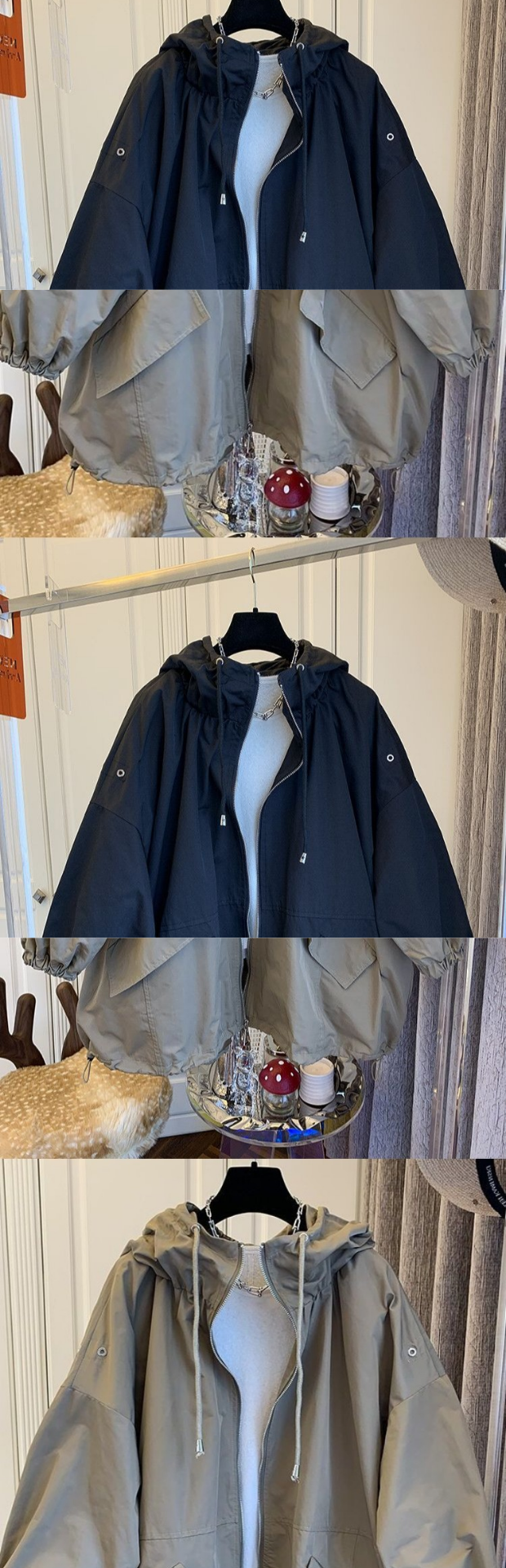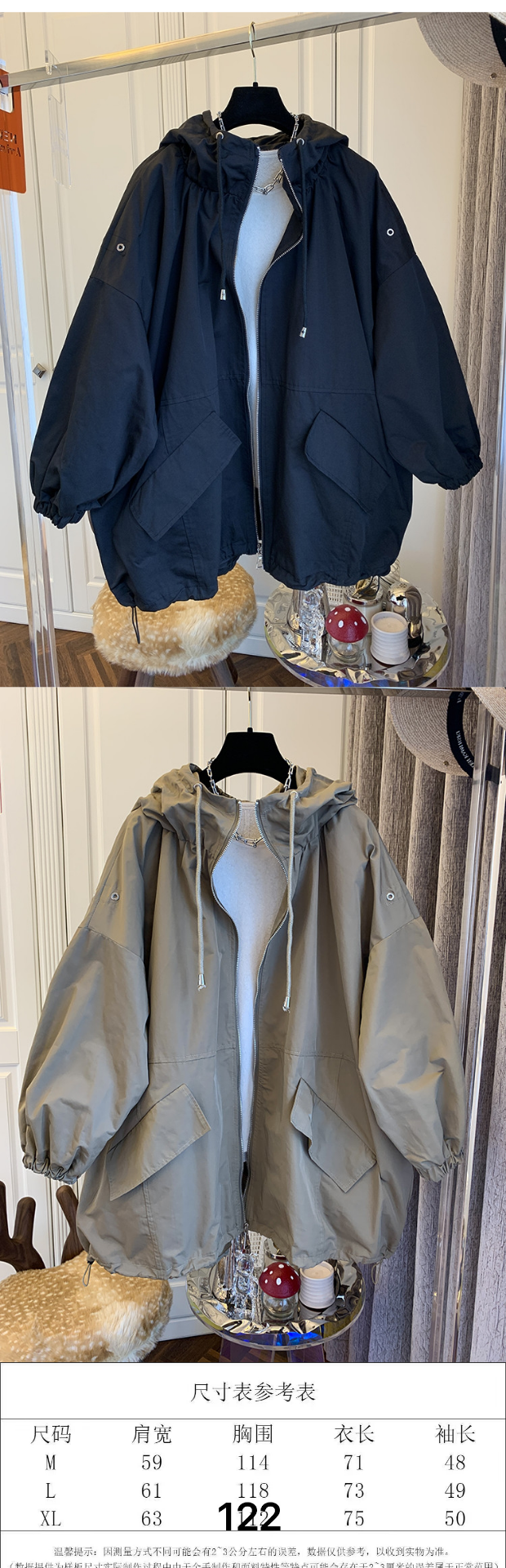 胖mm連帽外套女春秋短款2025大碼寬松休閒百搭小個子風衣薄款上衣