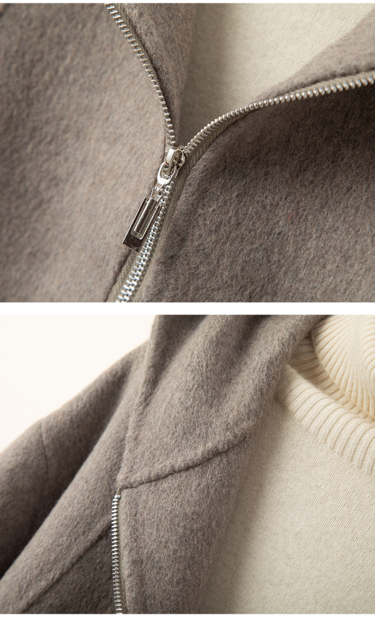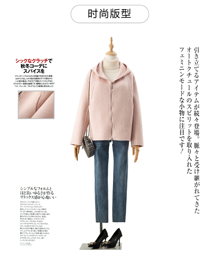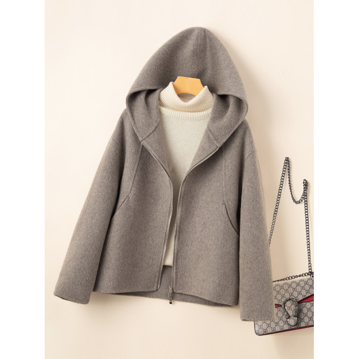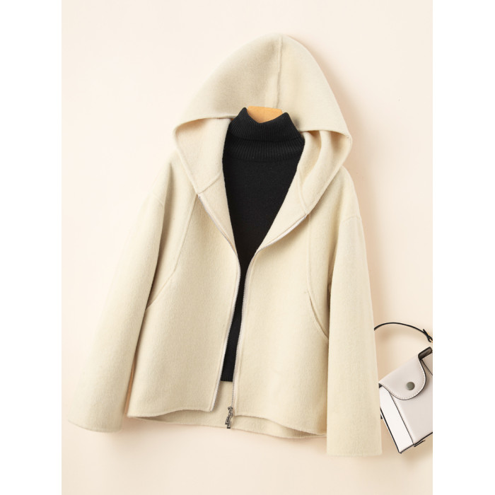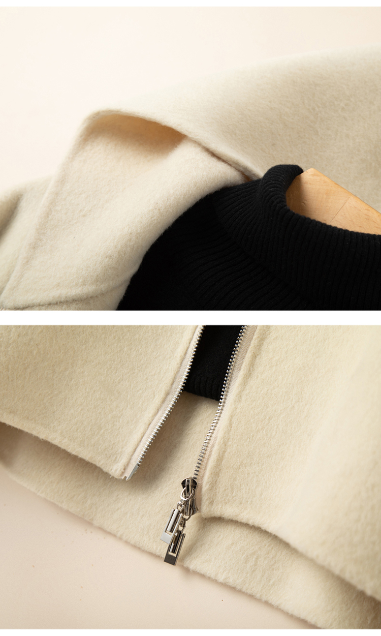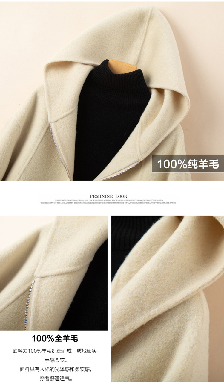 小個子毛呢外套女2024冬季新款粉色連帽短款拉鍊式雙面呢子大衣女