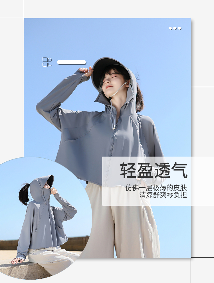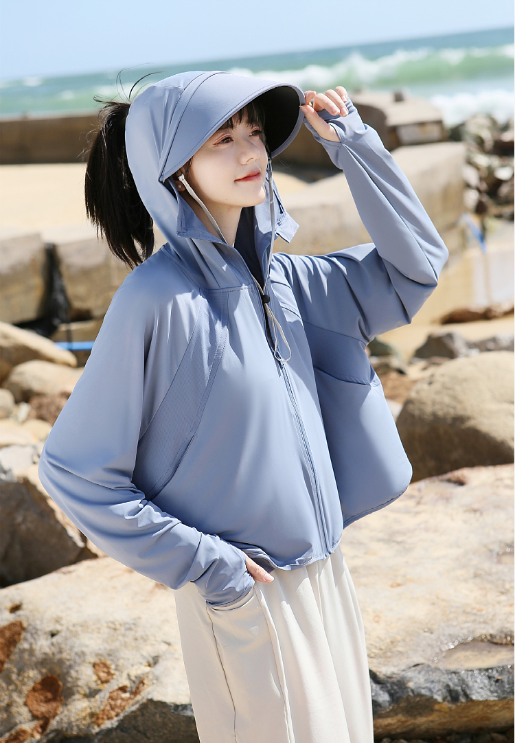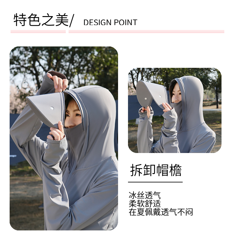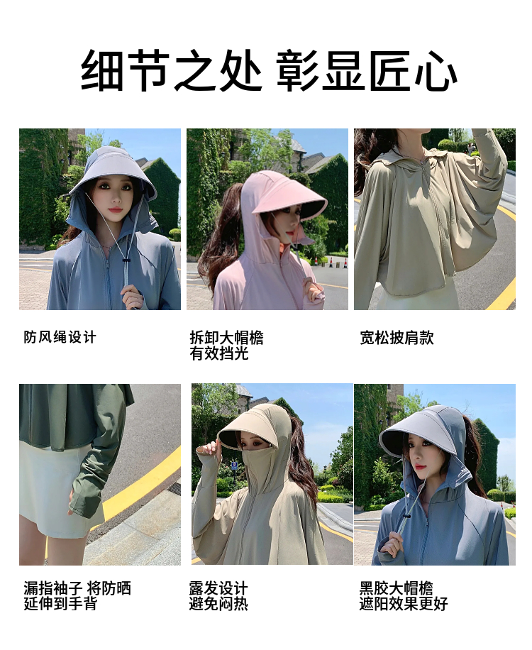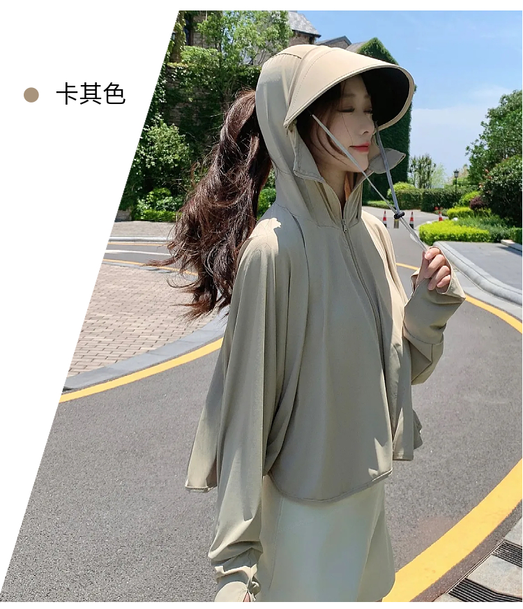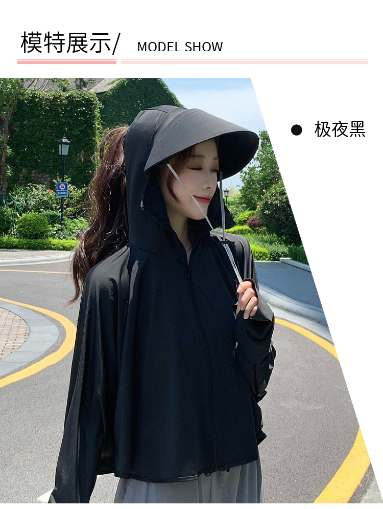 防曬衣女夏季2025新款黑膠帽簷原紗冰絲防紫外線薄款防曬服