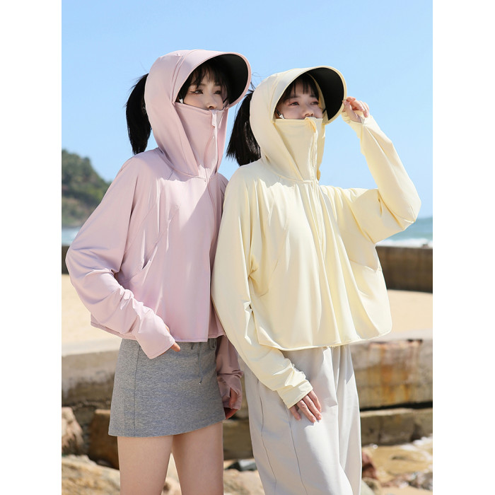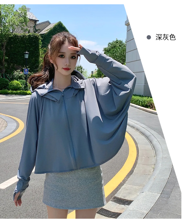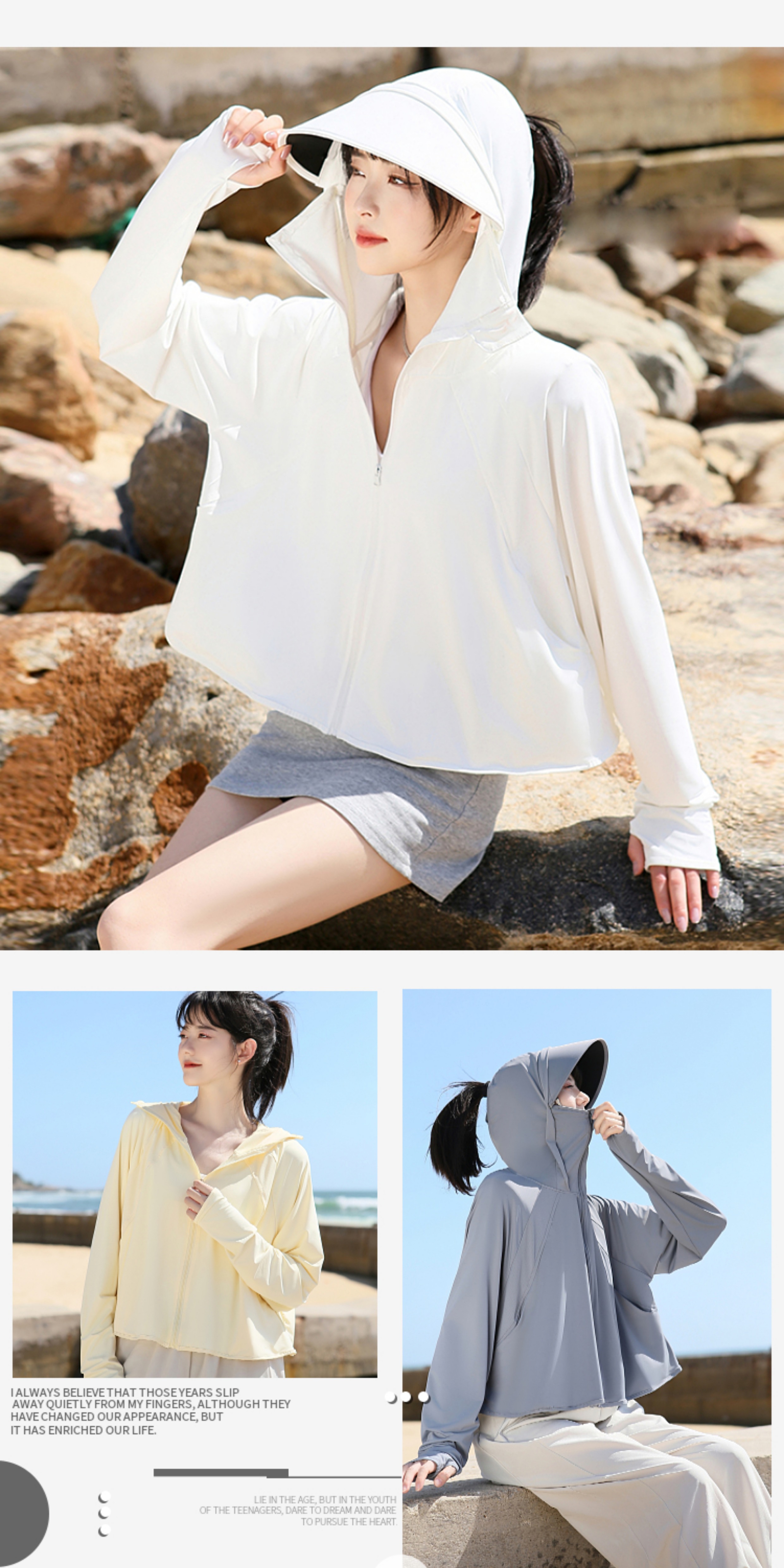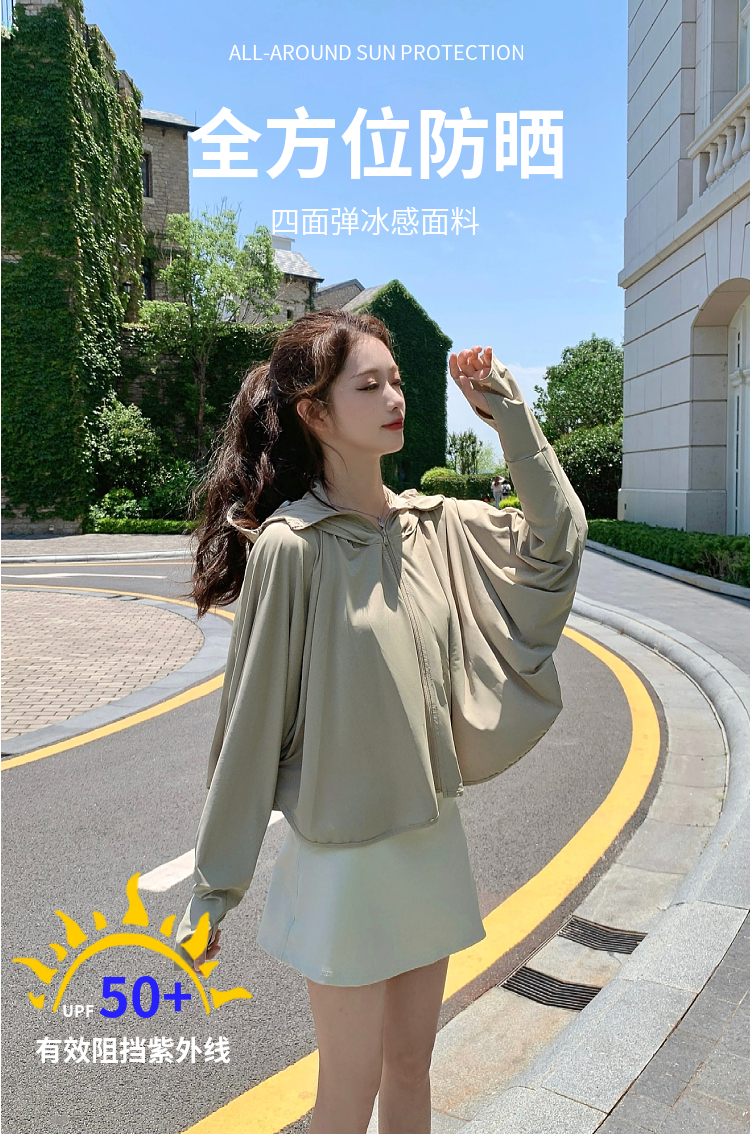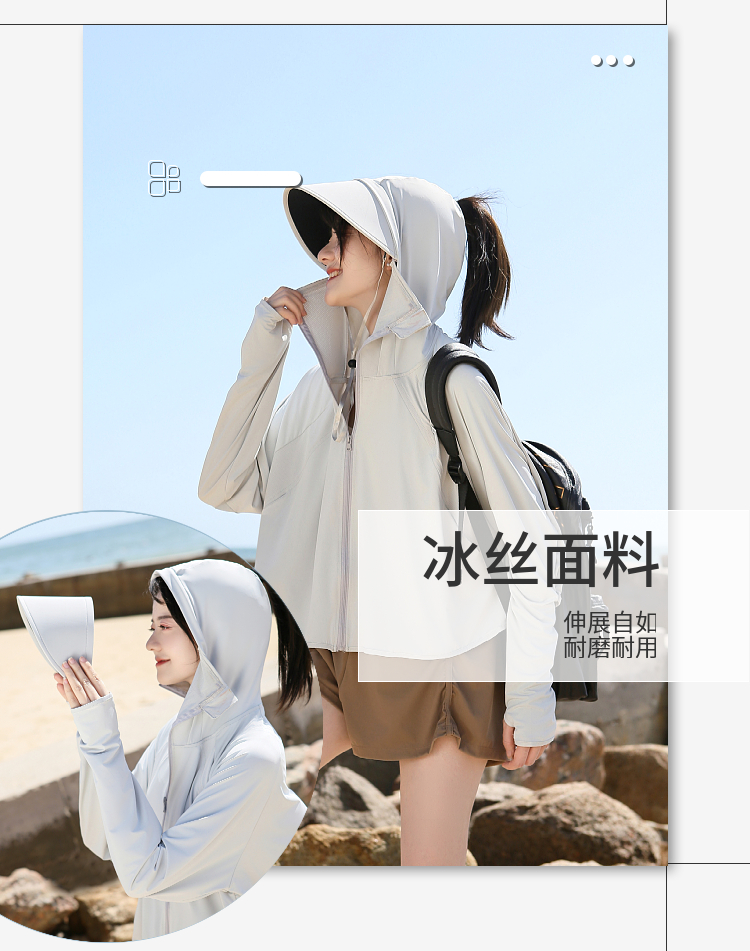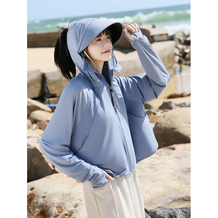 防曬衣女夏季2025新款黑膠帽簷原紗冰絲防紫外線薄款防曬服