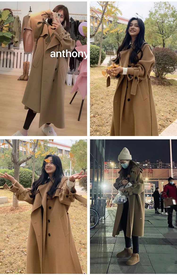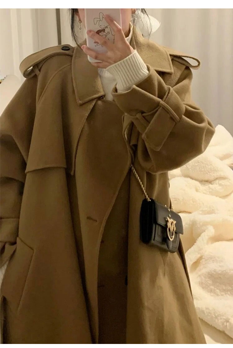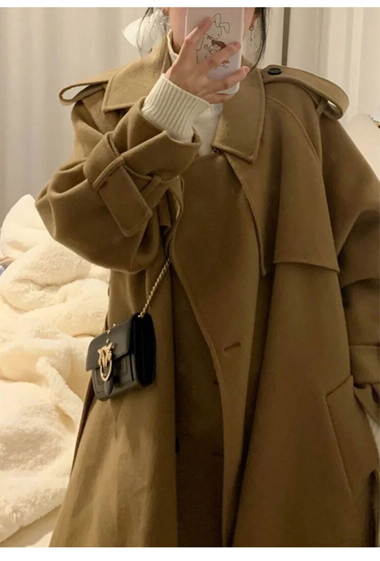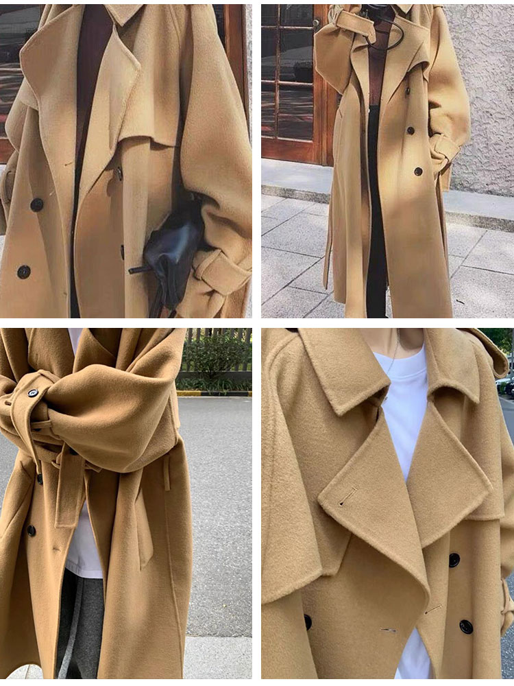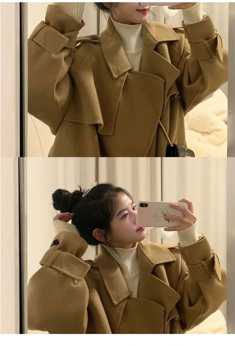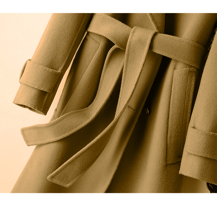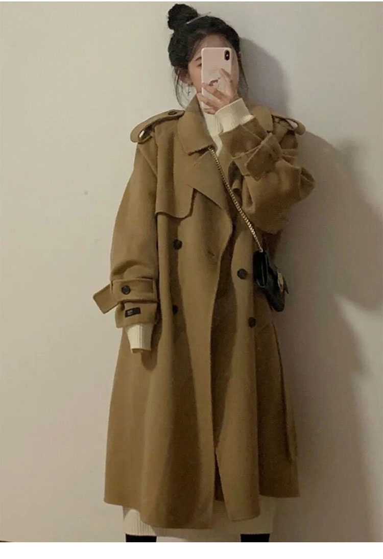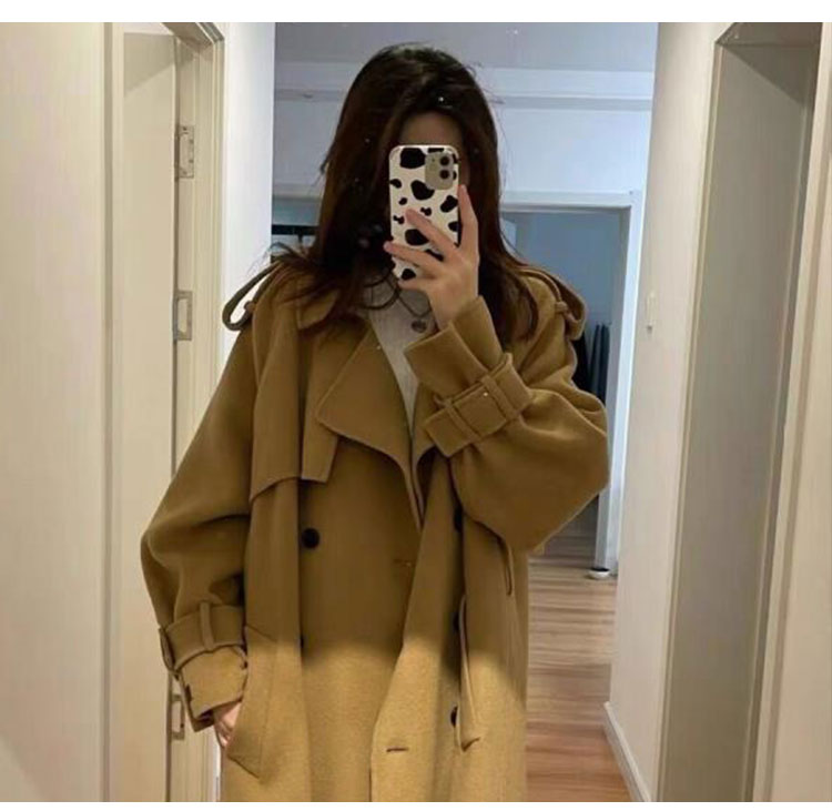 駝色雙面羊絨大衣女2025秋冬新款小個子中長款毛呢外套韓系赫本風
