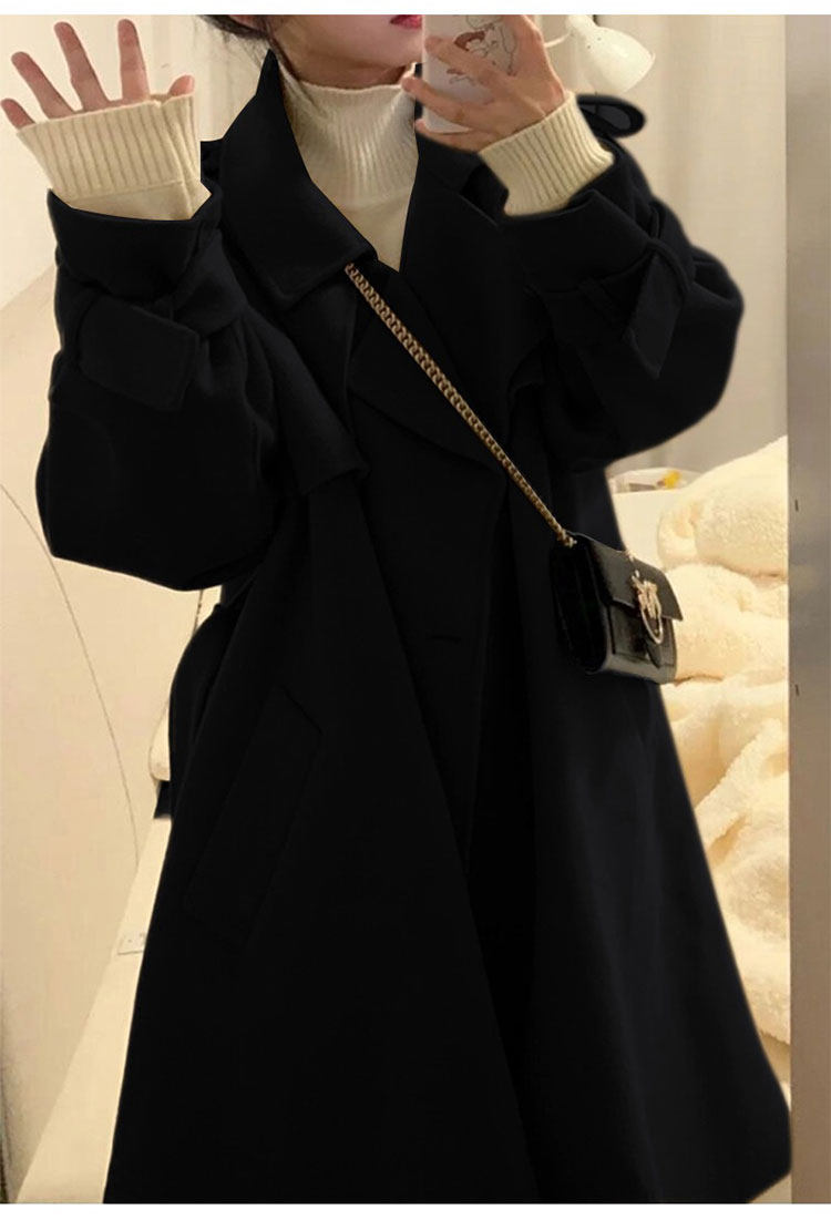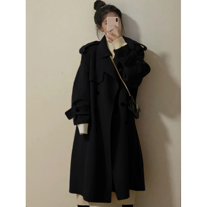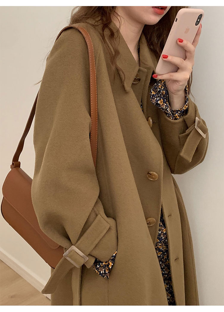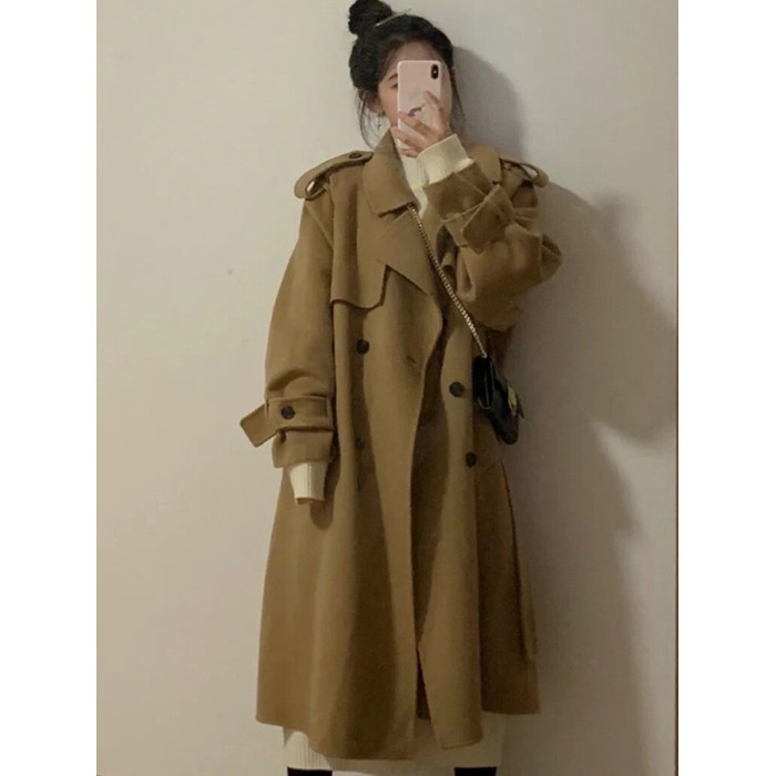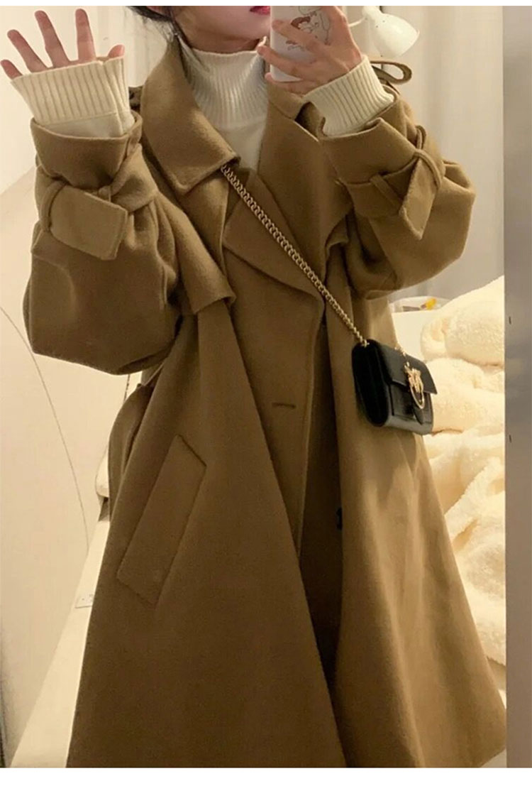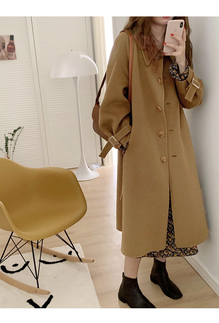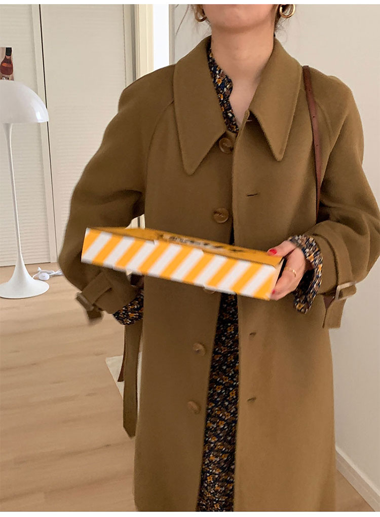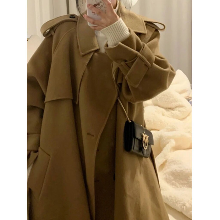 駝色雙面羊絨大衣女2025秋冬新款小個子中長款毛呢外套韓系赫本風