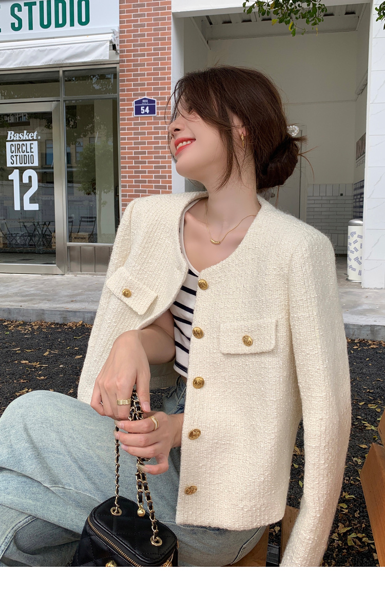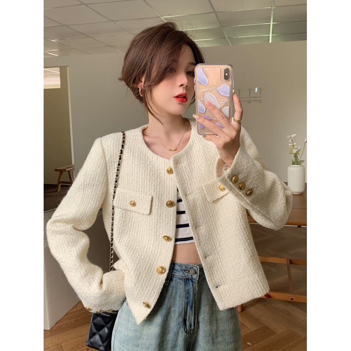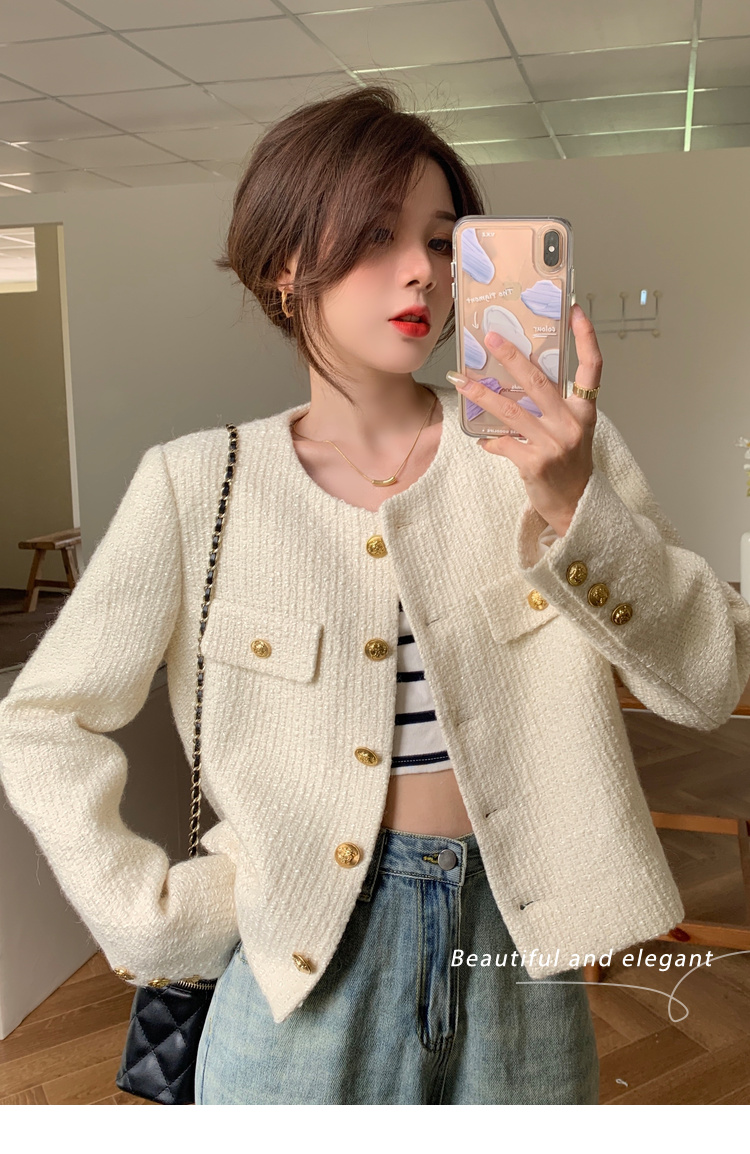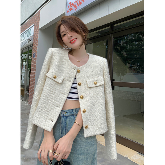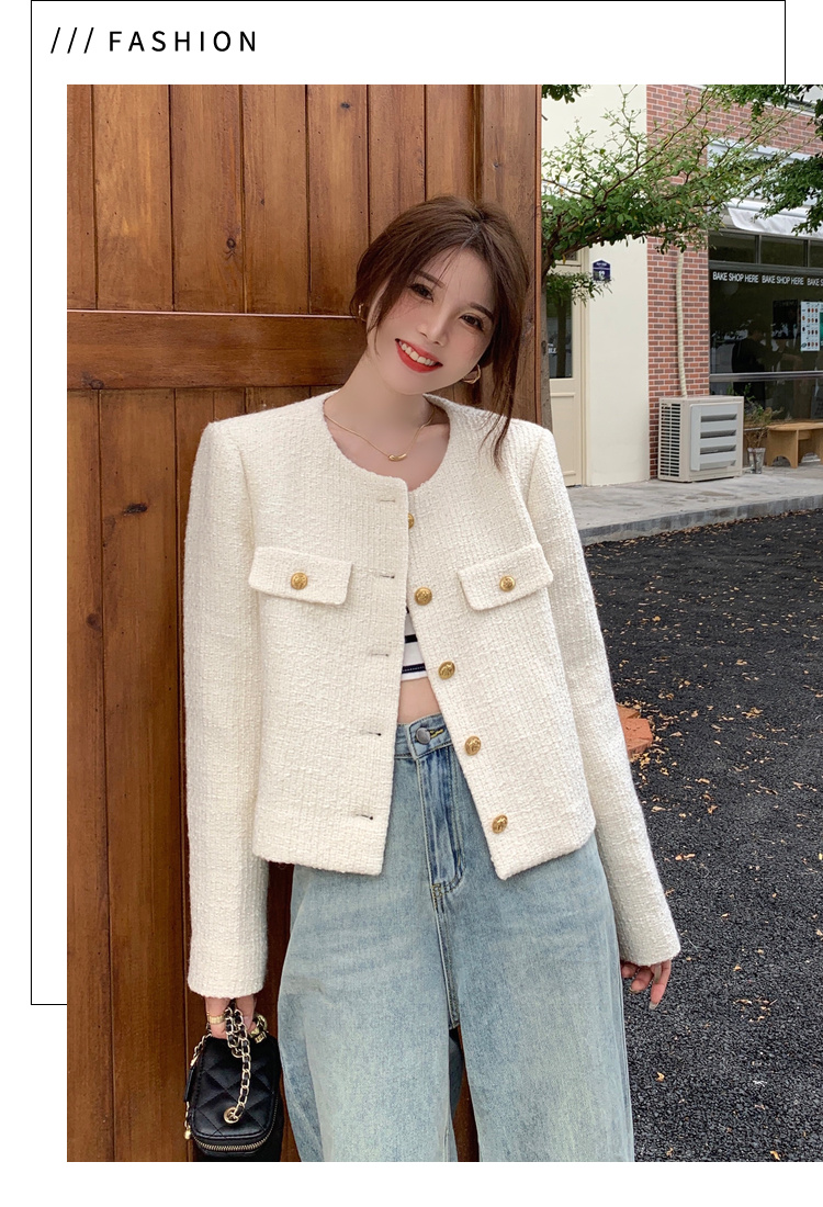 氣質白色小香風外套女裝秋冬2025新款高級感粗花呢小個子短款上衣