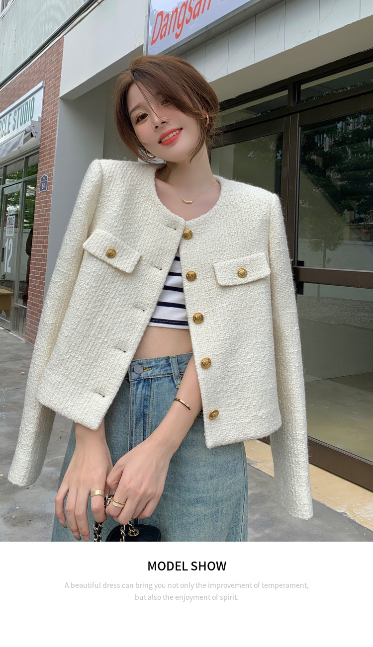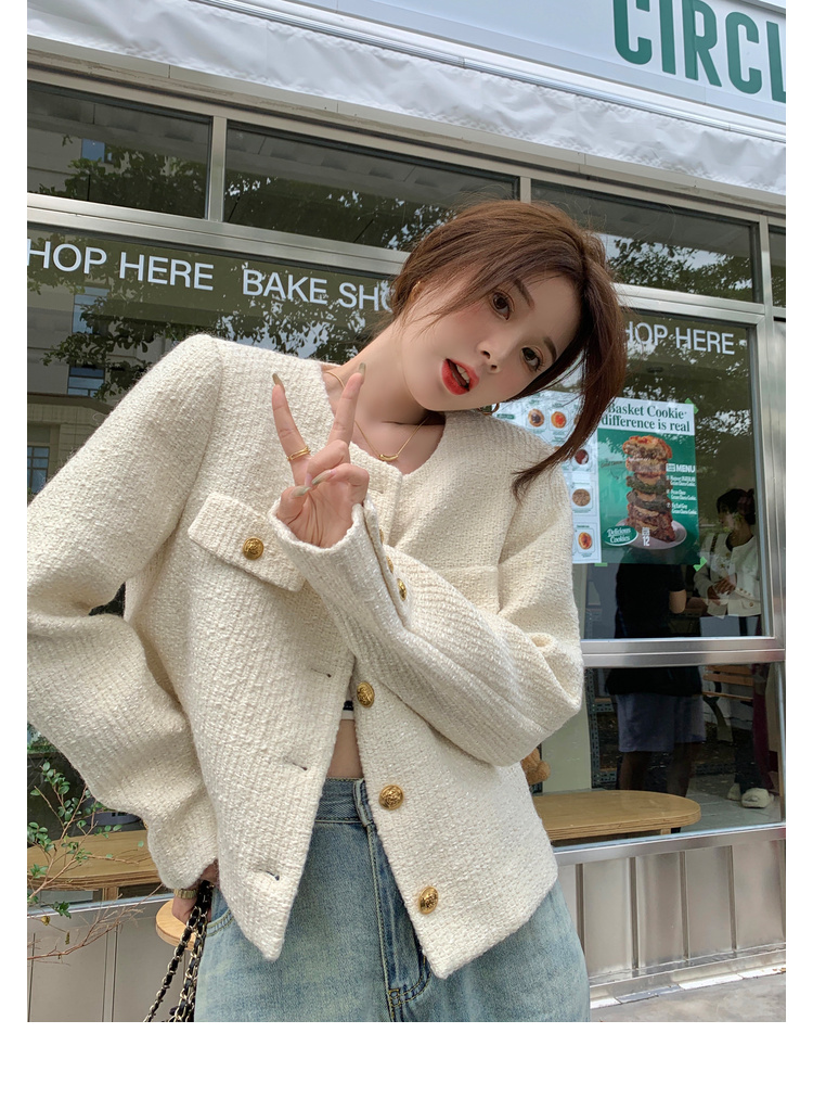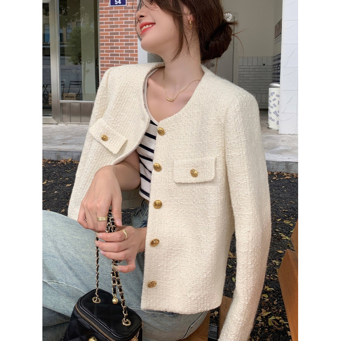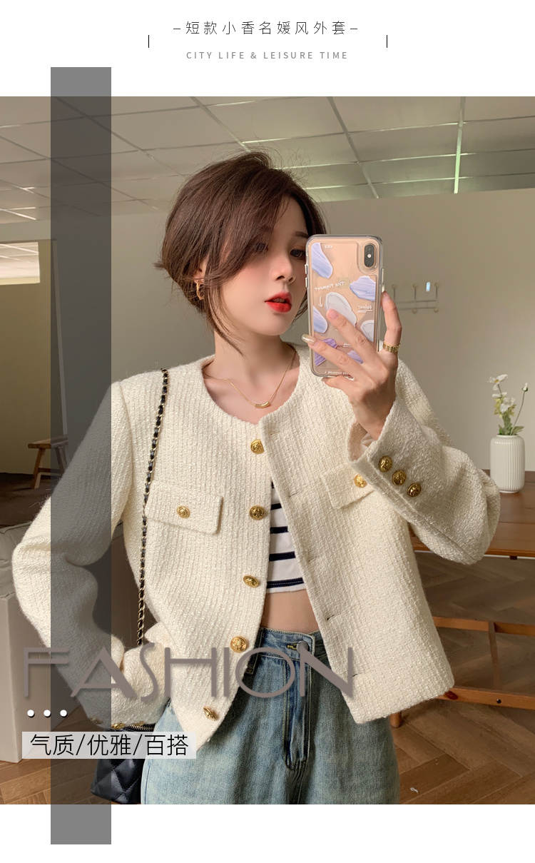 氣質白色小香風外套女裝秋冬2025新款高級感粗花呢小個子短款上衣