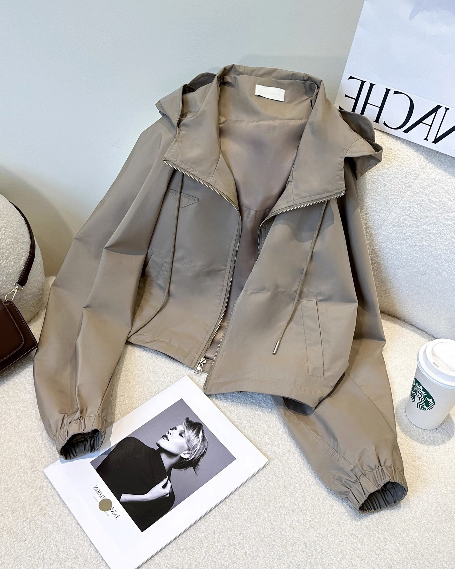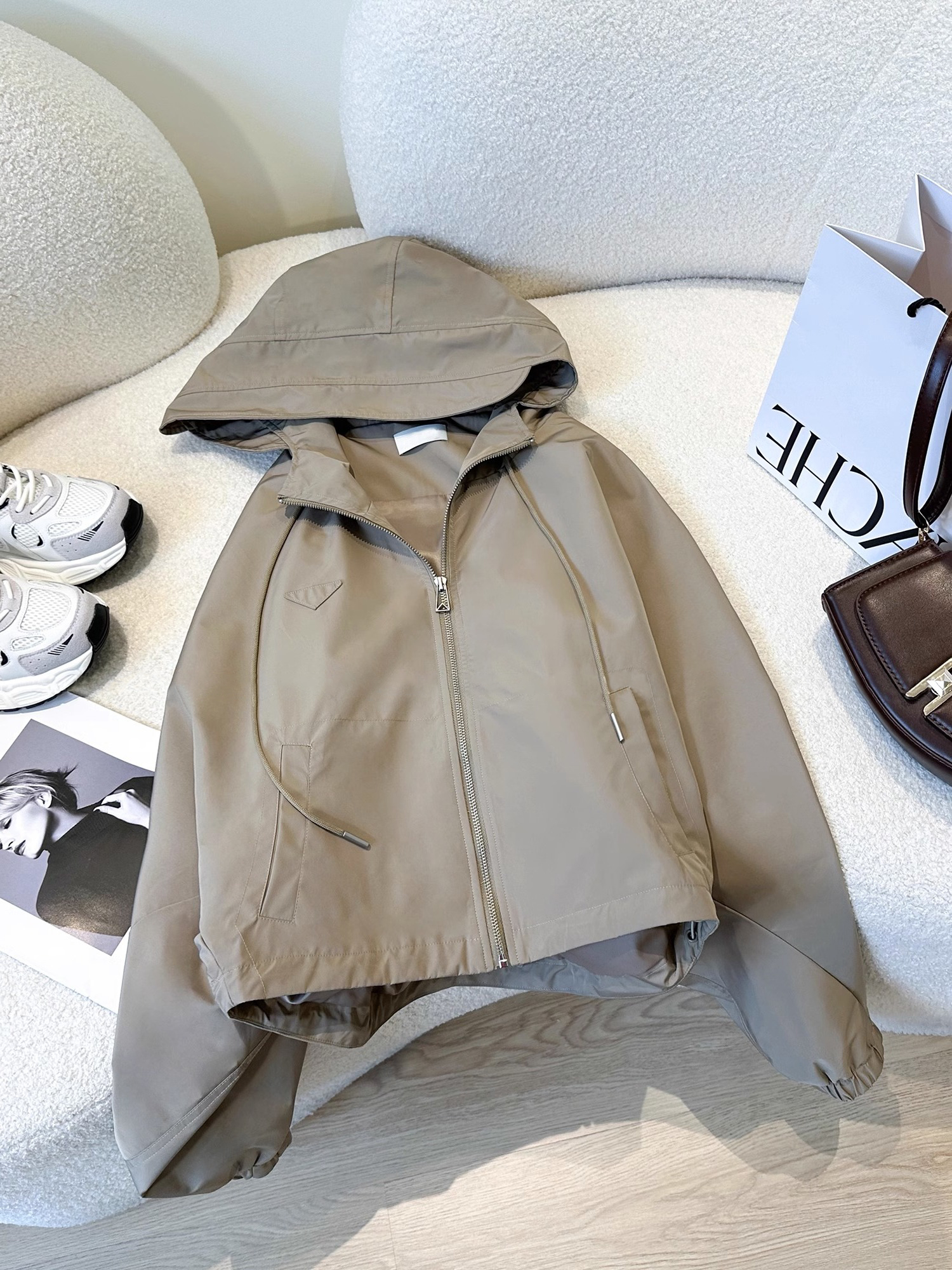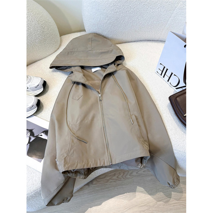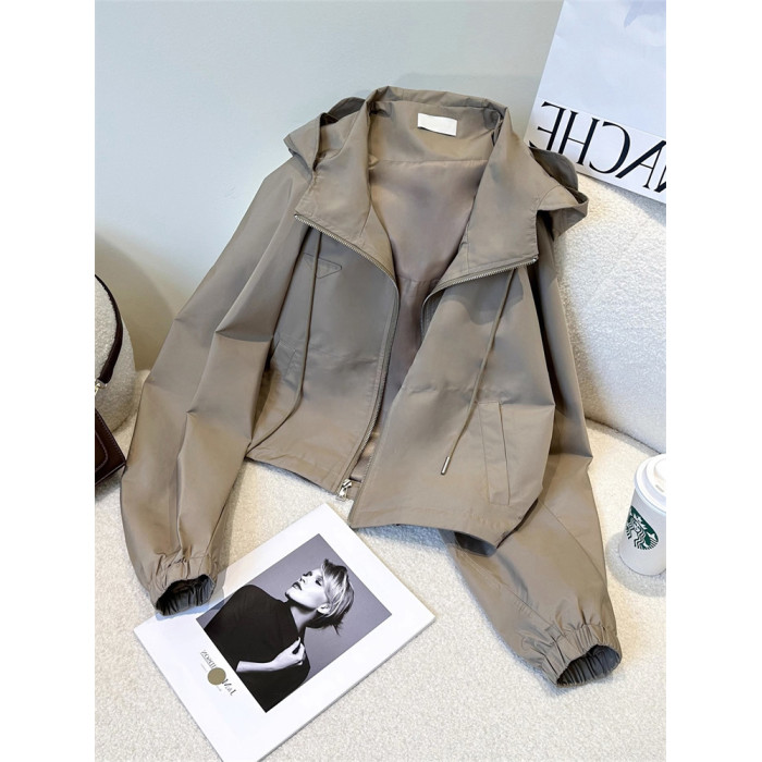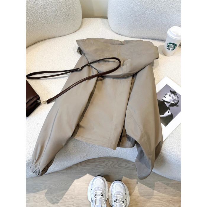 美式復古港風高級感連帽沖鋒衣外套女春秋小個子寬松休閒夾克上衣