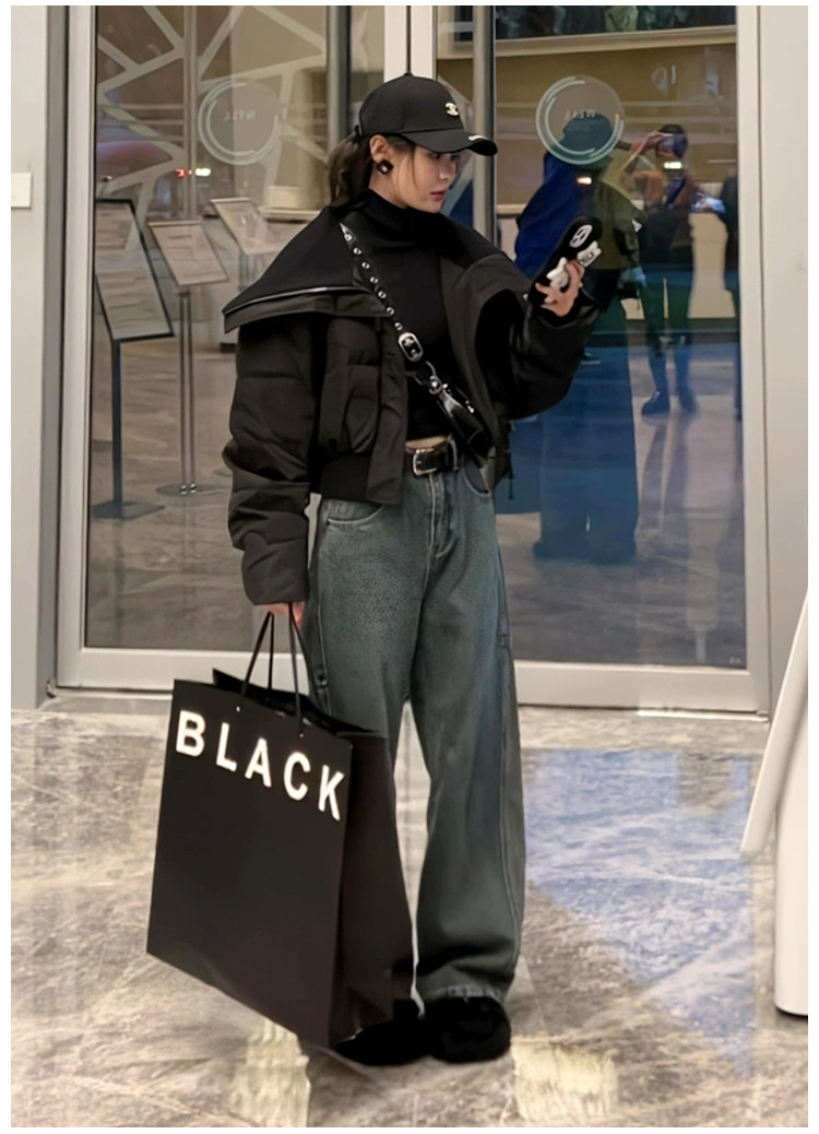 大翻領寬松休閒外套2025冬季新款ins韓版羽絨棉服短款上衣短外套