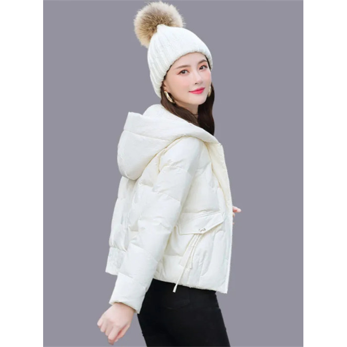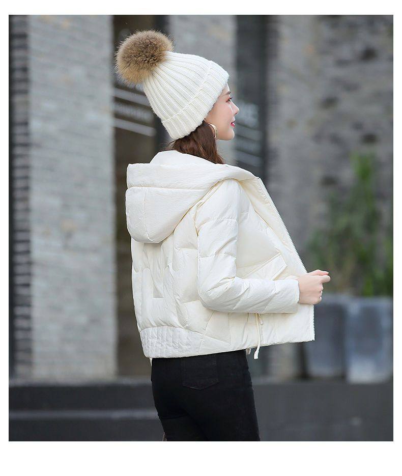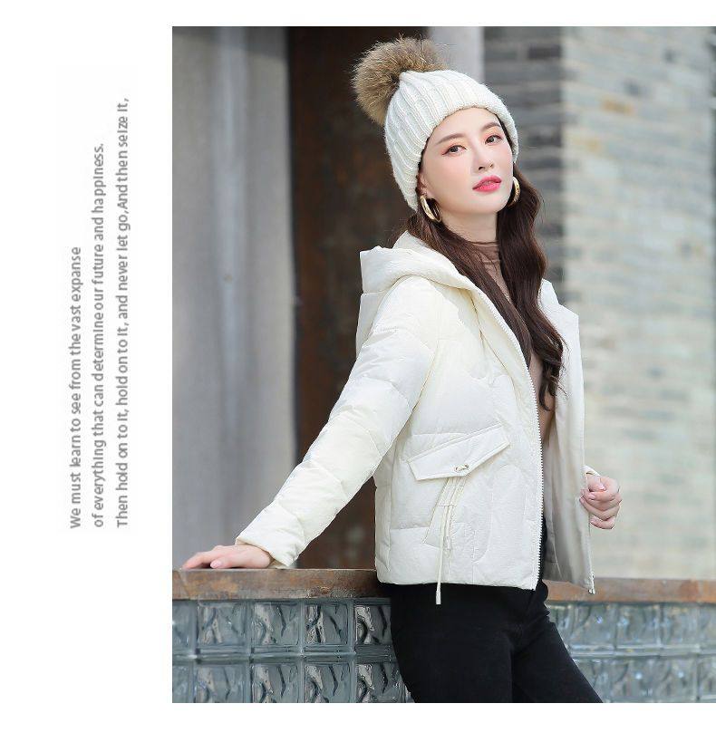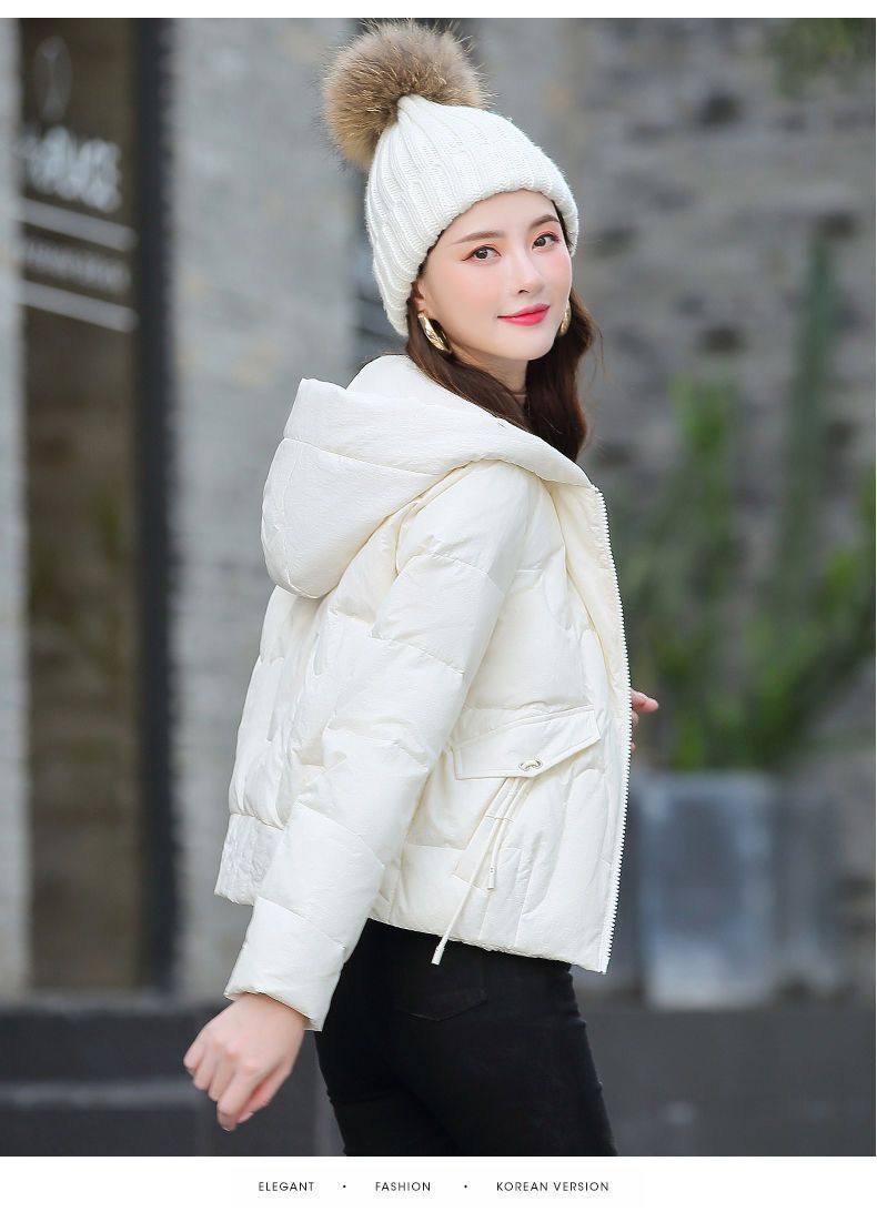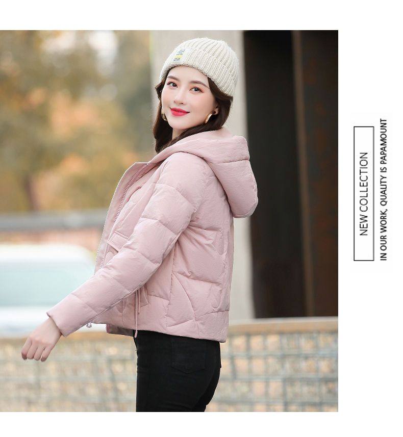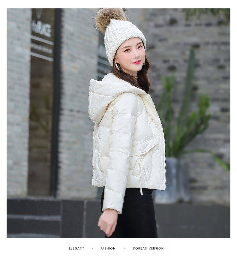 連帽短款白色羽絨棉服女冬季2025新款小個子加厚拉鍊棉衣棉襖外套
