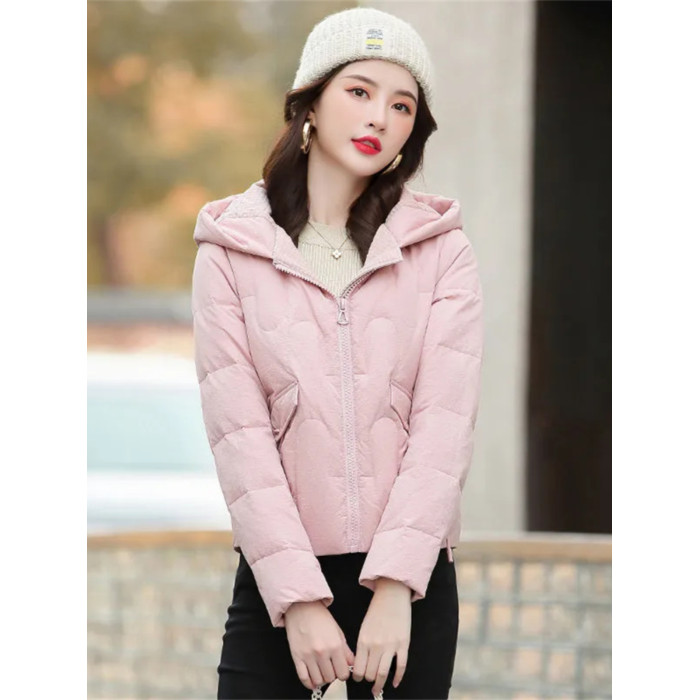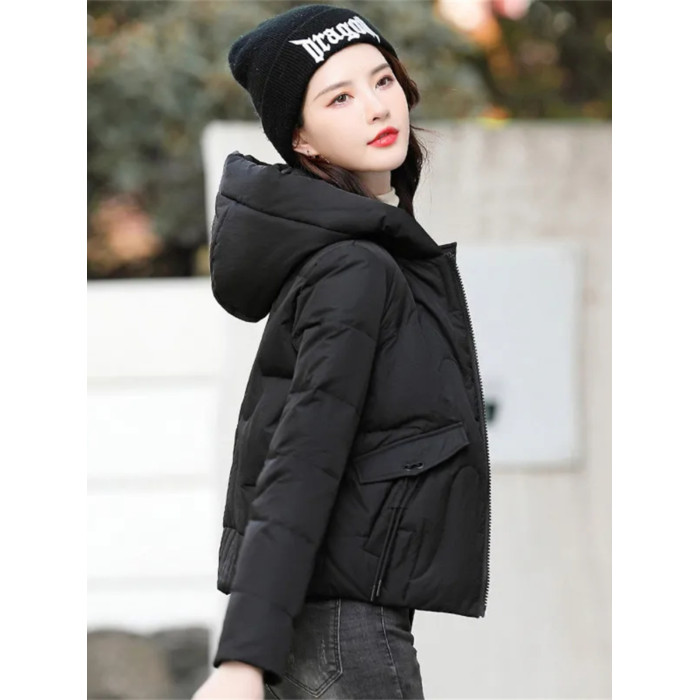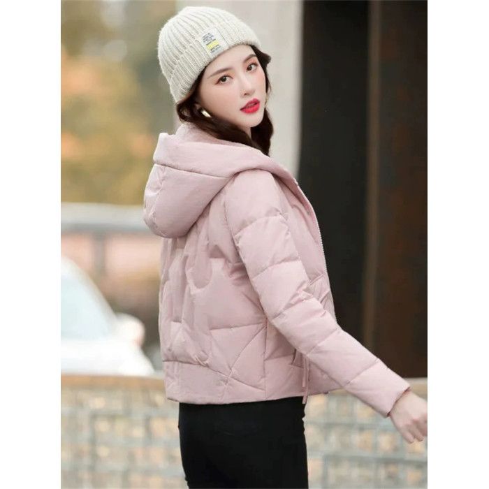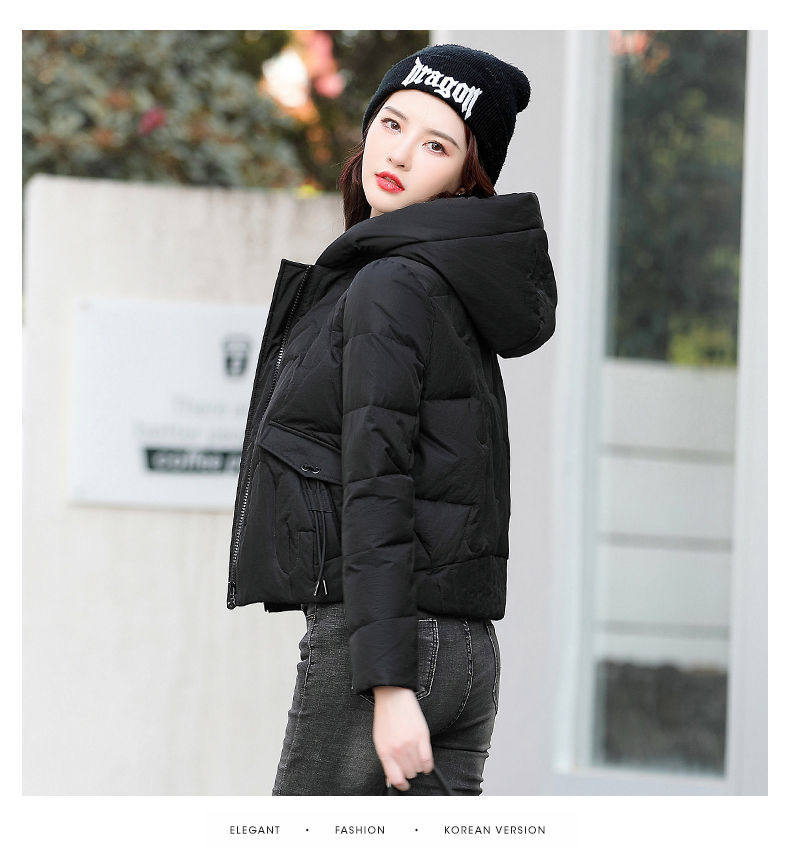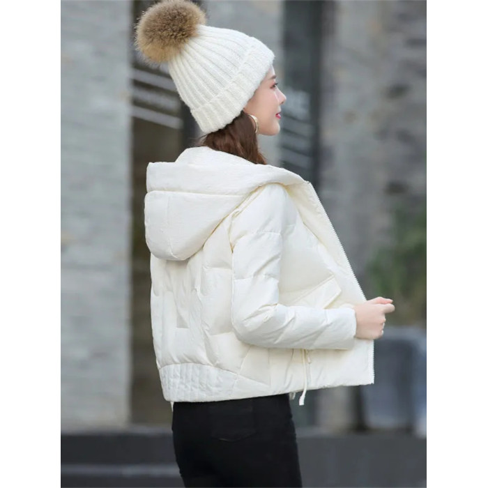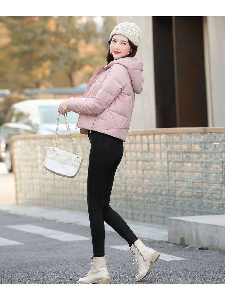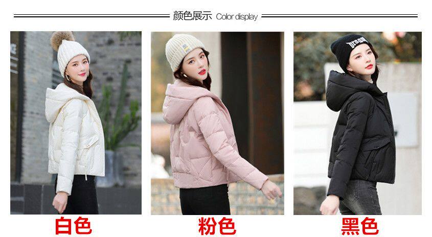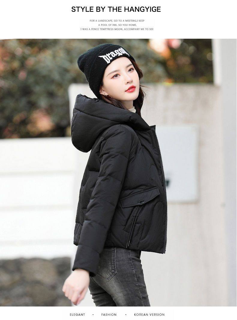 連帽短款白色羽絨棉服女冬季2025新款小個子加厚拉鍊棉衣棉襖外套
