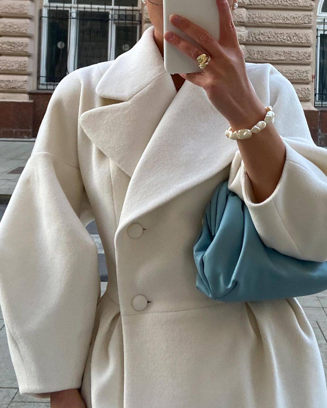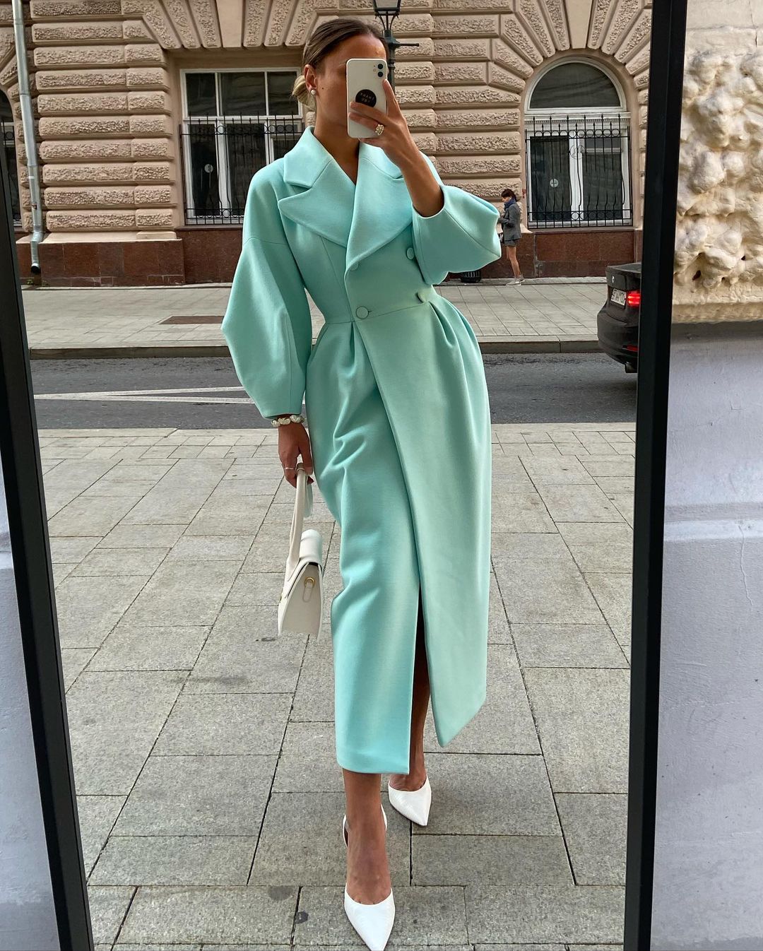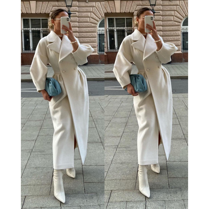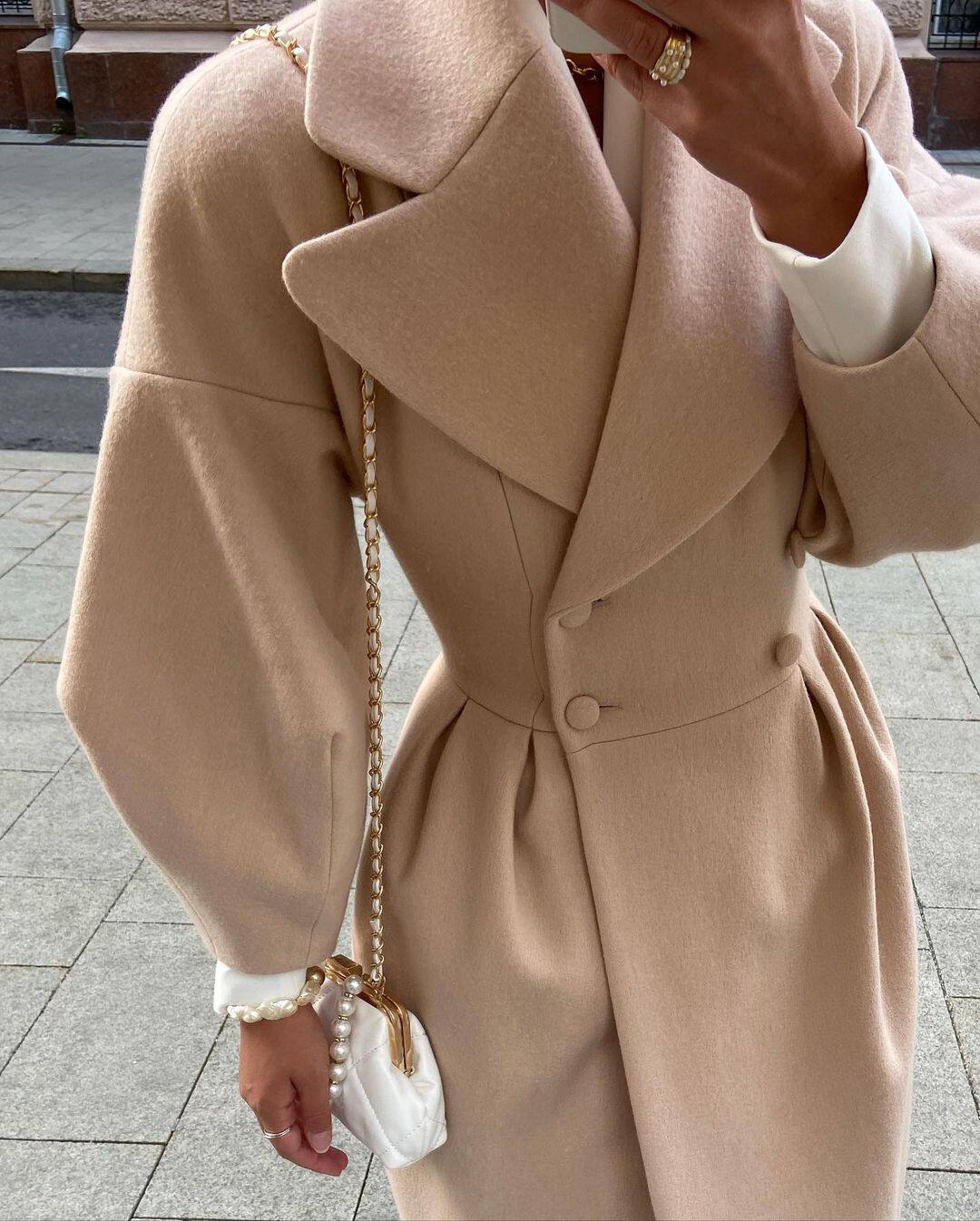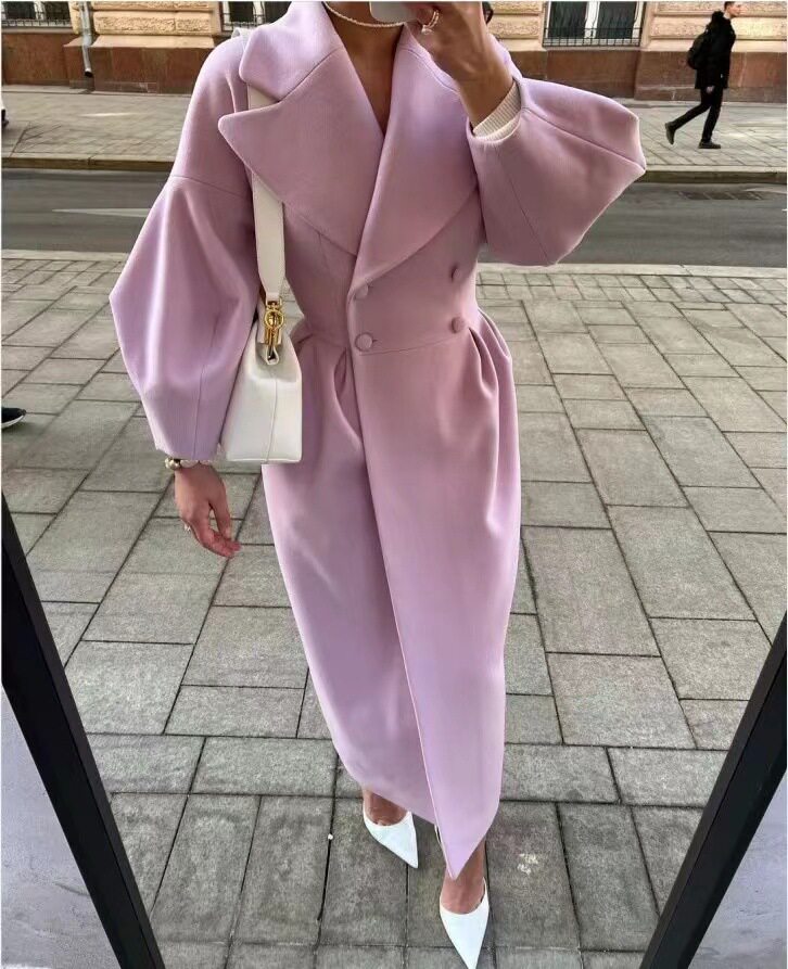 歐美時尚氣質燈籠袖大翻領毛呢外套秋冬 casual long sleeve coat