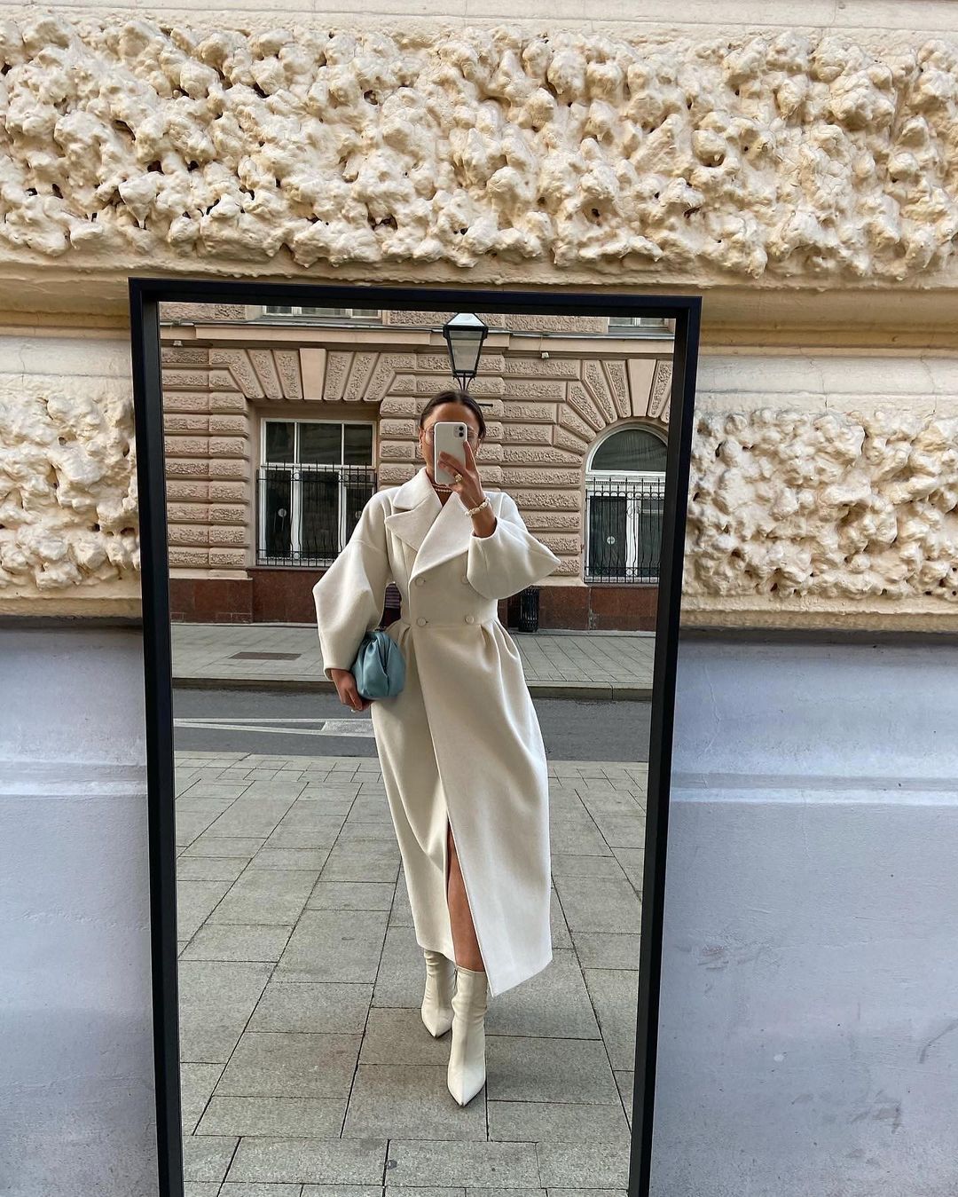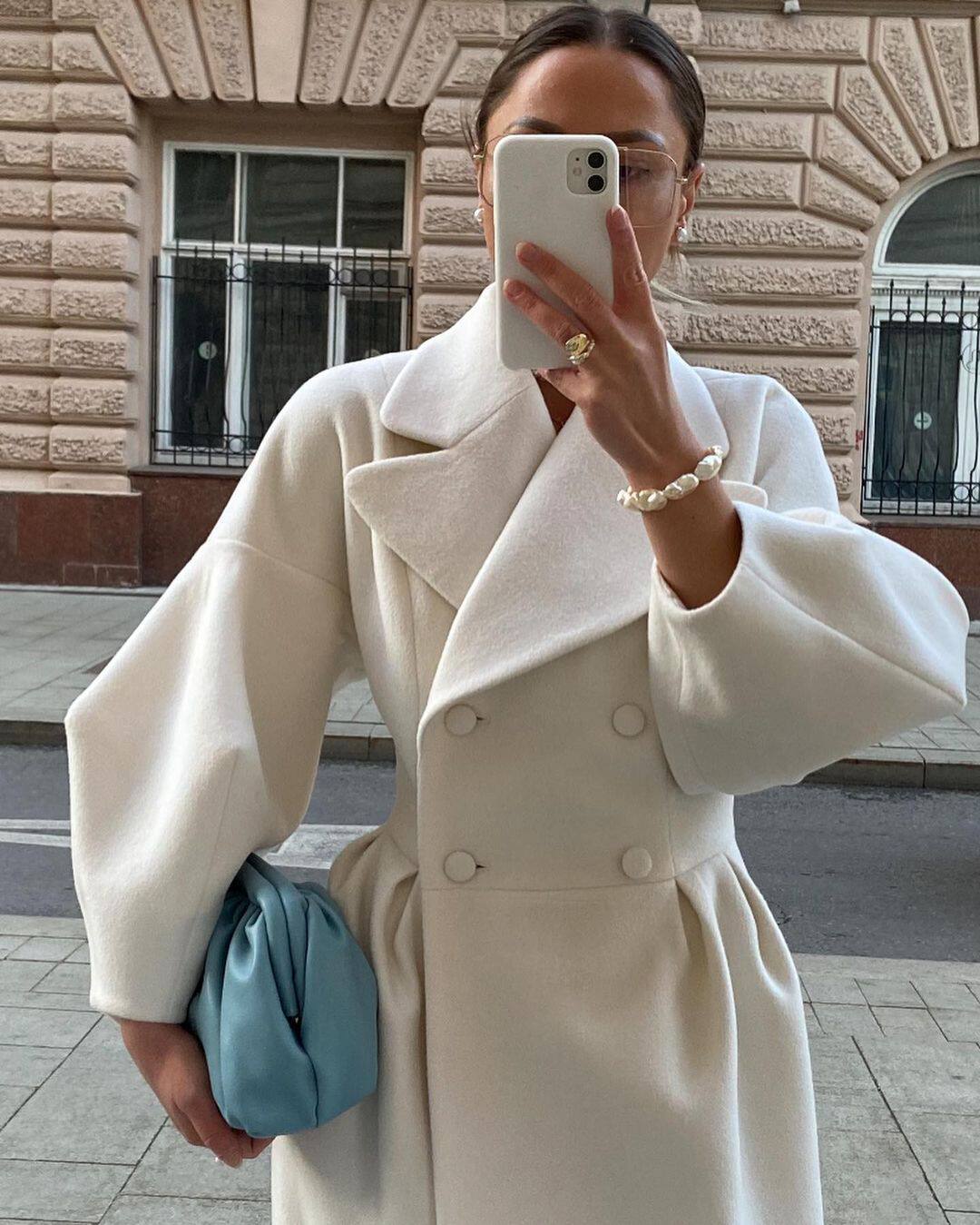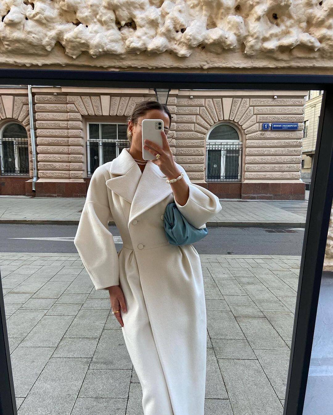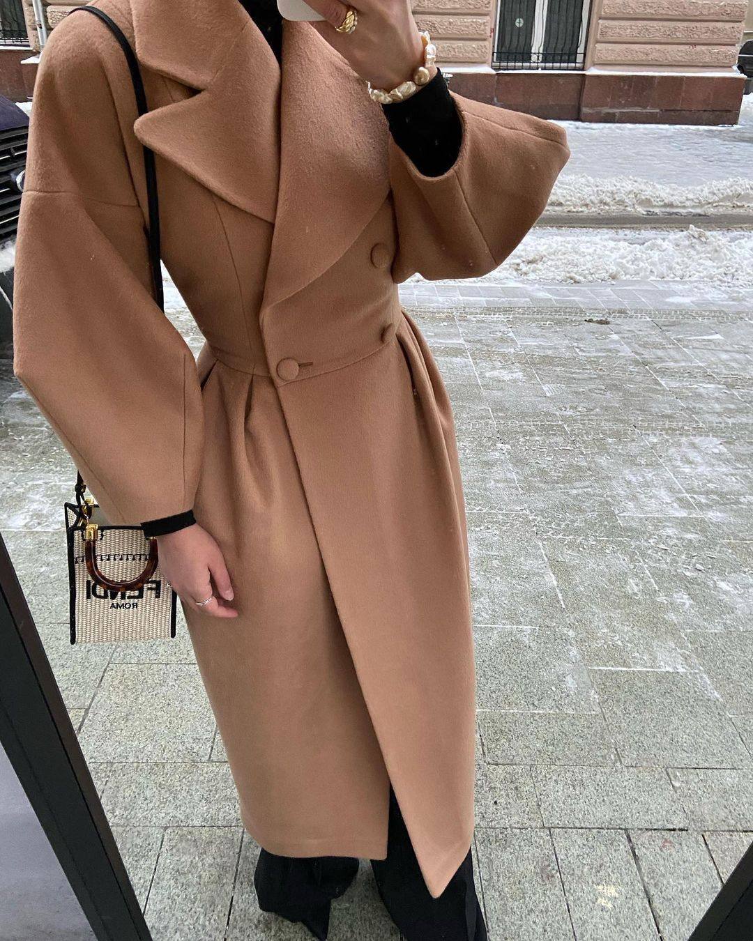 歐美時尚氣質燈籠袖大翻領毛呢外套秋冬 casual long sleeve coat