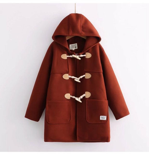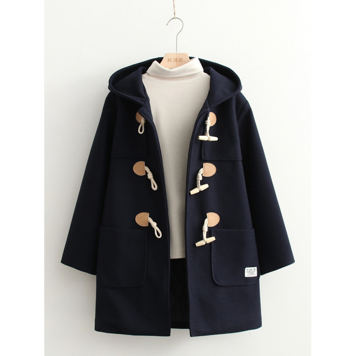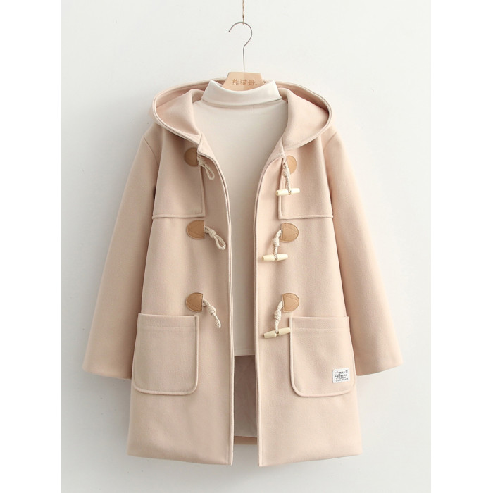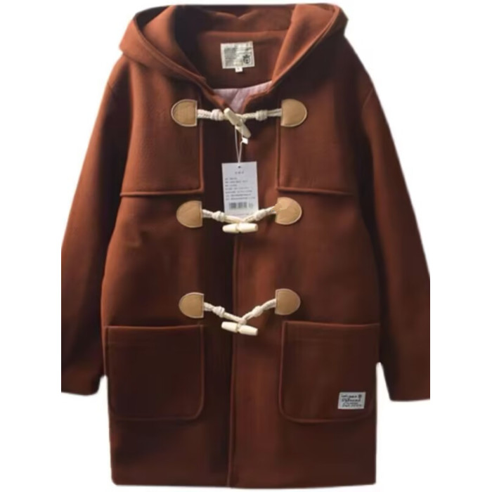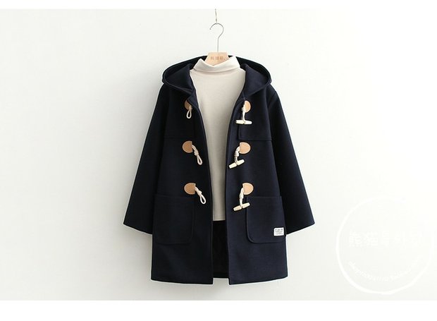 學院風雙排牛角釦中長款毛呢外套女2025春秋新款日系學生加厚大衣