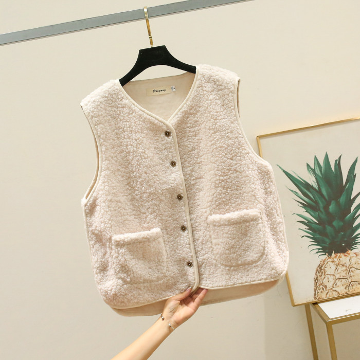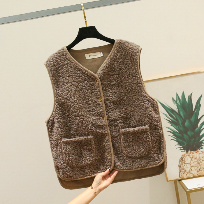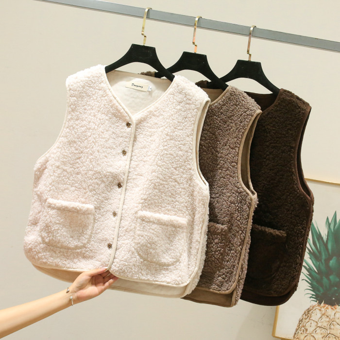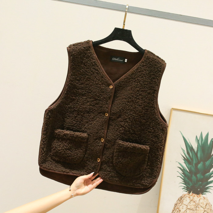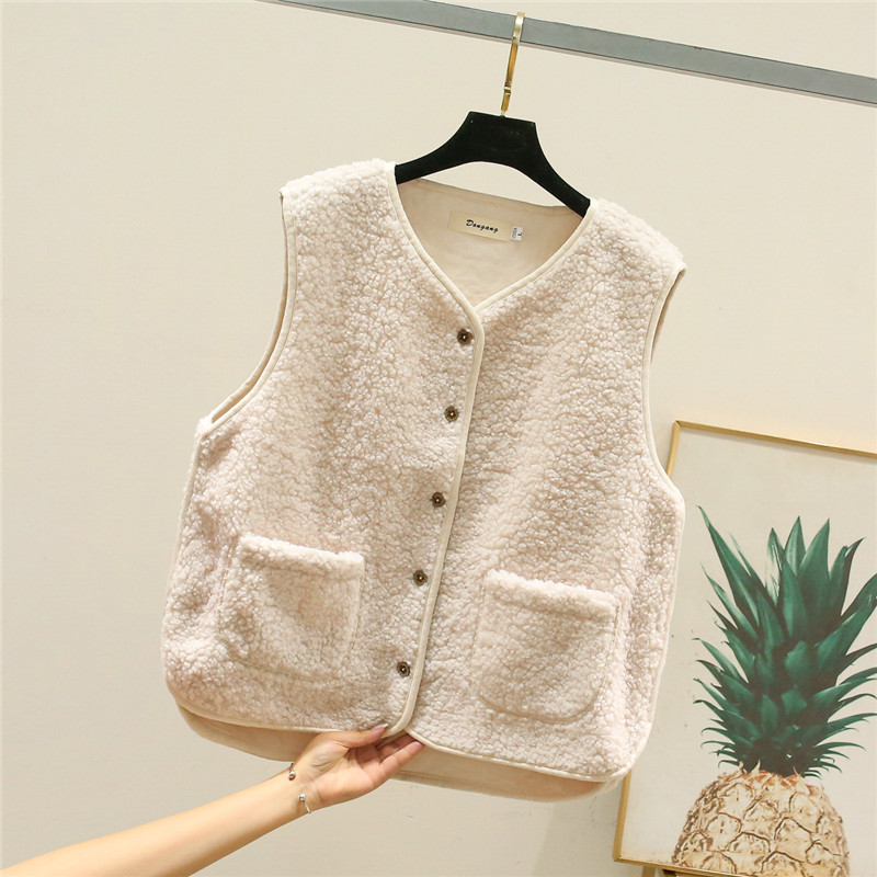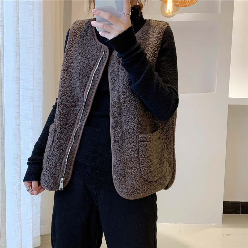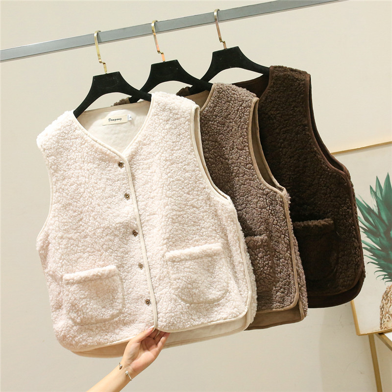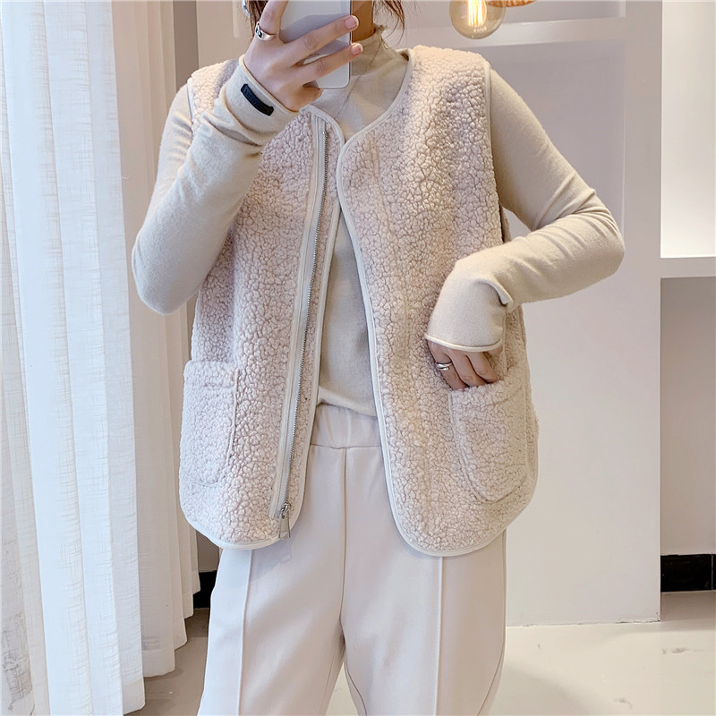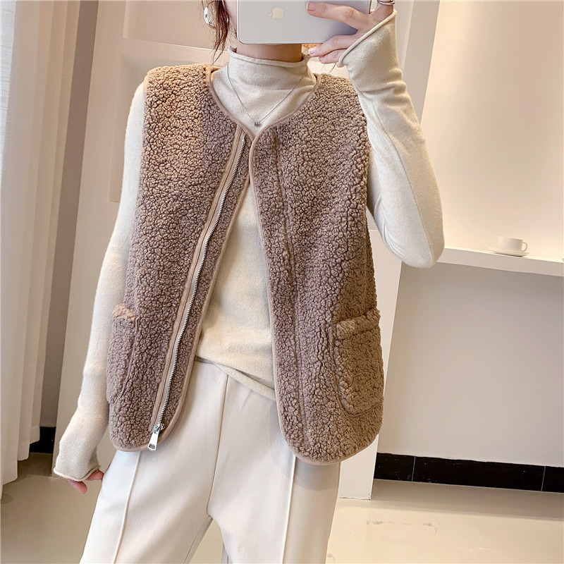 羊羔毛絨馬甲女2024新款春秋冬皮毛一體外塔馬夾背心外穿坎肩外套