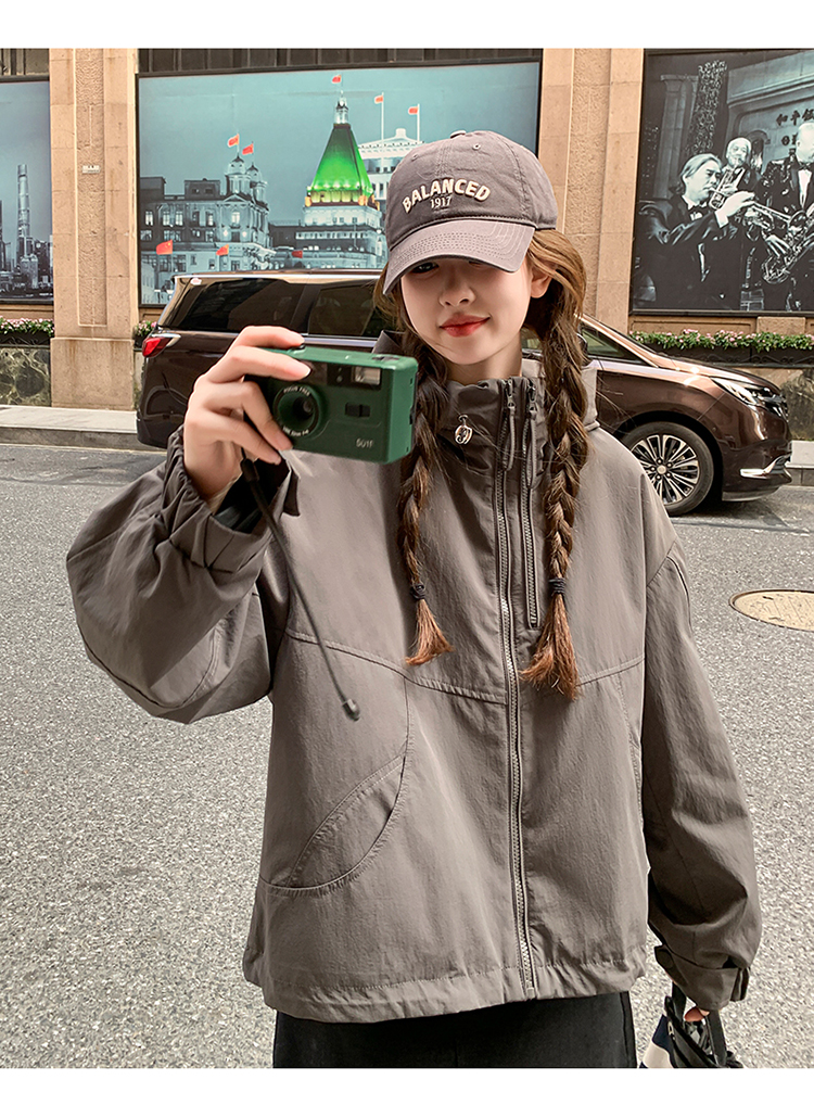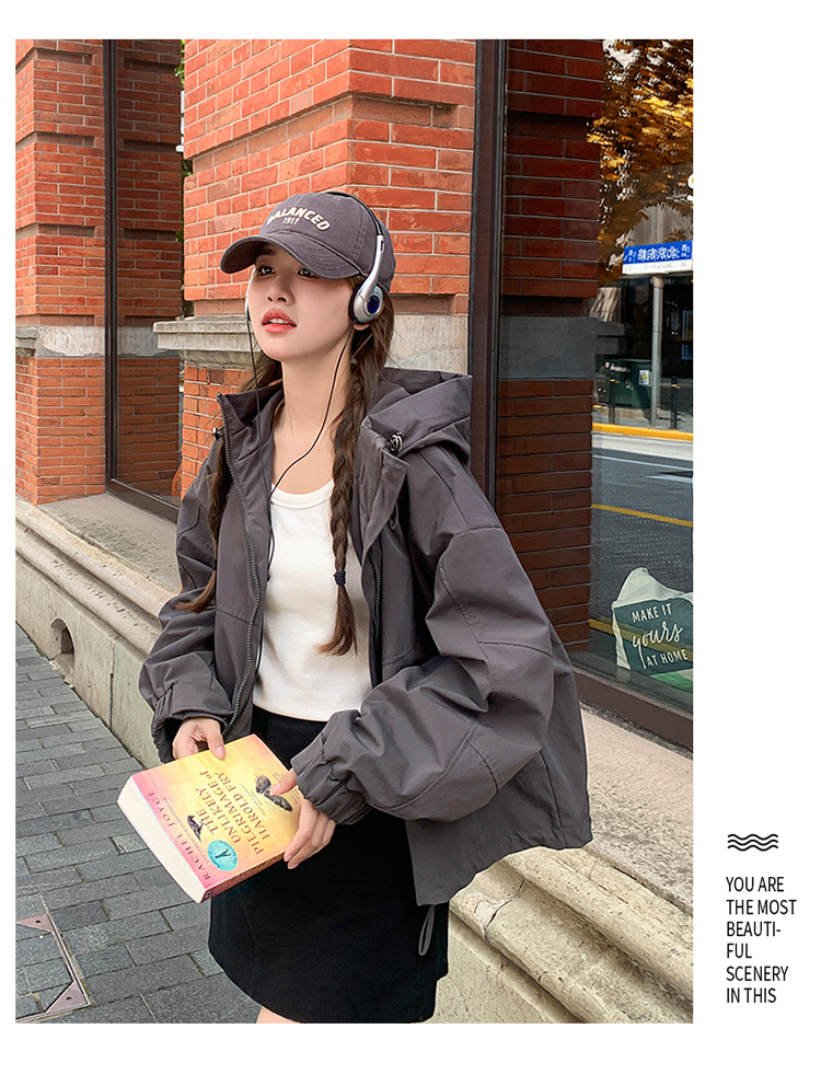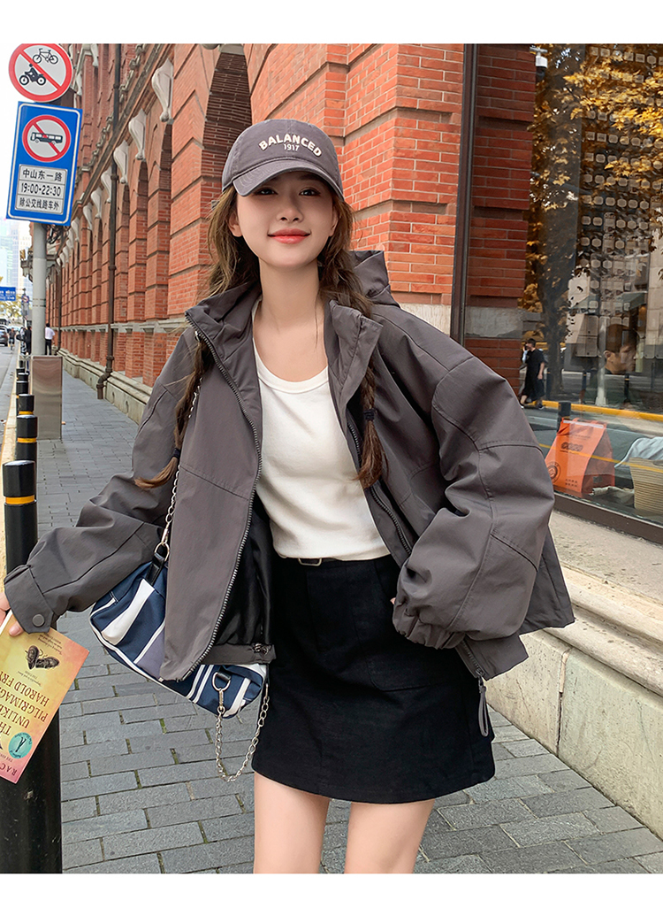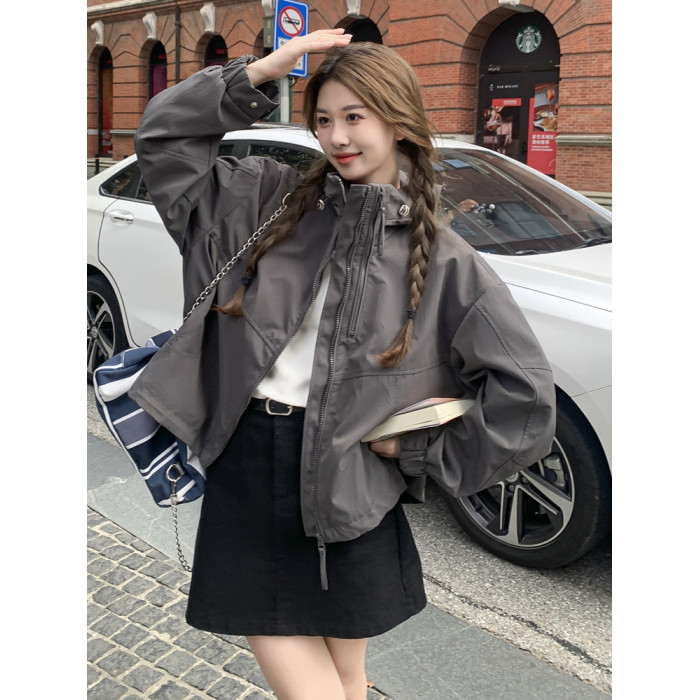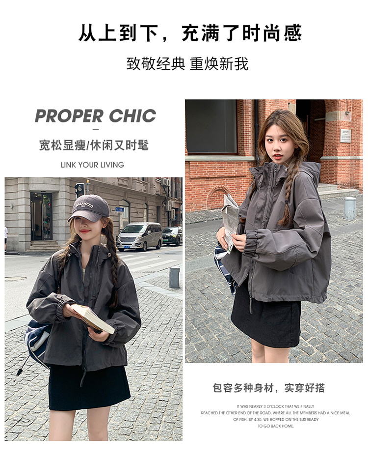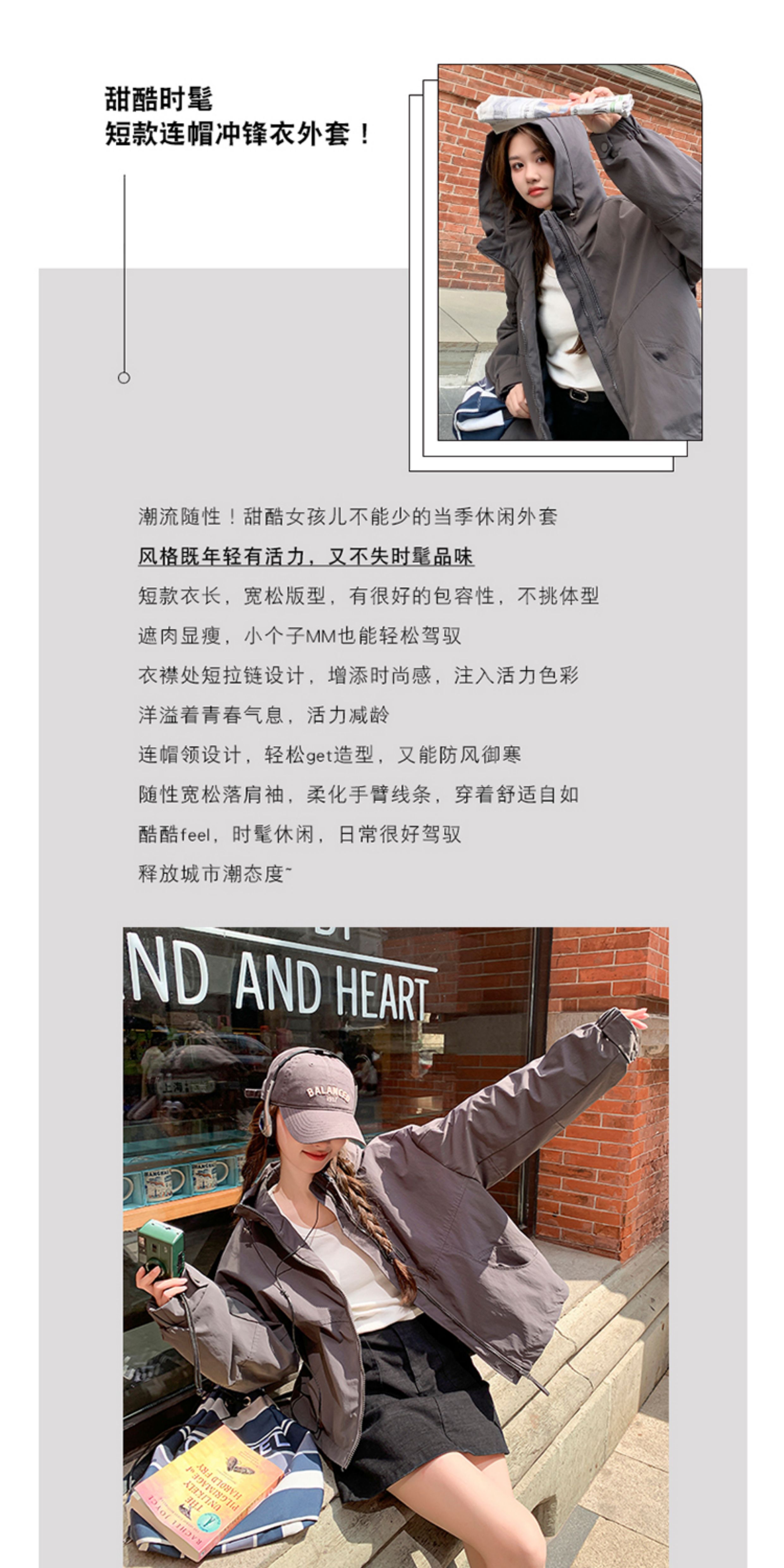 美拉德灰色沖鋒衣加棉外套女春秋2025新款小個子夾棉工裝爆款棉服