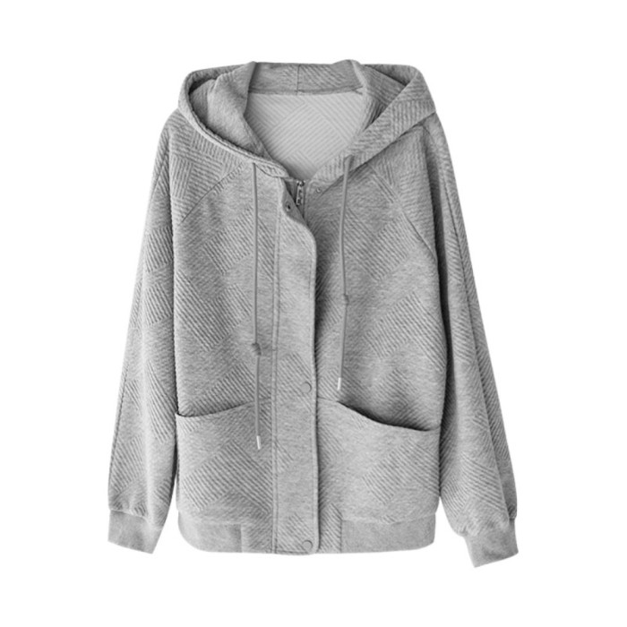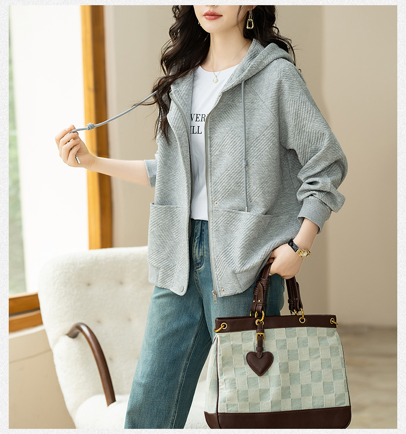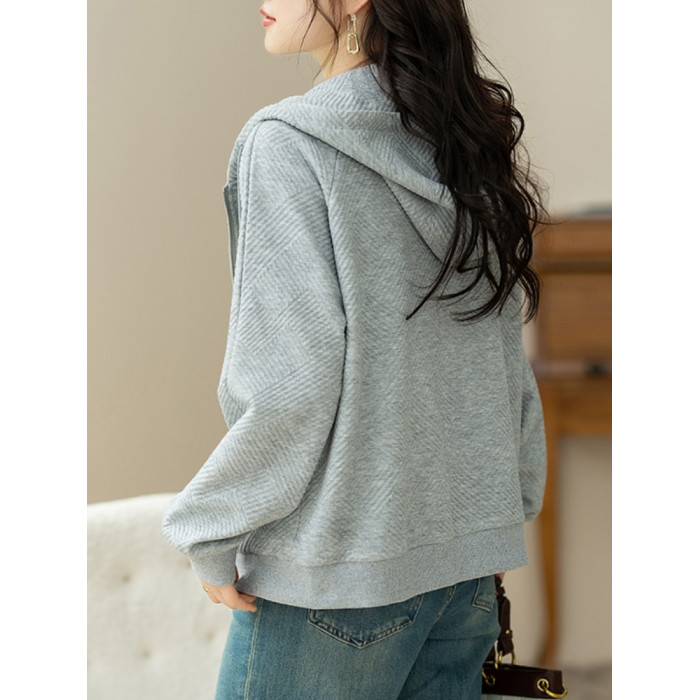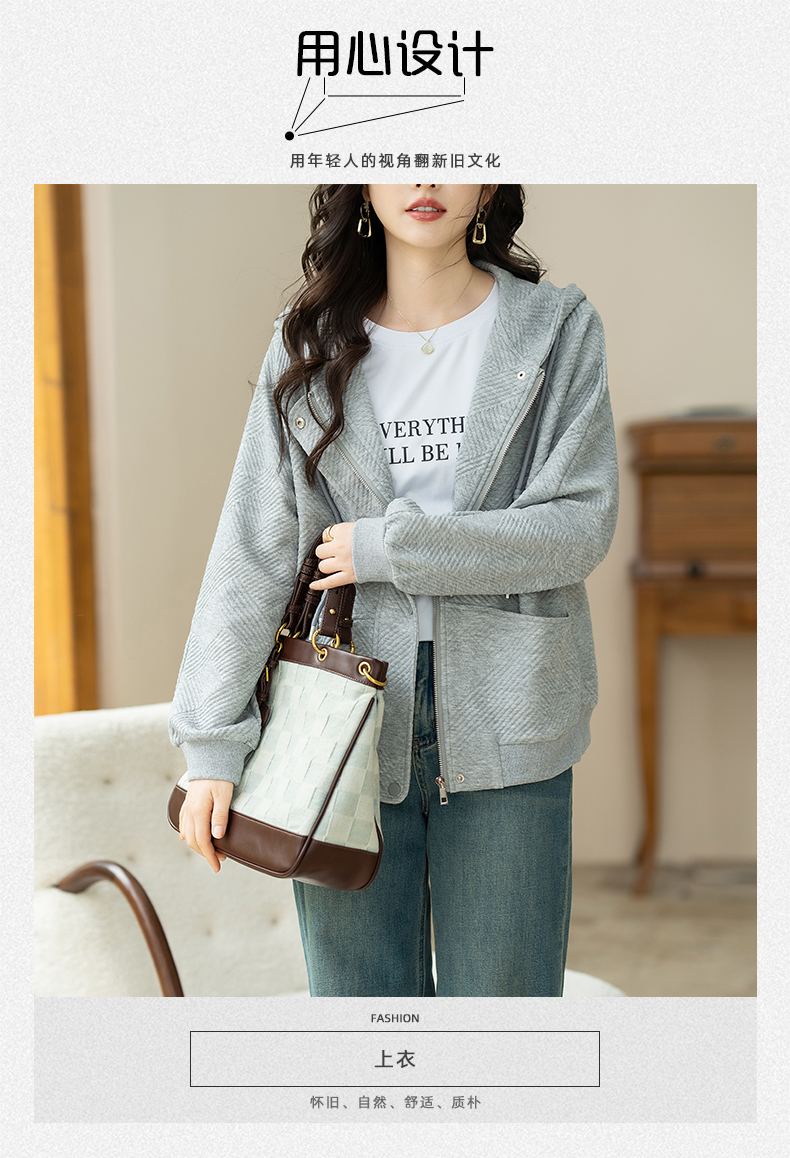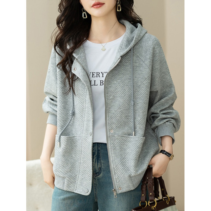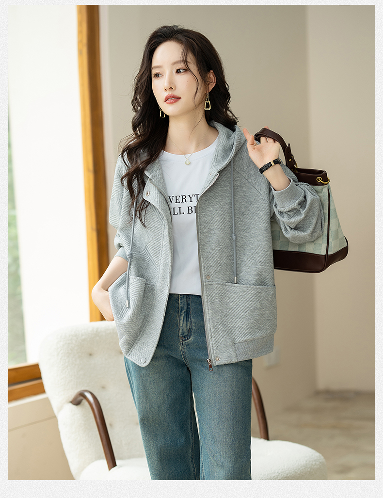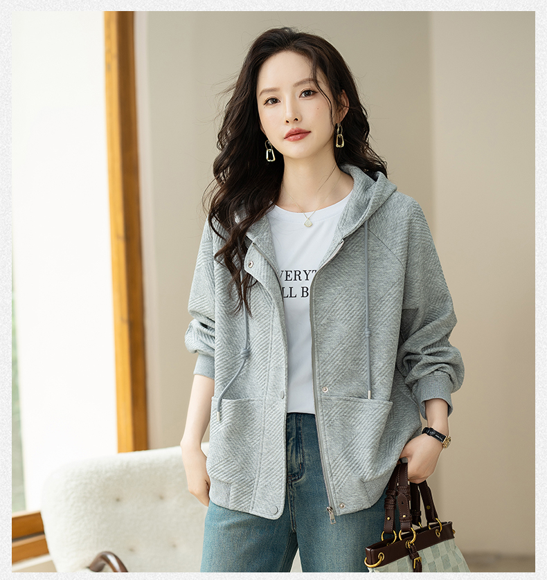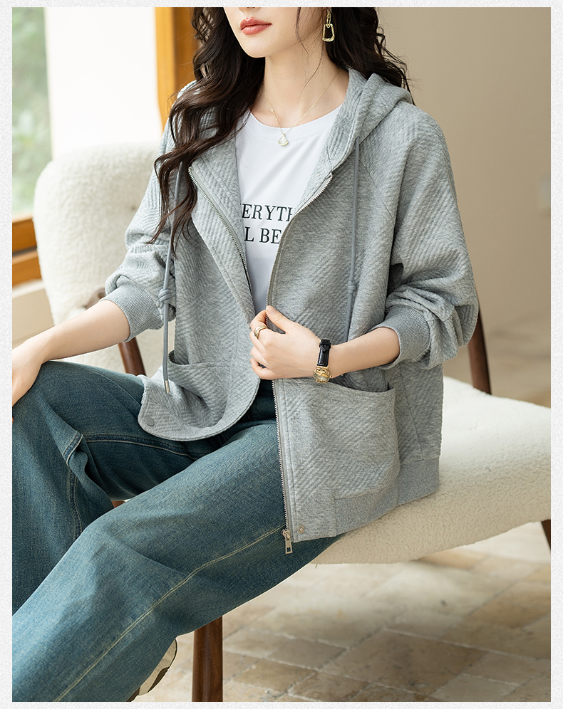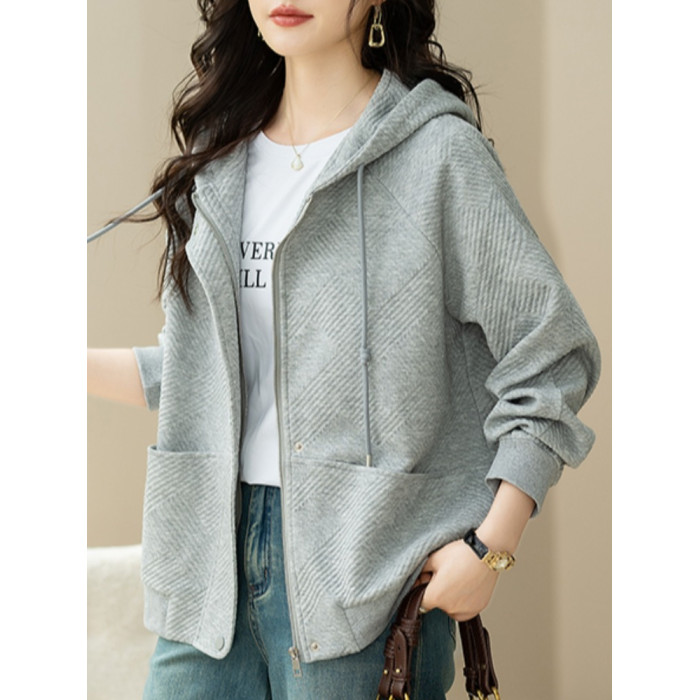 九月墨陌肌理感灰色連帽外套女2025秋季新款爆款休閒簡約百搭上衣