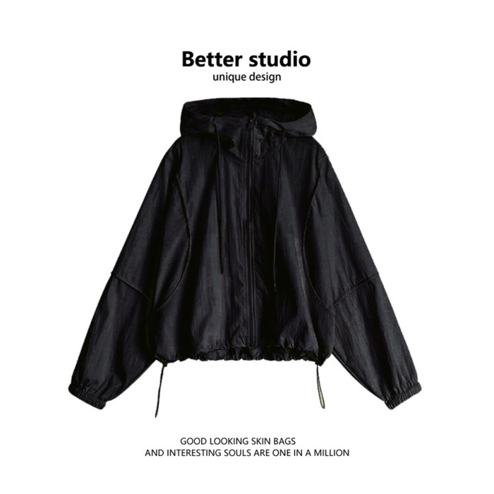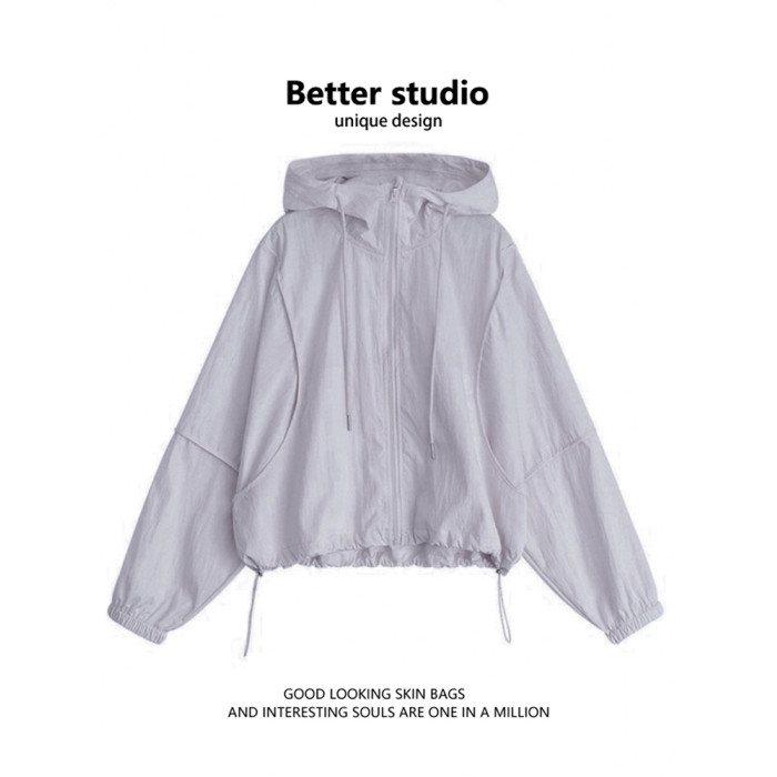 短款連帽防曬衣女夏季小個子運動沖鋒衣防紫外線外套休閒防曬服潮