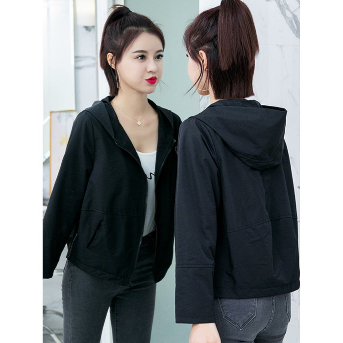 休閒外套女春秋短款小個子連帽2025新款百搭顯瘦女士長袖夾克上衣