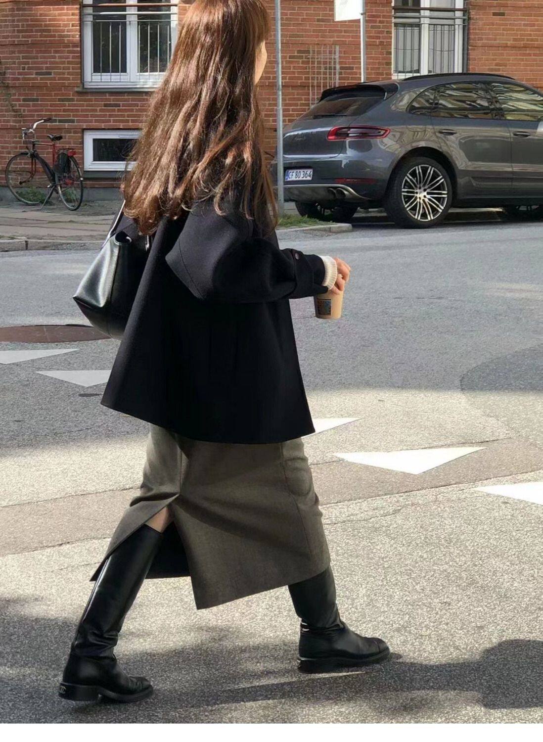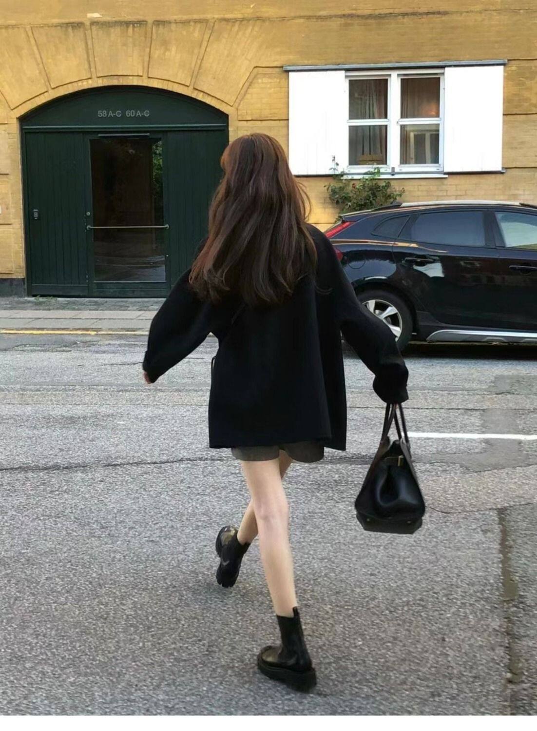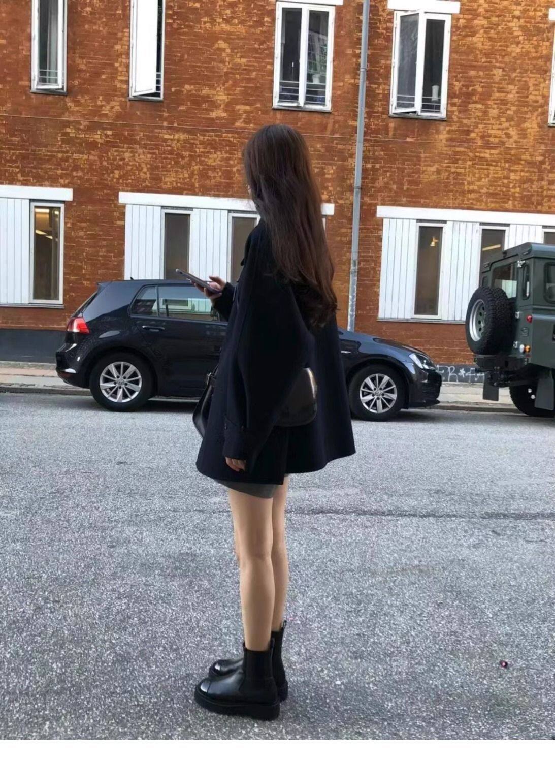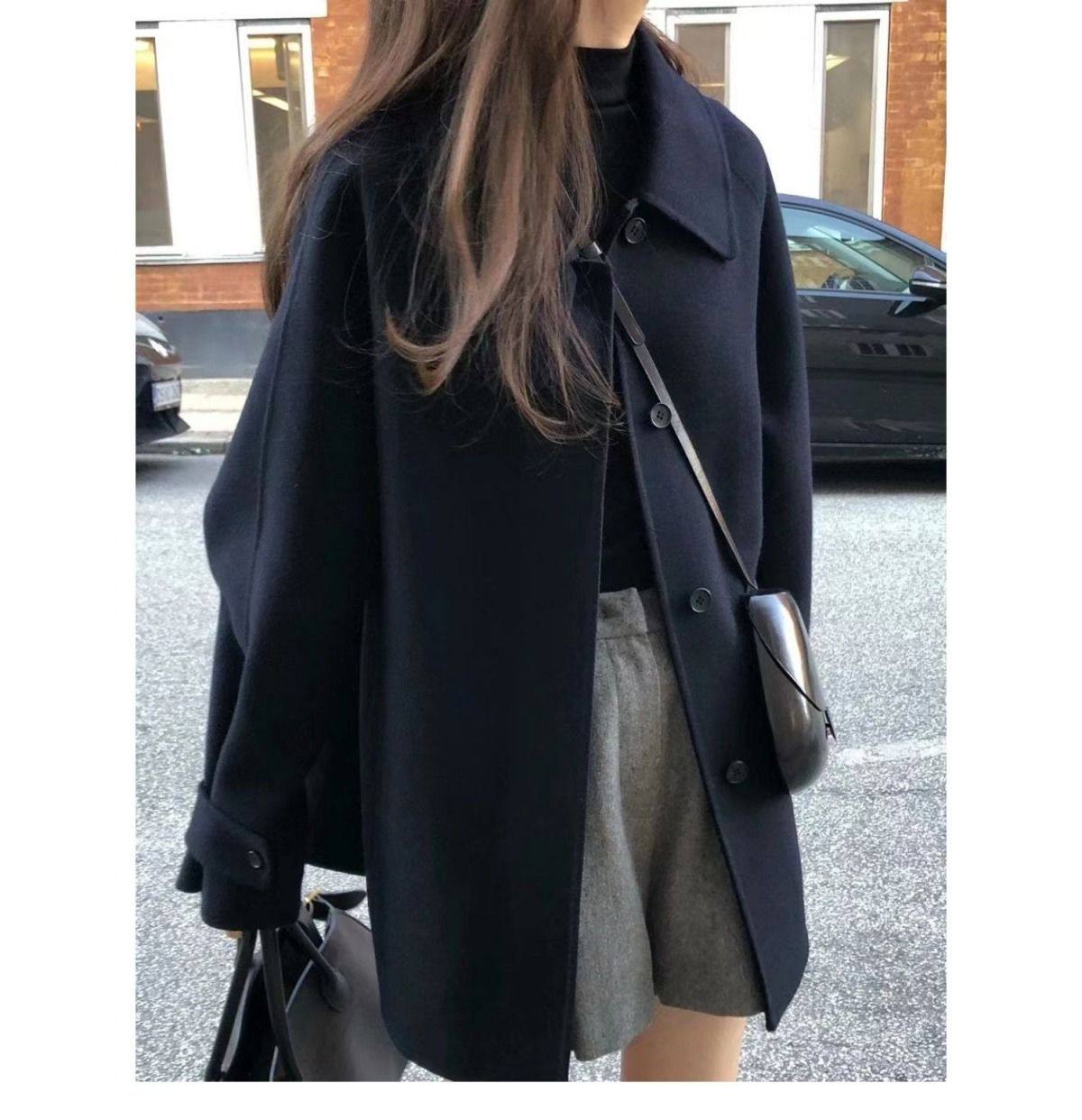 黑色短款呢子大衣女毛呢外套2023秋冬季新款加厚上衣女流行小個子