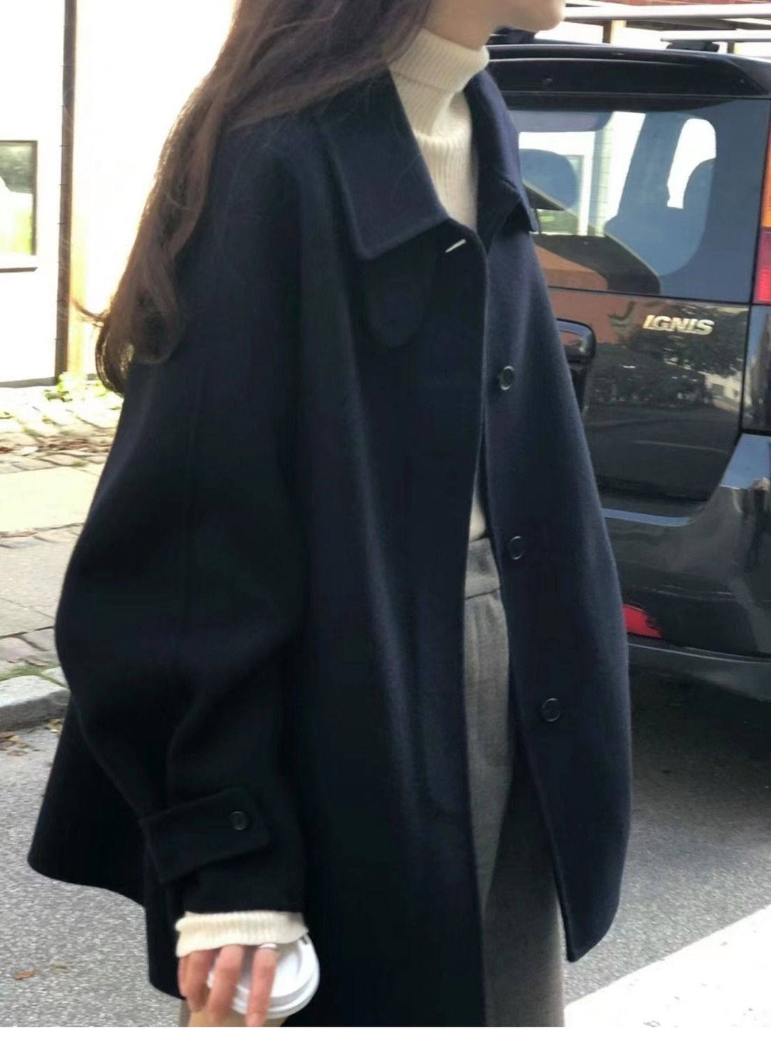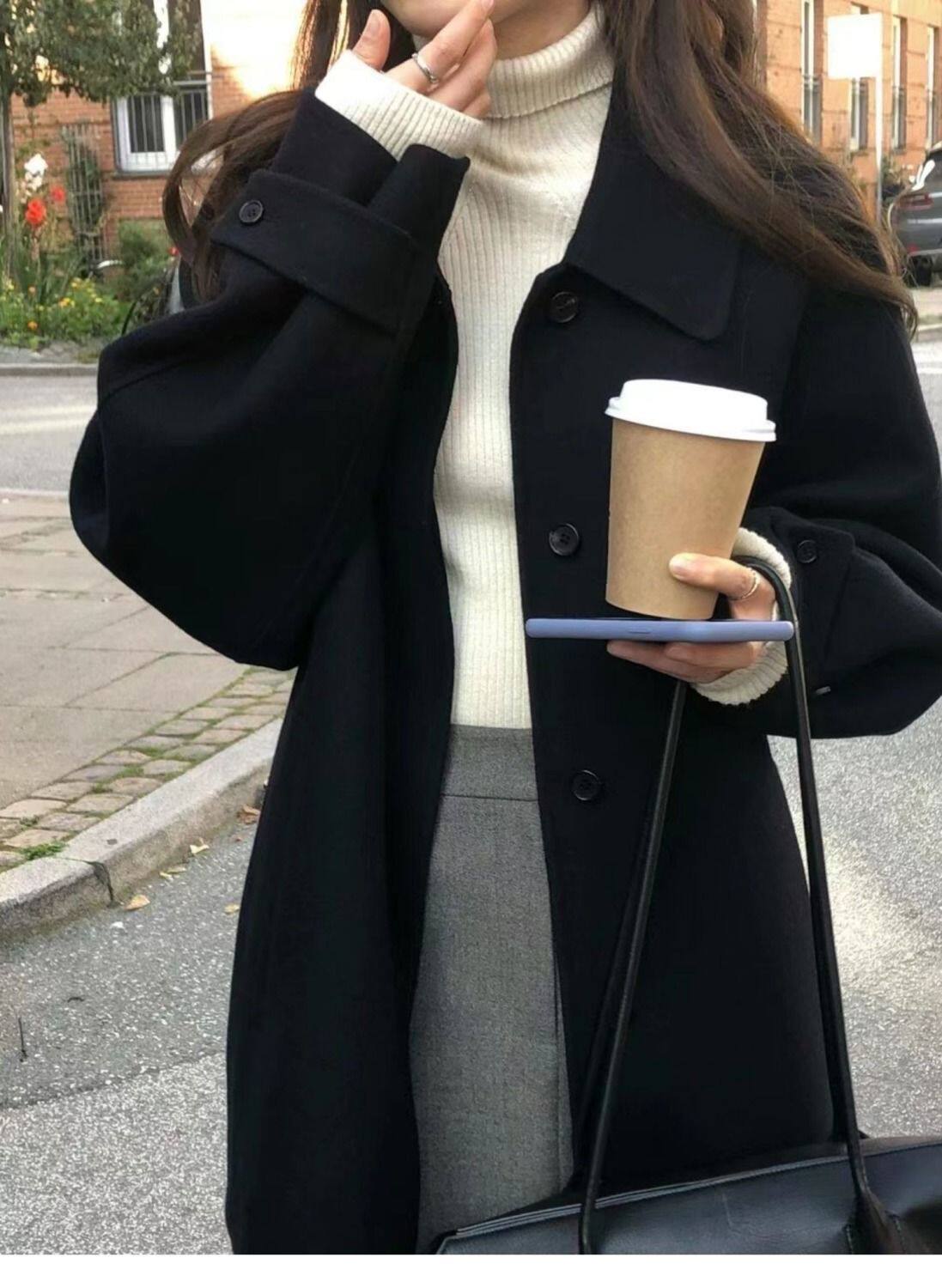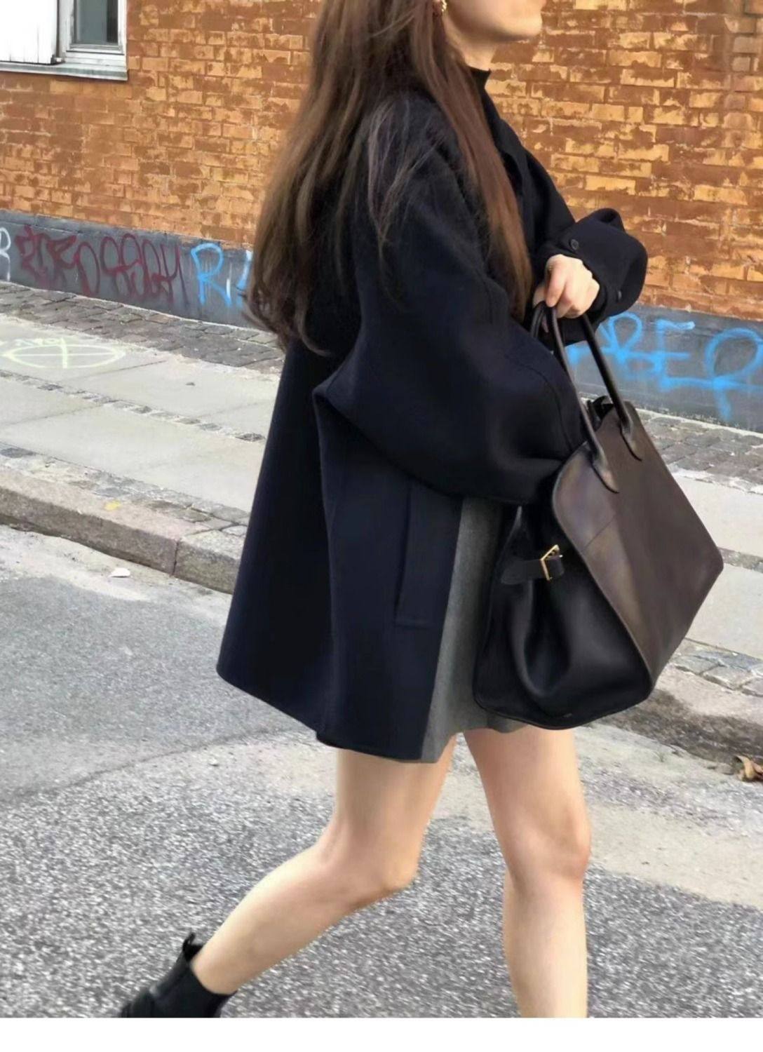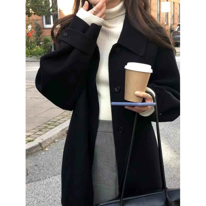 黑色短款呢子大衣女毛呢外套2023秋冬季新款加厚上衣女流行小個子