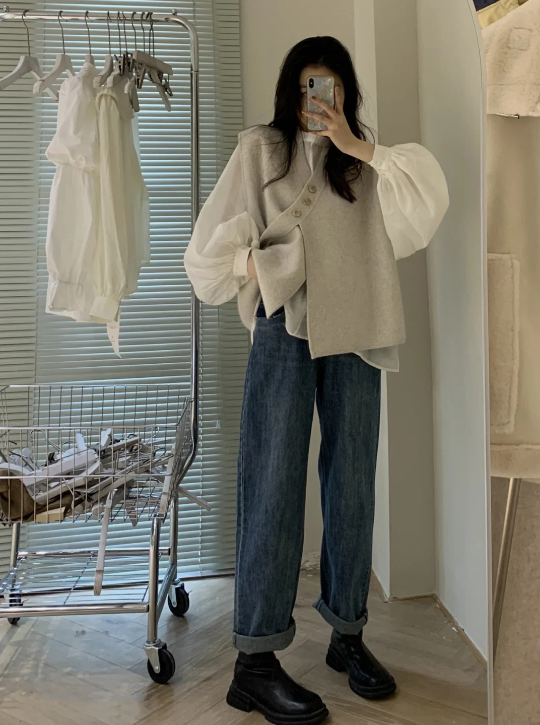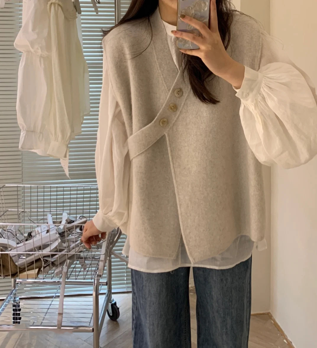 馬甲女日系慵懶風不規則設計感小衆曡穿新款2025早秋針織毛衣背心
