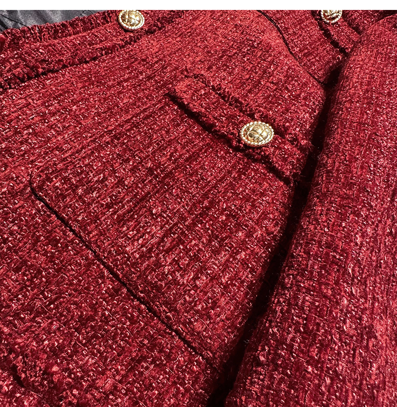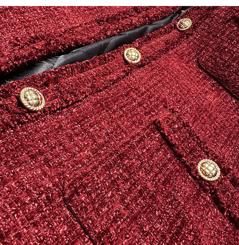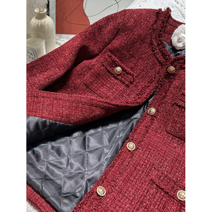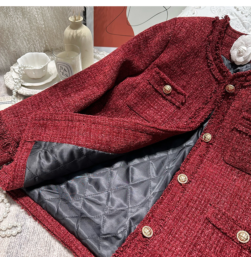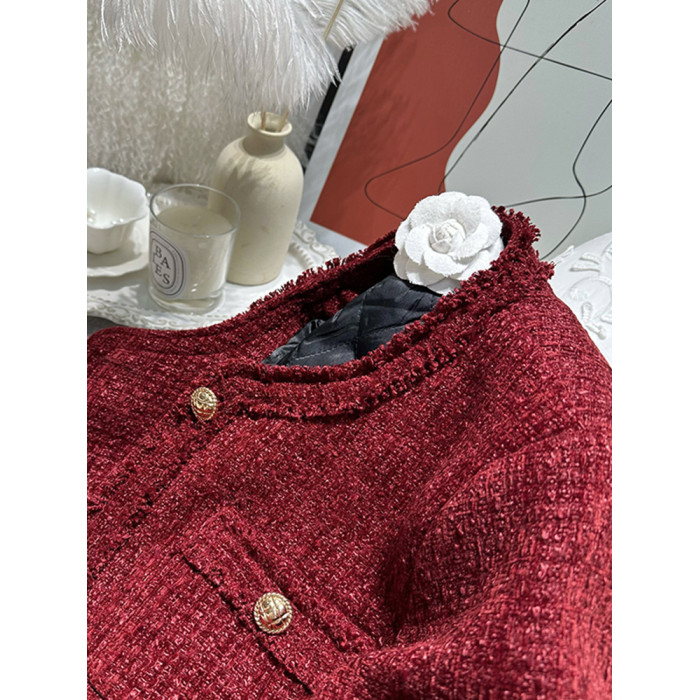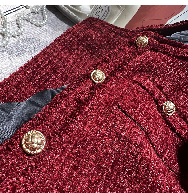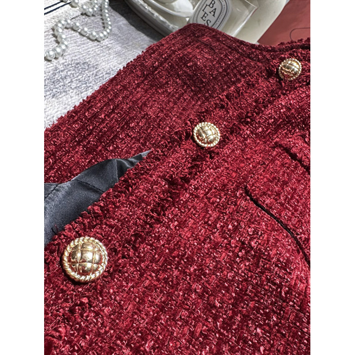 FFmiss◆小香風紅色編織毛毛寬松短外套女羊毛呢流蘇洋氣西裝開衫