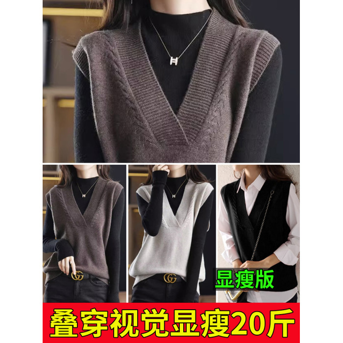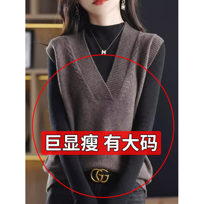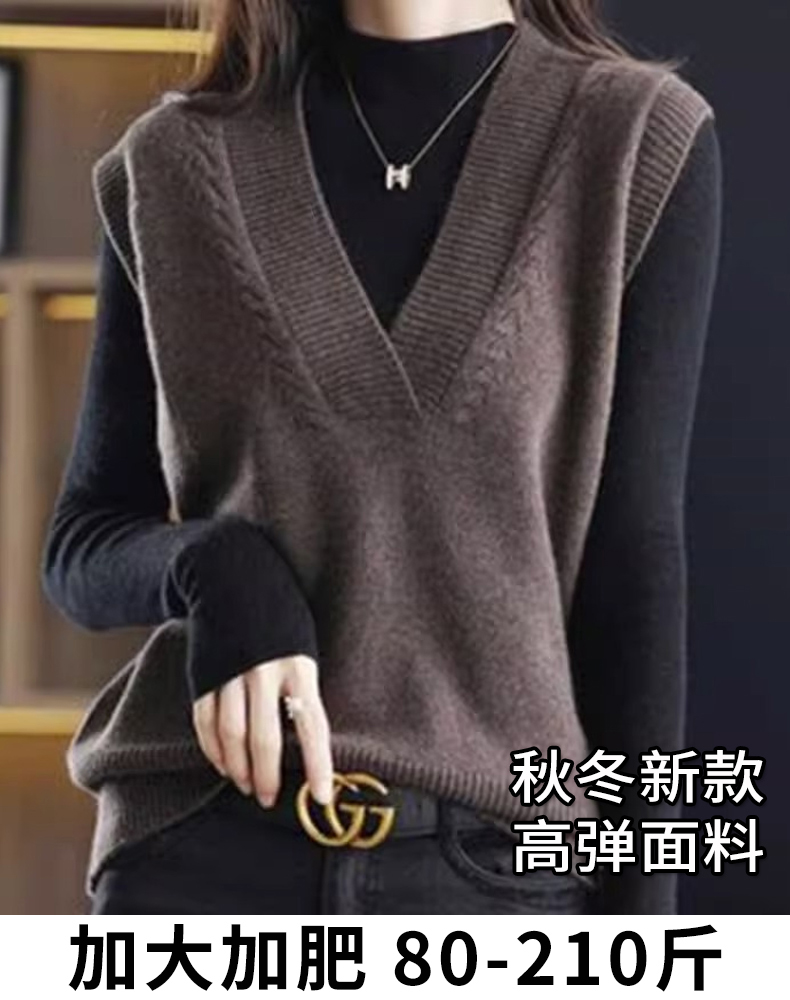 大碼胖mm毛衣針織馬甲女新款2025新款寬松V領馬夾坎肩背心上衣秋