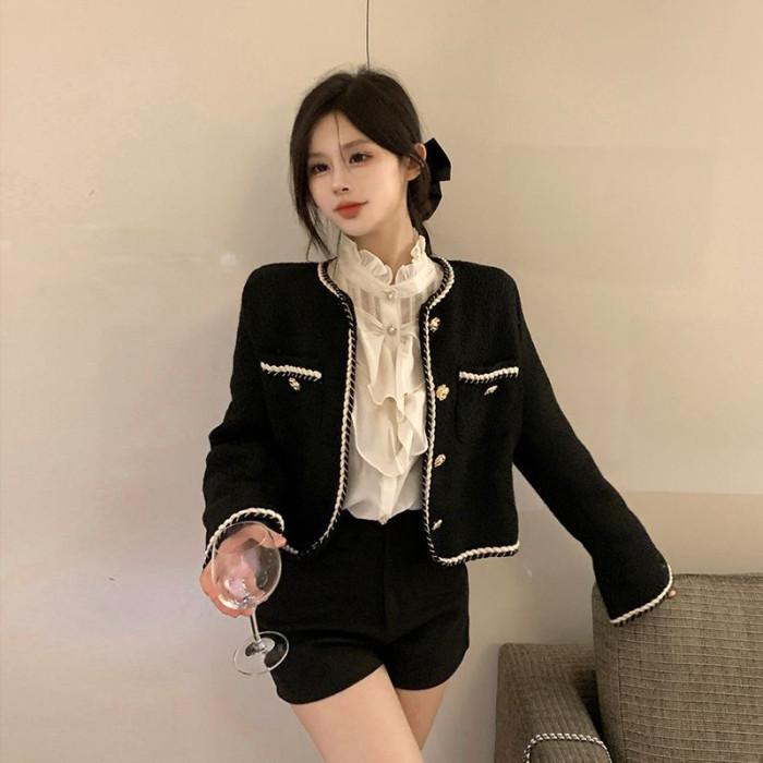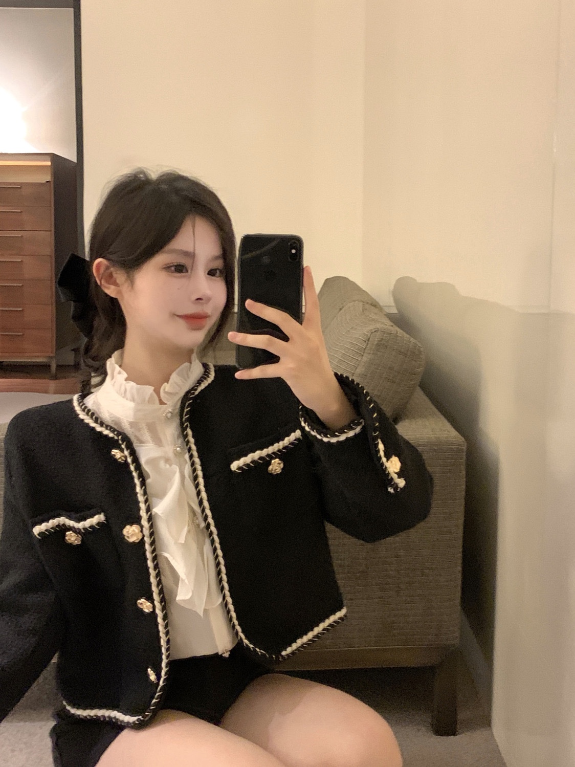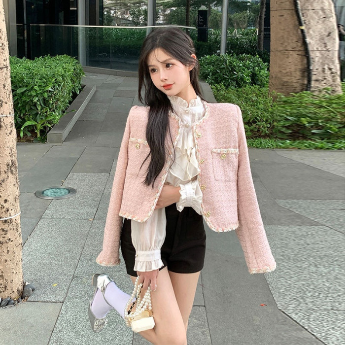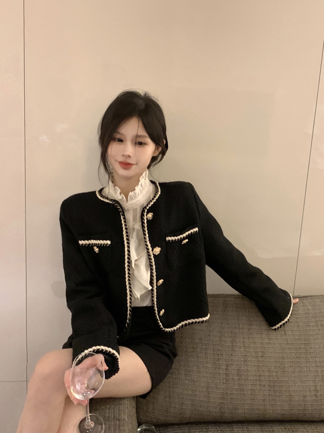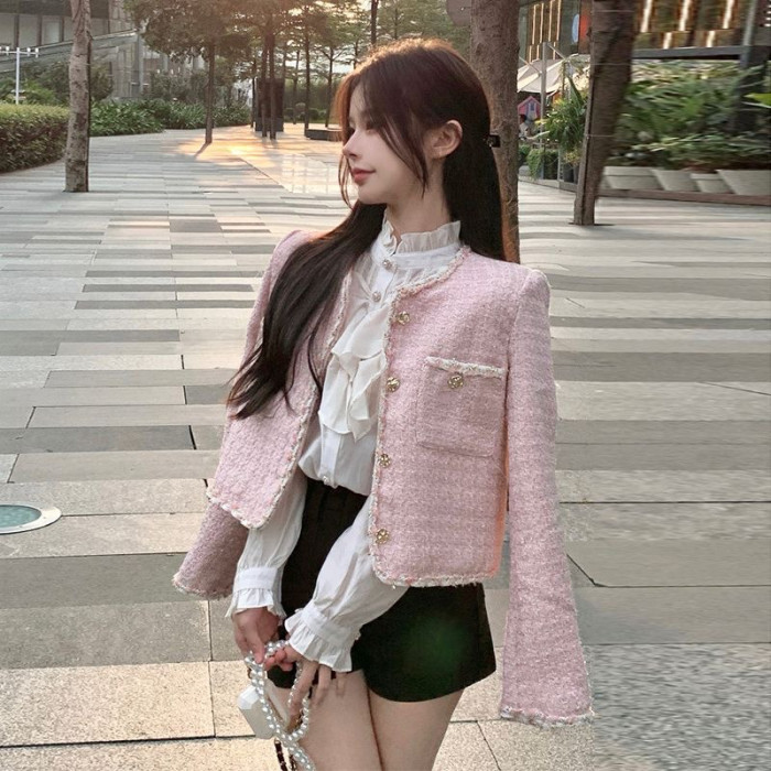 法式小香風外套女秋冬款百搭復古高級感名媛氣質粗花呢上衣女裝