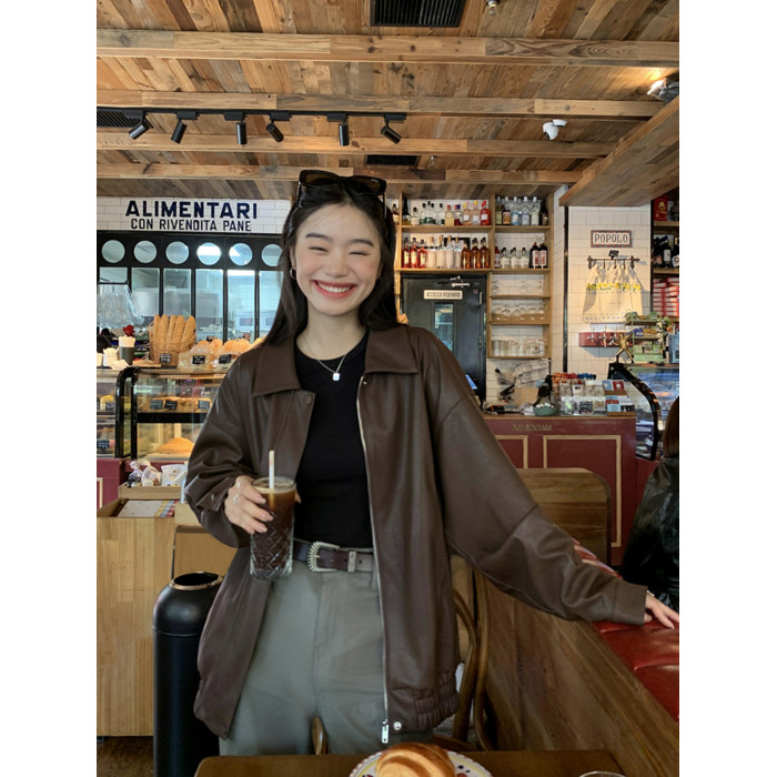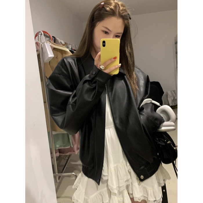 復古黑色pu皮衣外套女2025春秋新款高級感寬松小個子夾克上衣短款