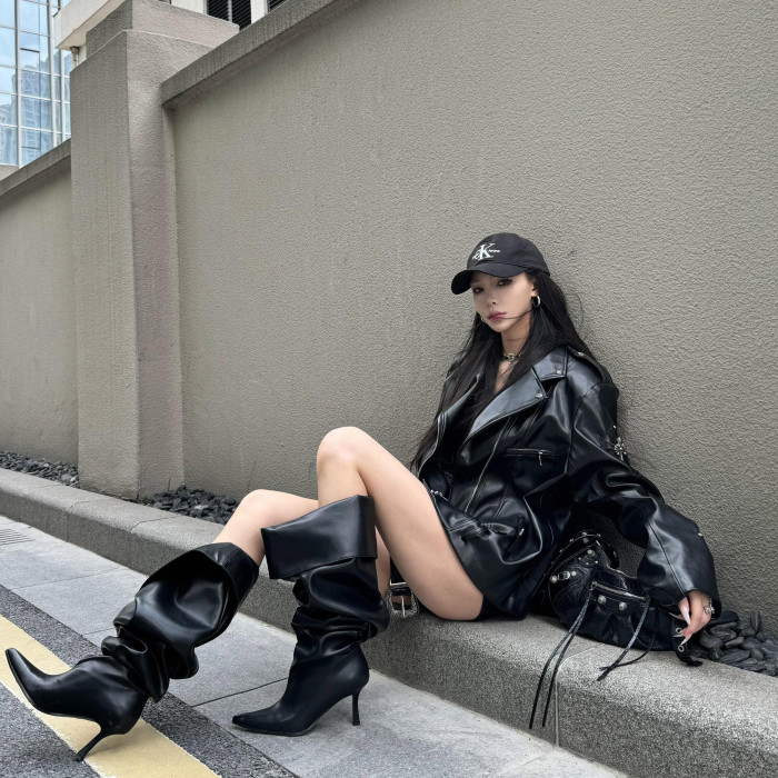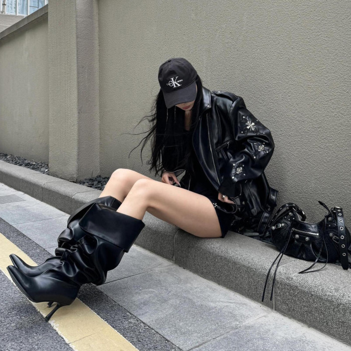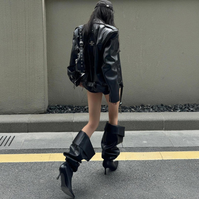個性街頭搖滾黑色皮衣女辣妹設計感寬松重工機車夾克外套ins潮