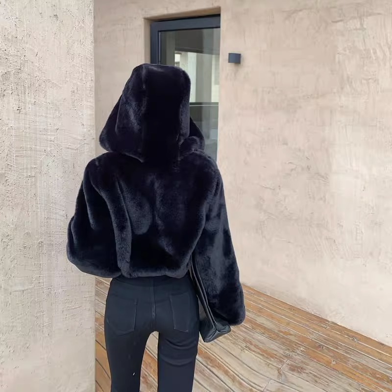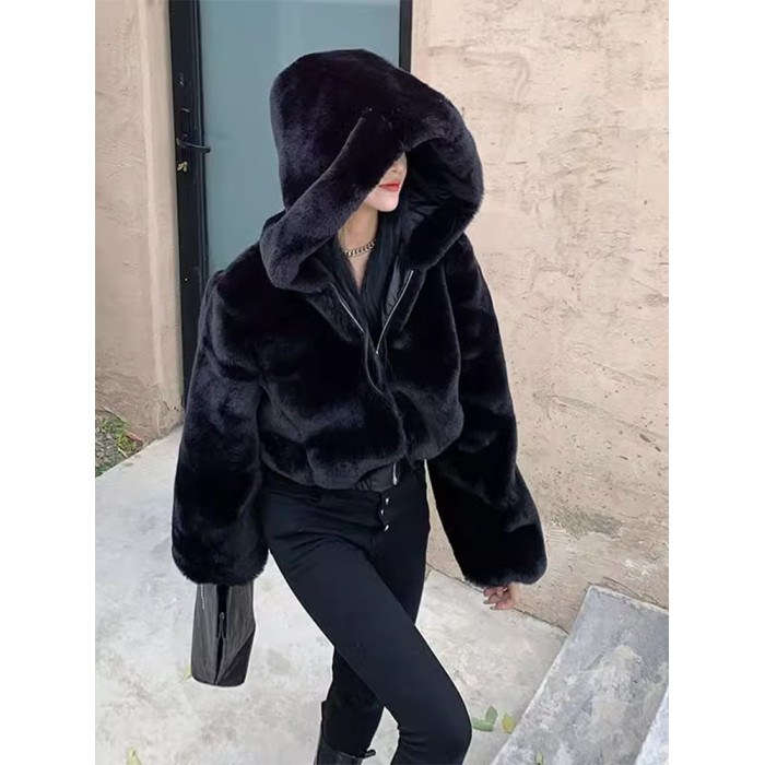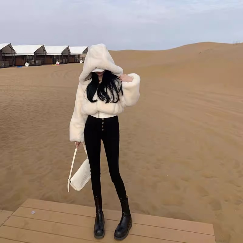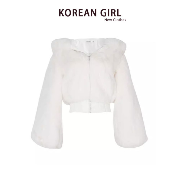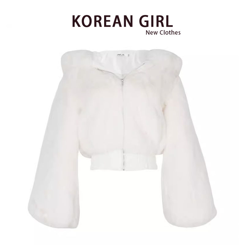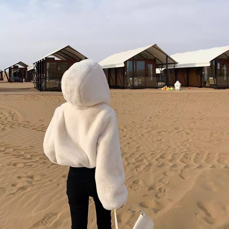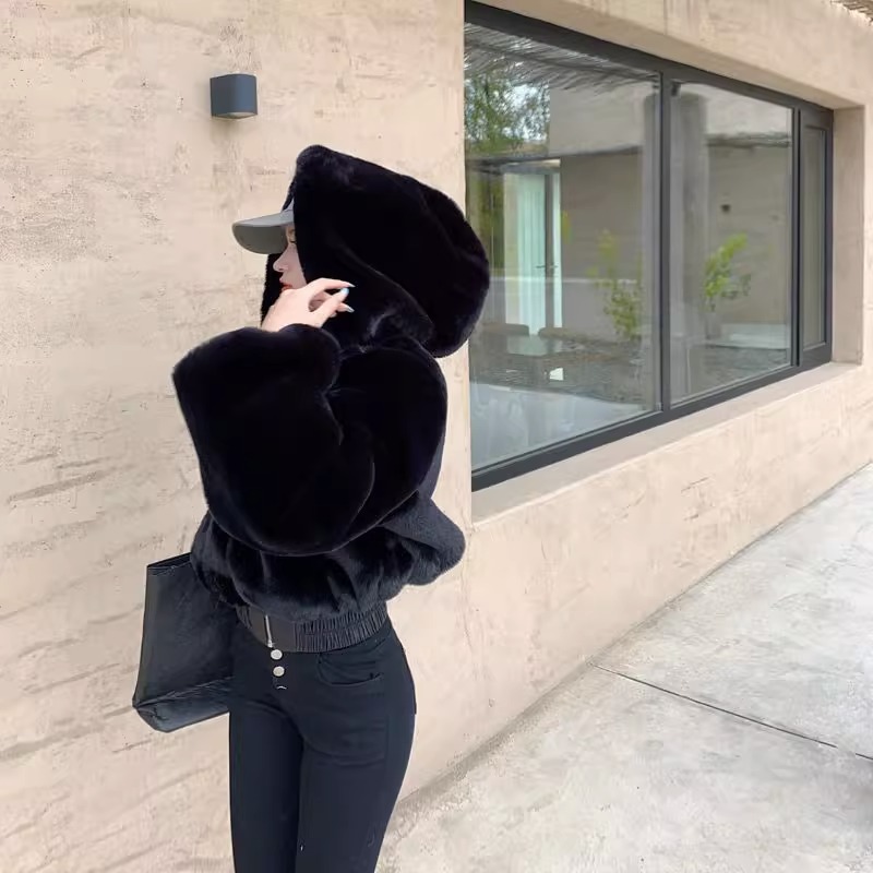 仿兔毛絨短款拉鍊外套女秋冬新款設計感小衆百搭加厚連帽衛衣夾克